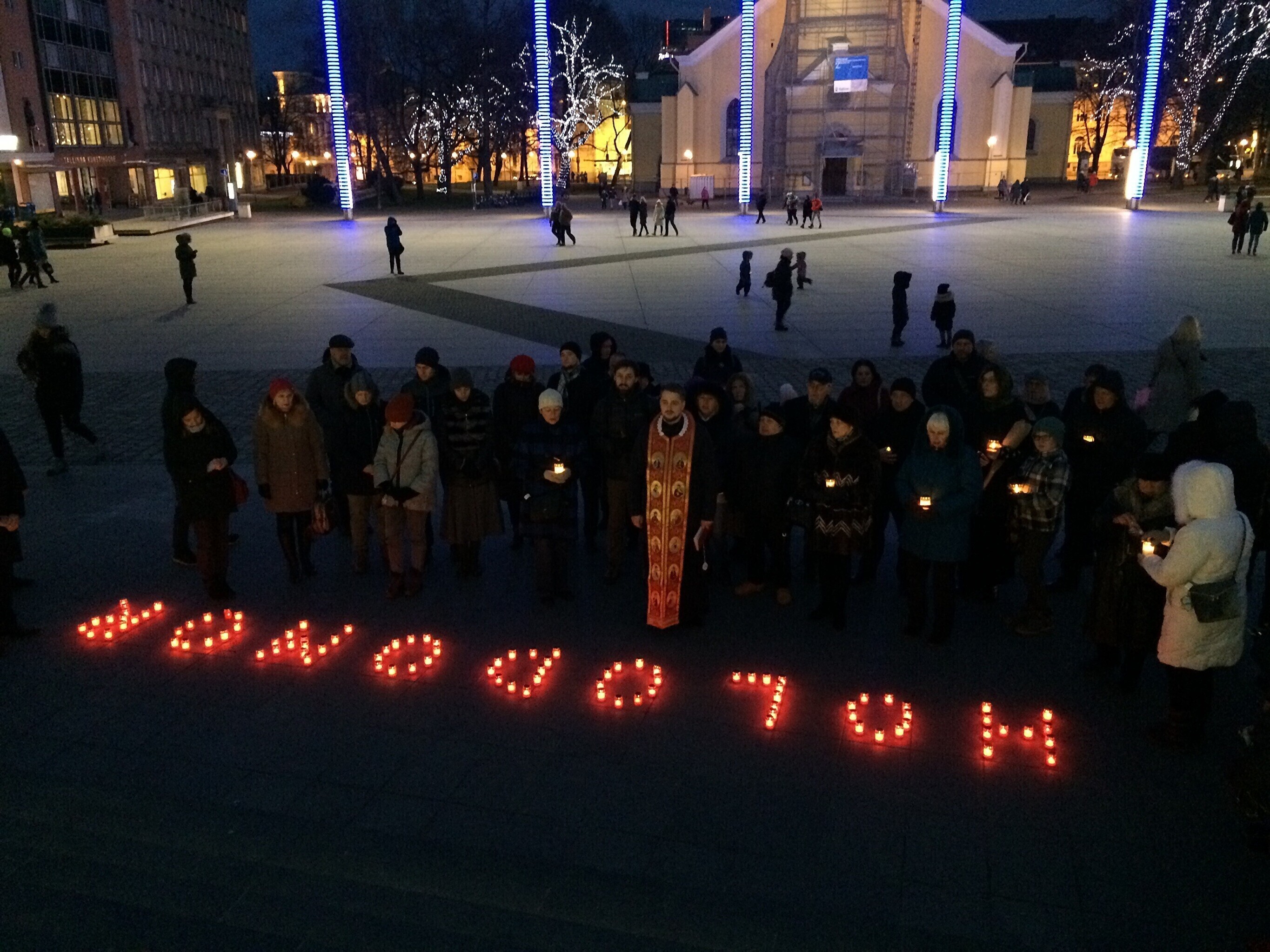 В 16:00 на площади Вабадузе в Таллинне прошла минута молчания, молебен, и были зажжены поминальные свечи. В акции приняли участие посол Украины в Таллинне Марьяна Беца и председатель Конгресса украинцев Эстонии Вира Конык. На акцию собралось около 50 человек.