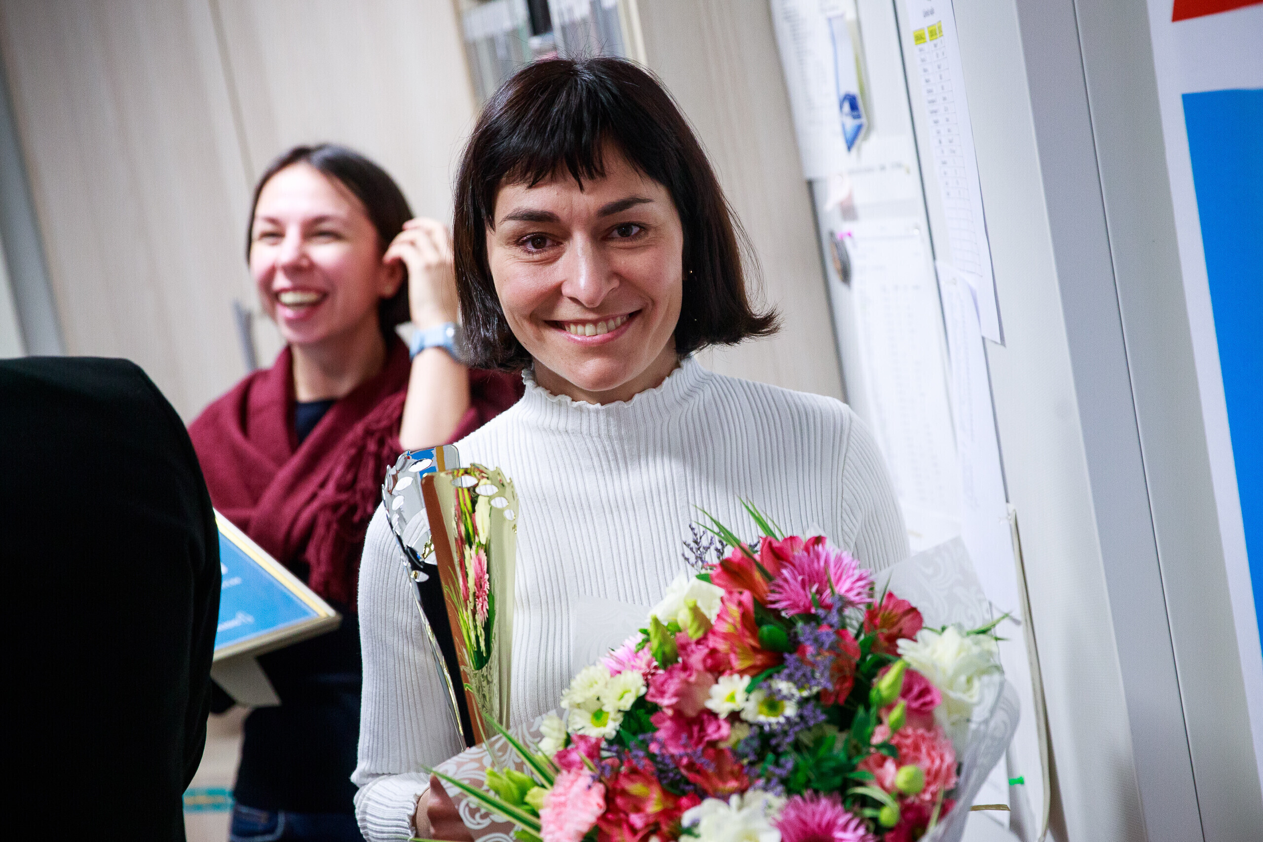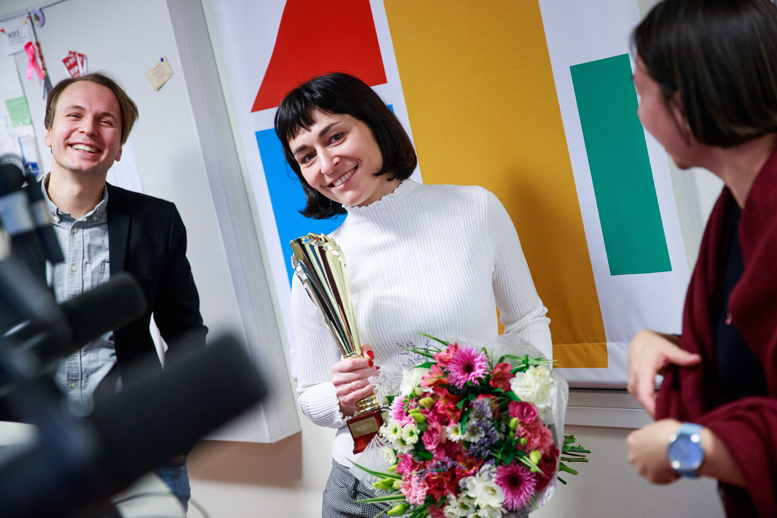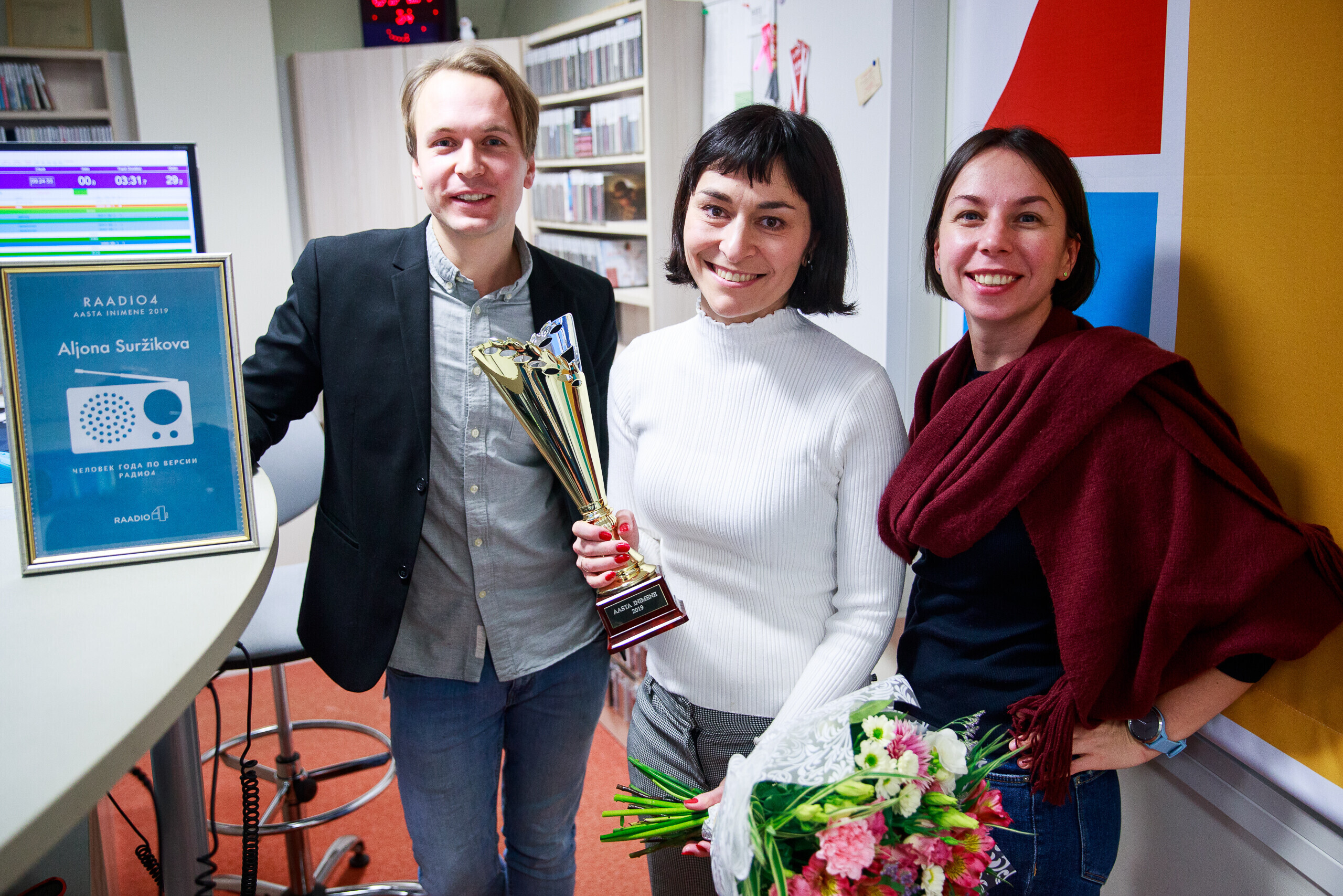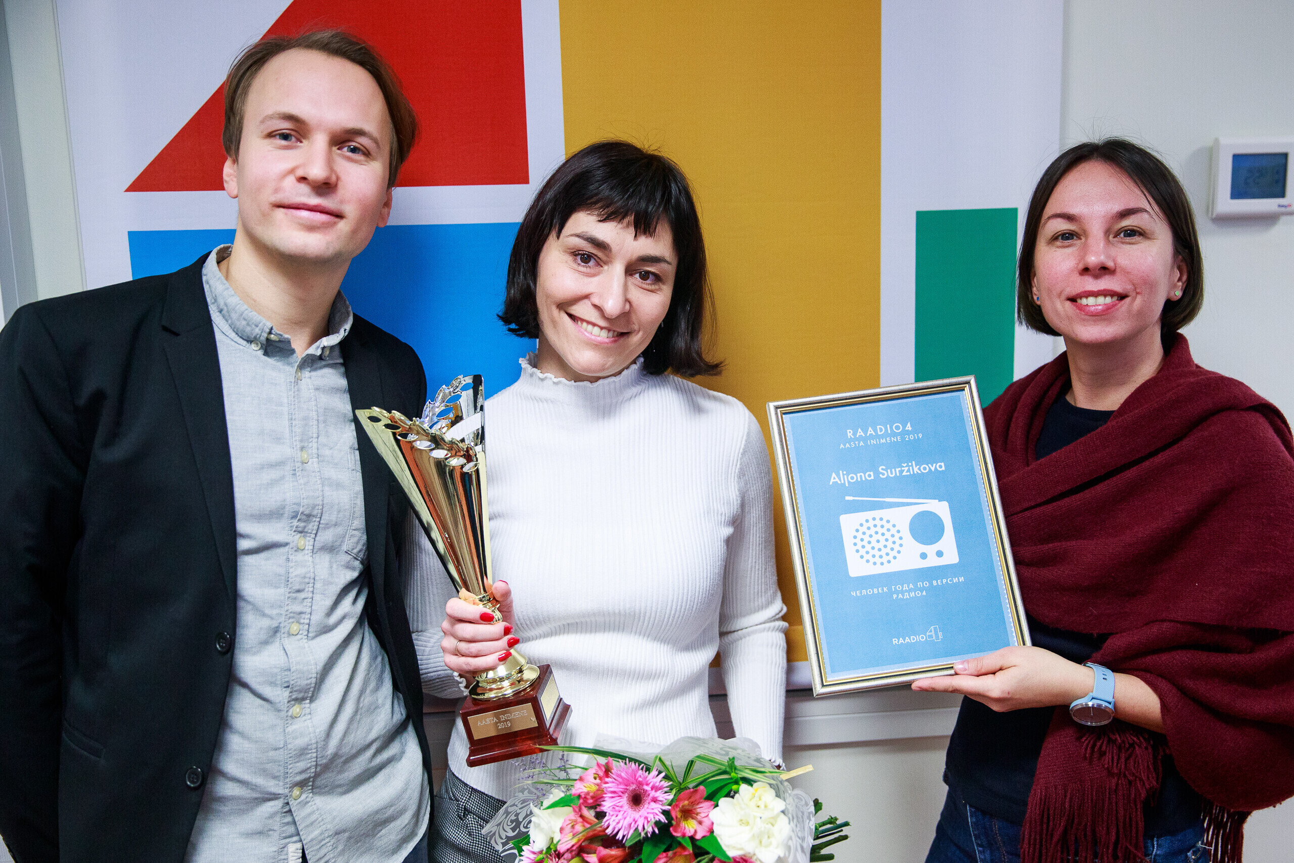 "Алена Суржикова - одна из самых ярких русскоязычных личностей в нашей стране. Это человек, который умеет рассказать историю людей не поверхностно, а открыв их с новых сторон", - отметил ведущий утреннего шоу "Великолепная четверка" Александр Жемжуров, объявляя Суржикову человеком года.