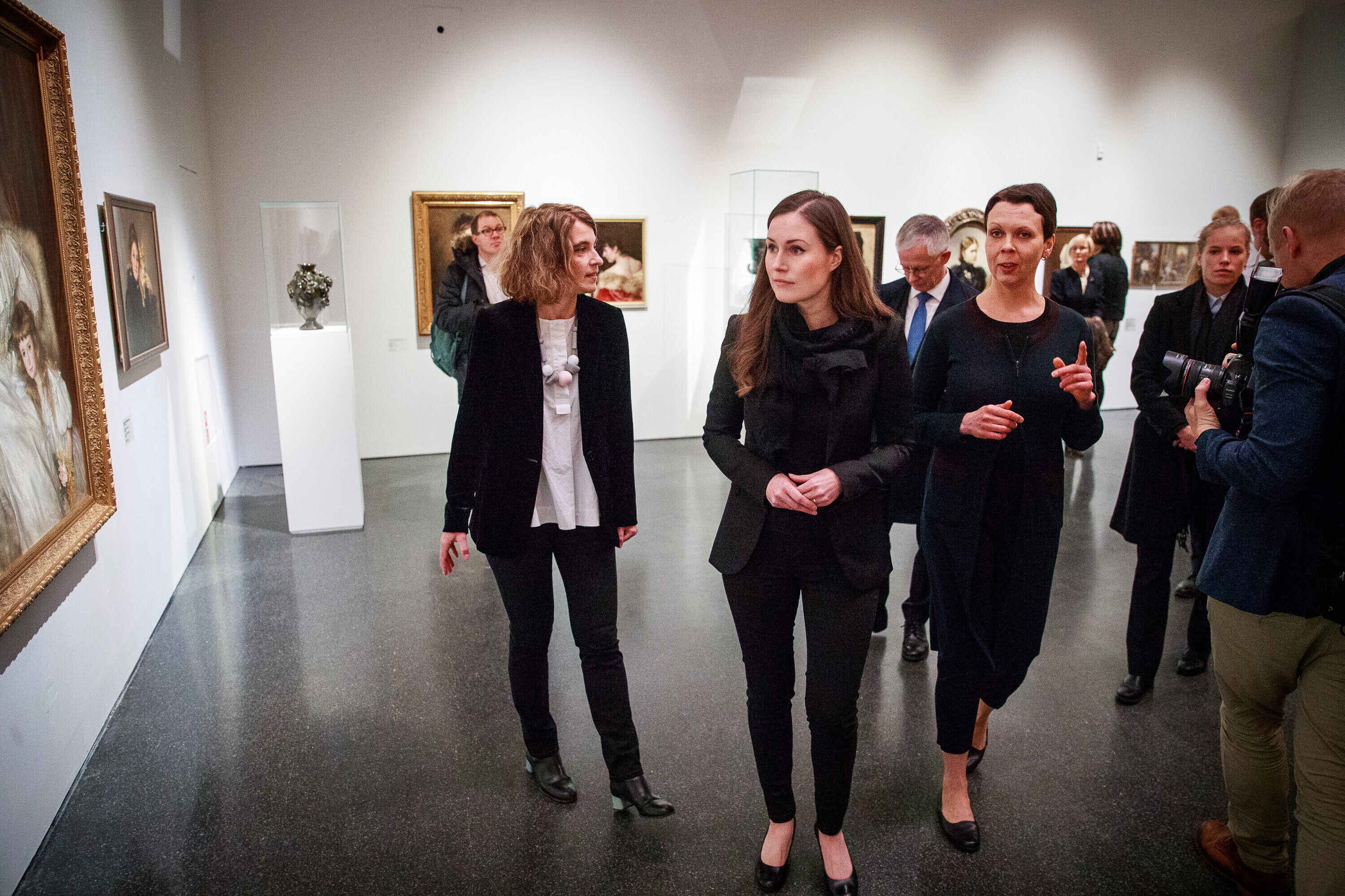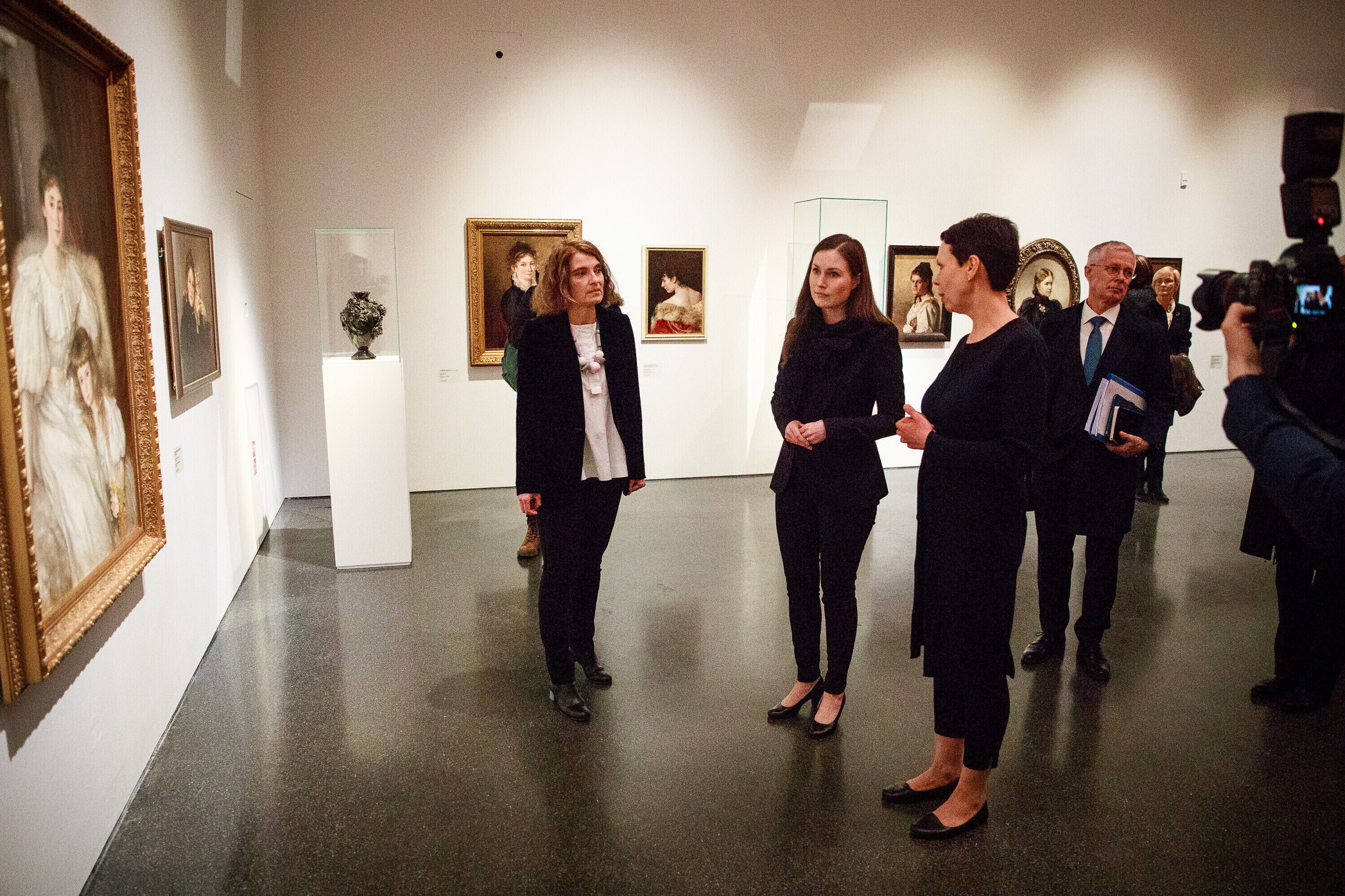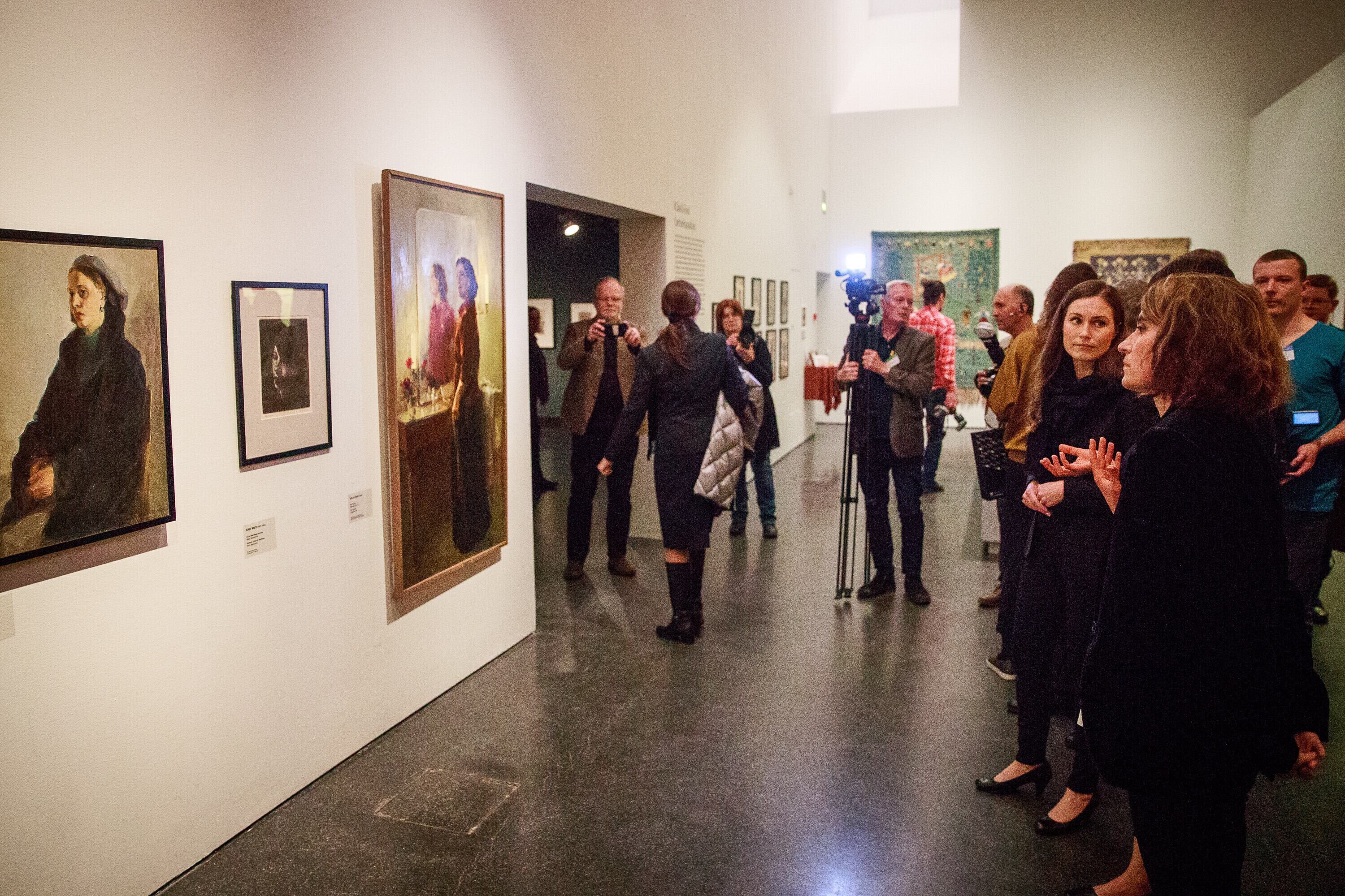Санна Марин осмотрела музей и ознакомилась с выставкой "Самосоздание. Эмансипация женщин в эстонском и финском искусстве".