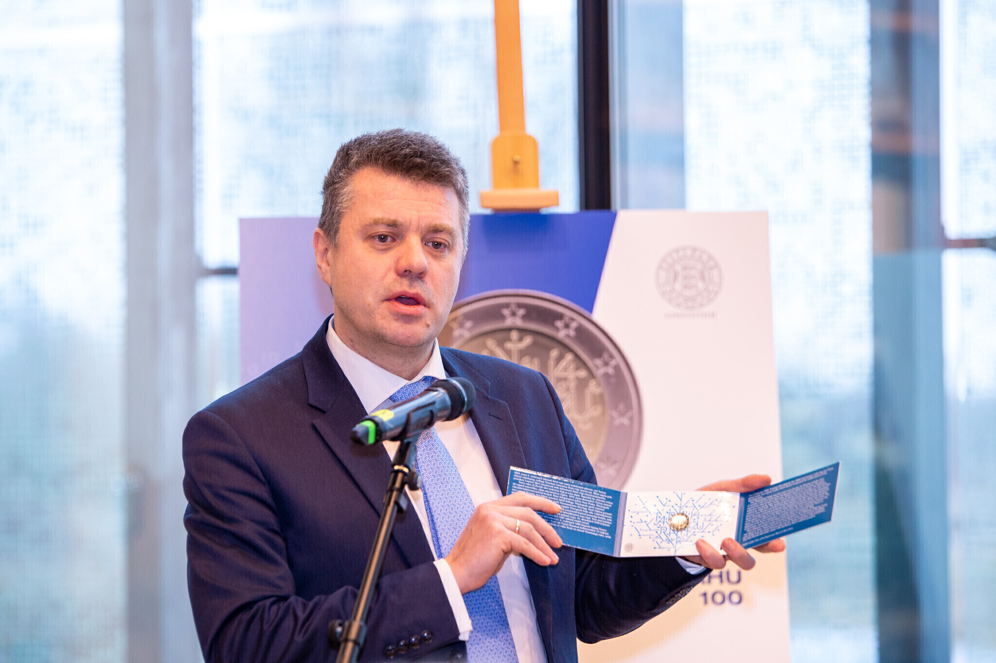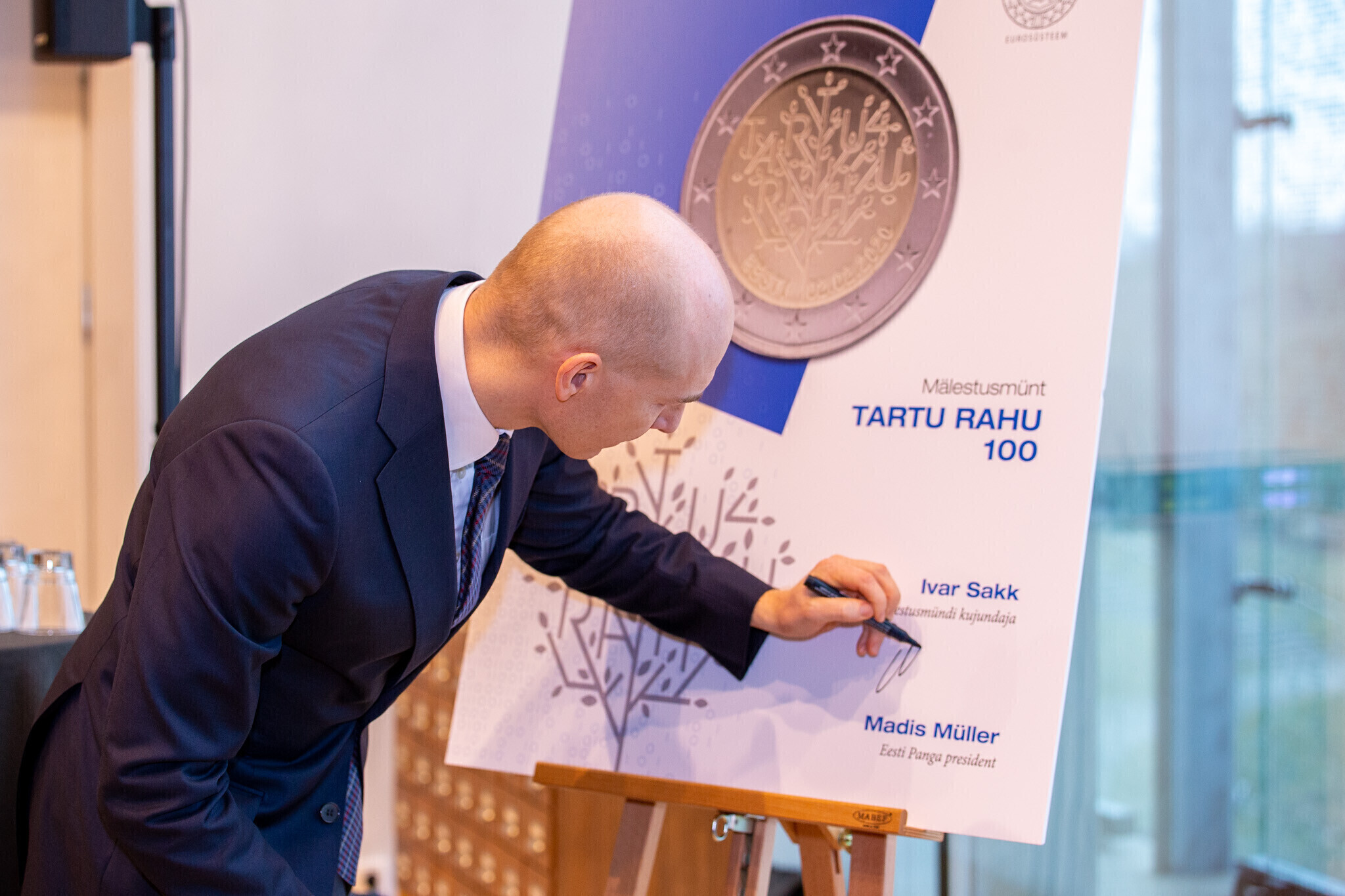 На представлении новой монеты присутствовали президент Банка Эстонии Мадис Мюллер, министр иностранных дел Урмас Рейнсалу и графический дизайнер Ивар Сакк, который является автором оформления монеты.