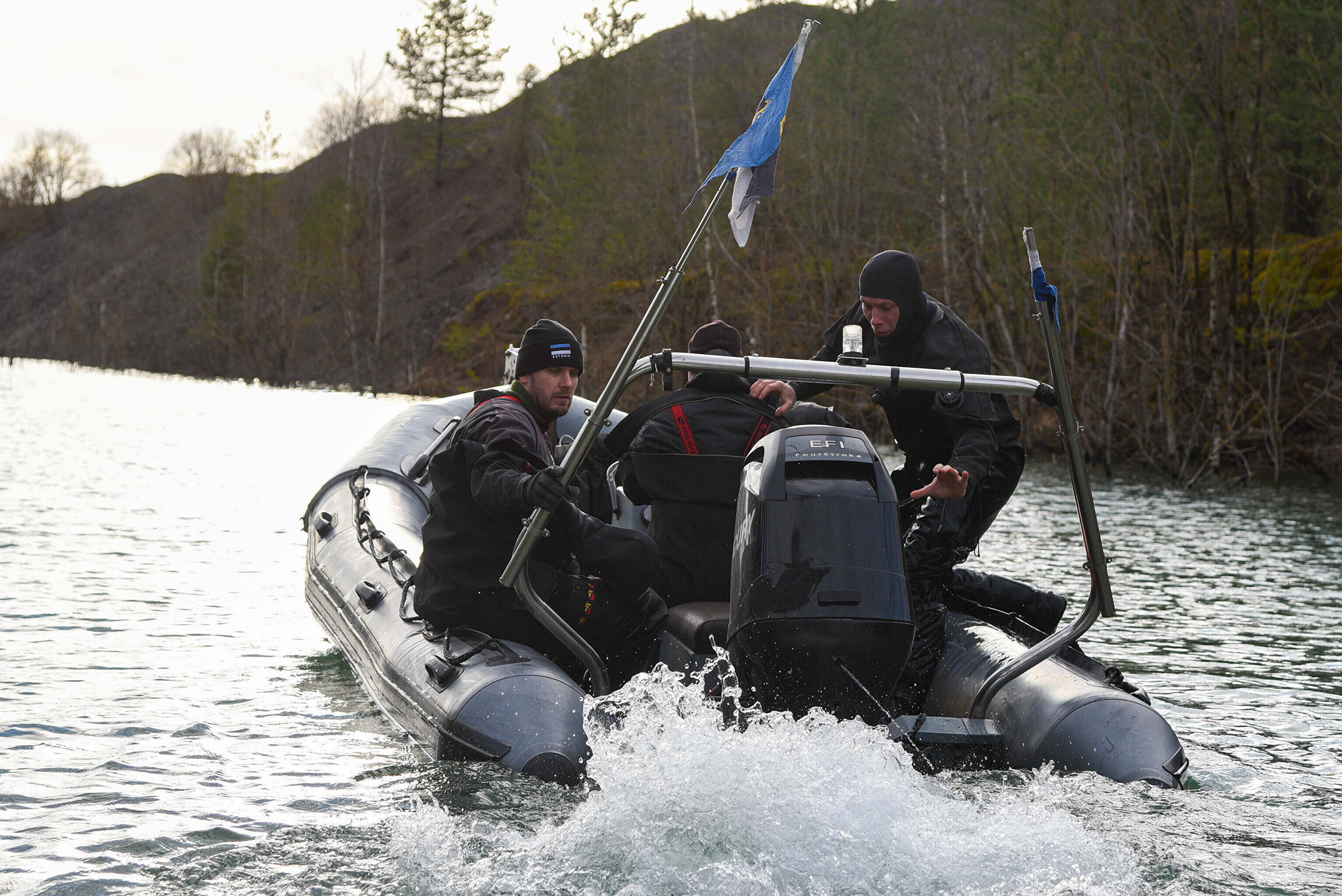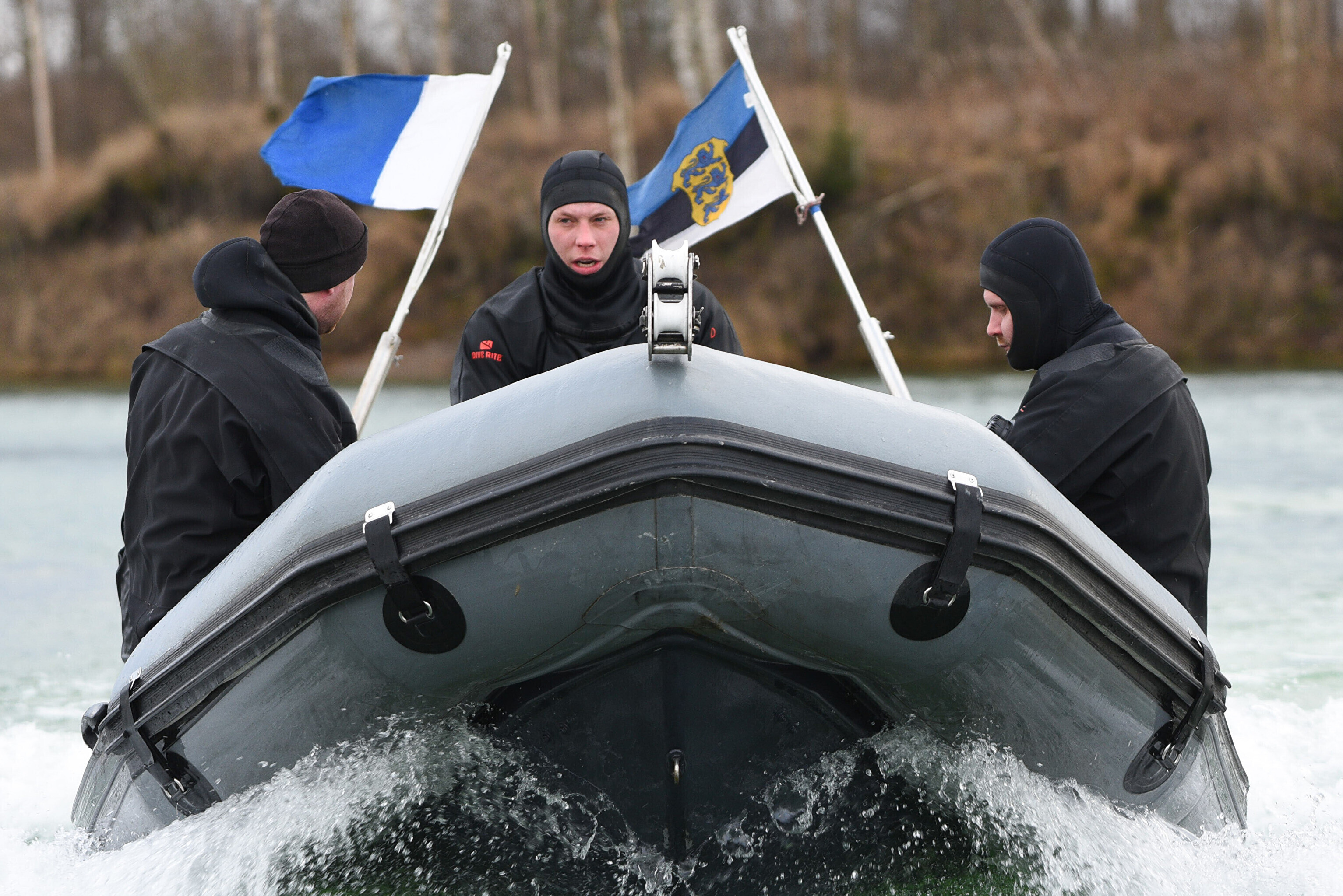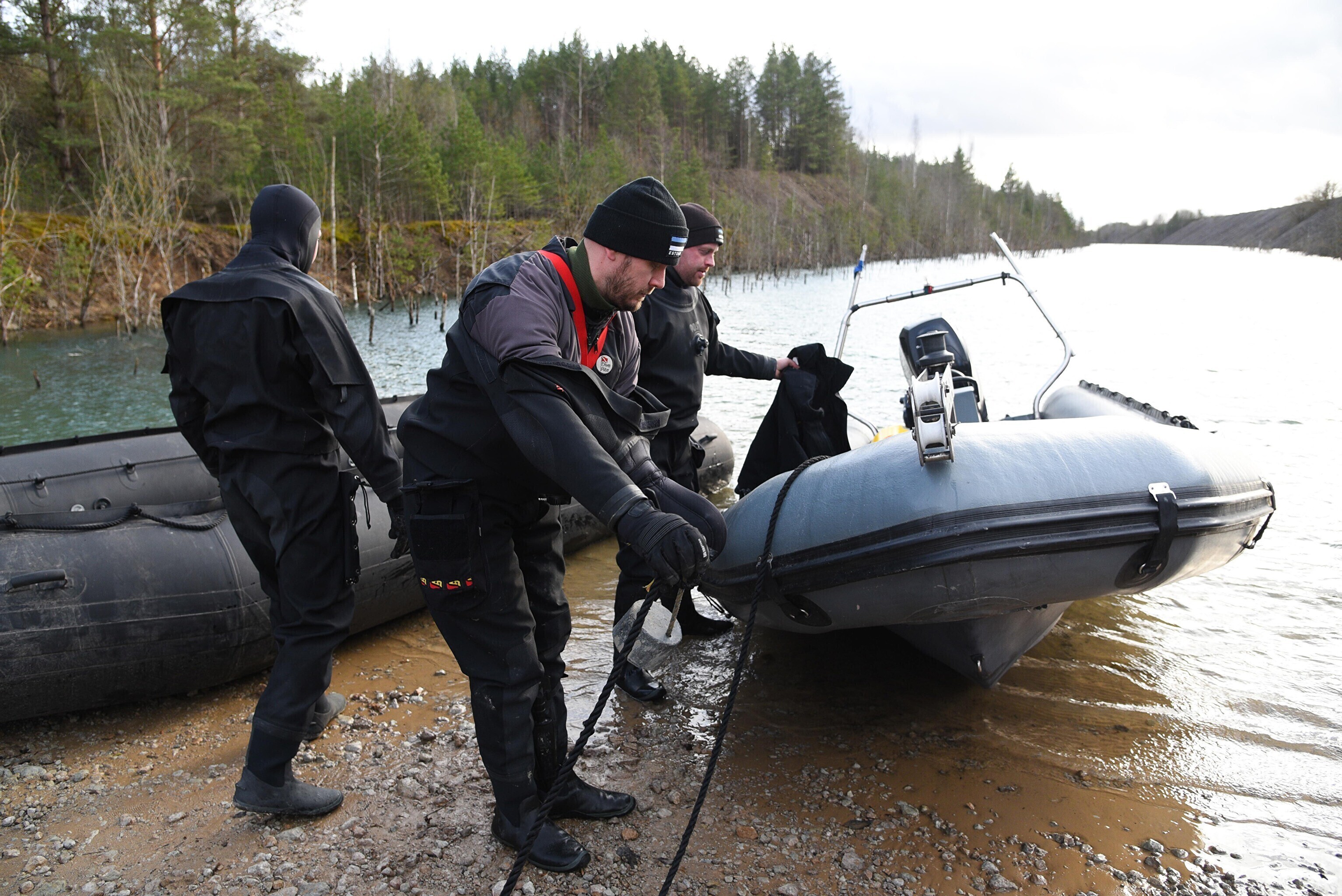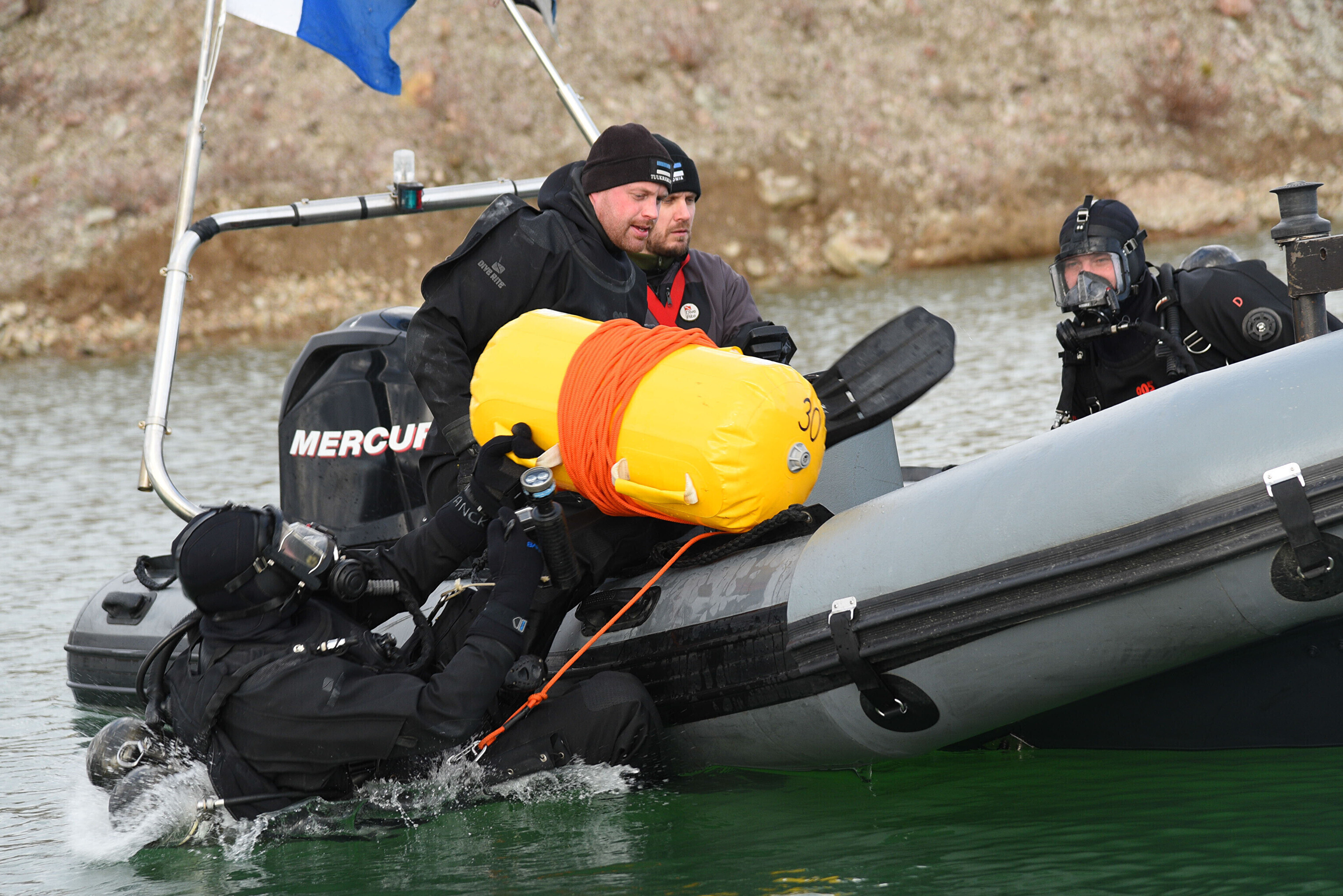 "Мы отрабатываем навигацию под водой с использованием ручного подводного эхолота. На дне установлена учебная мина. Водолазы ныряют, учатся обнаруживать ее и ориентируются с помощью навигации", – сказал руководитель группы водолазов ВМФ старший лейтенант Прийт Каазикмяэ.