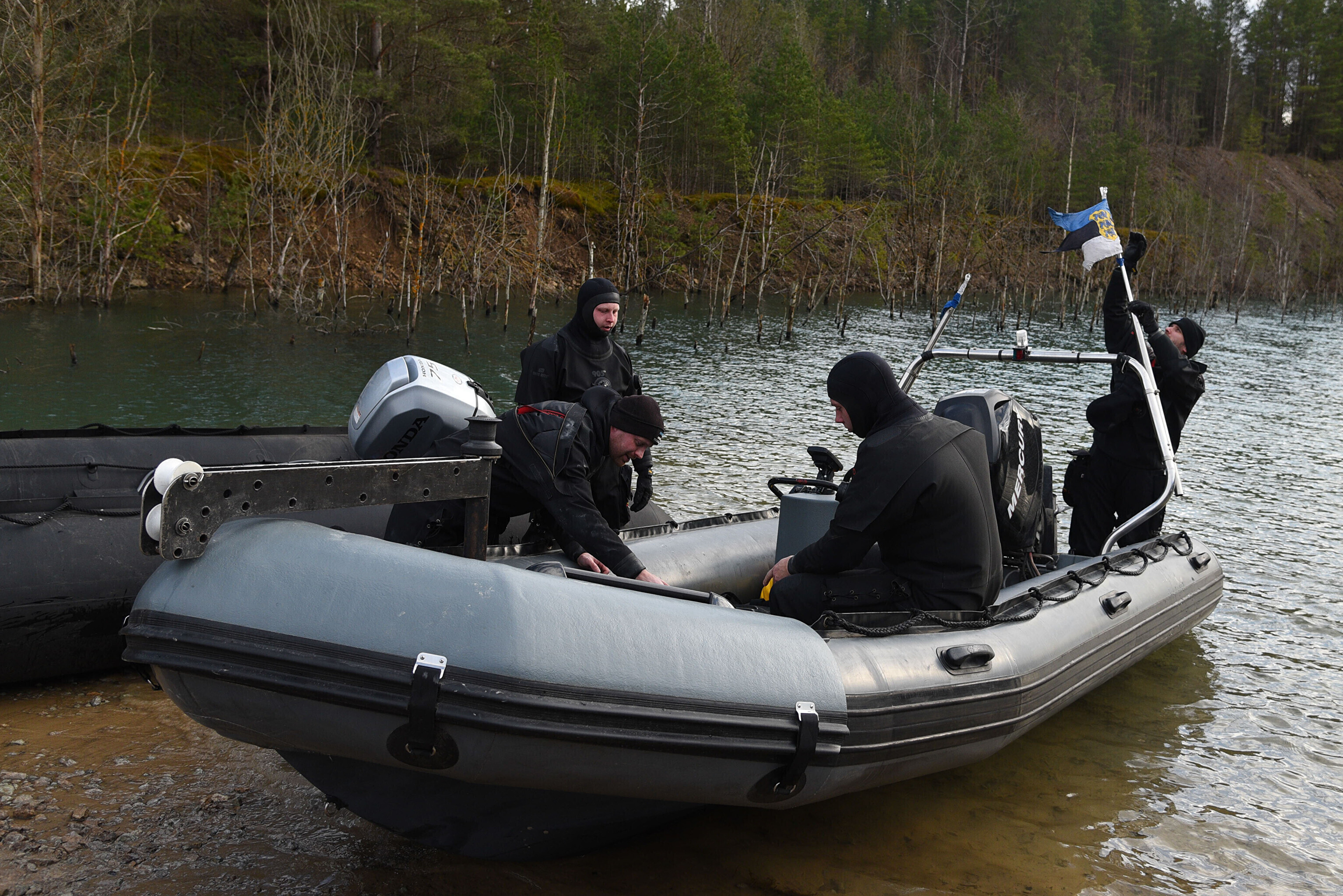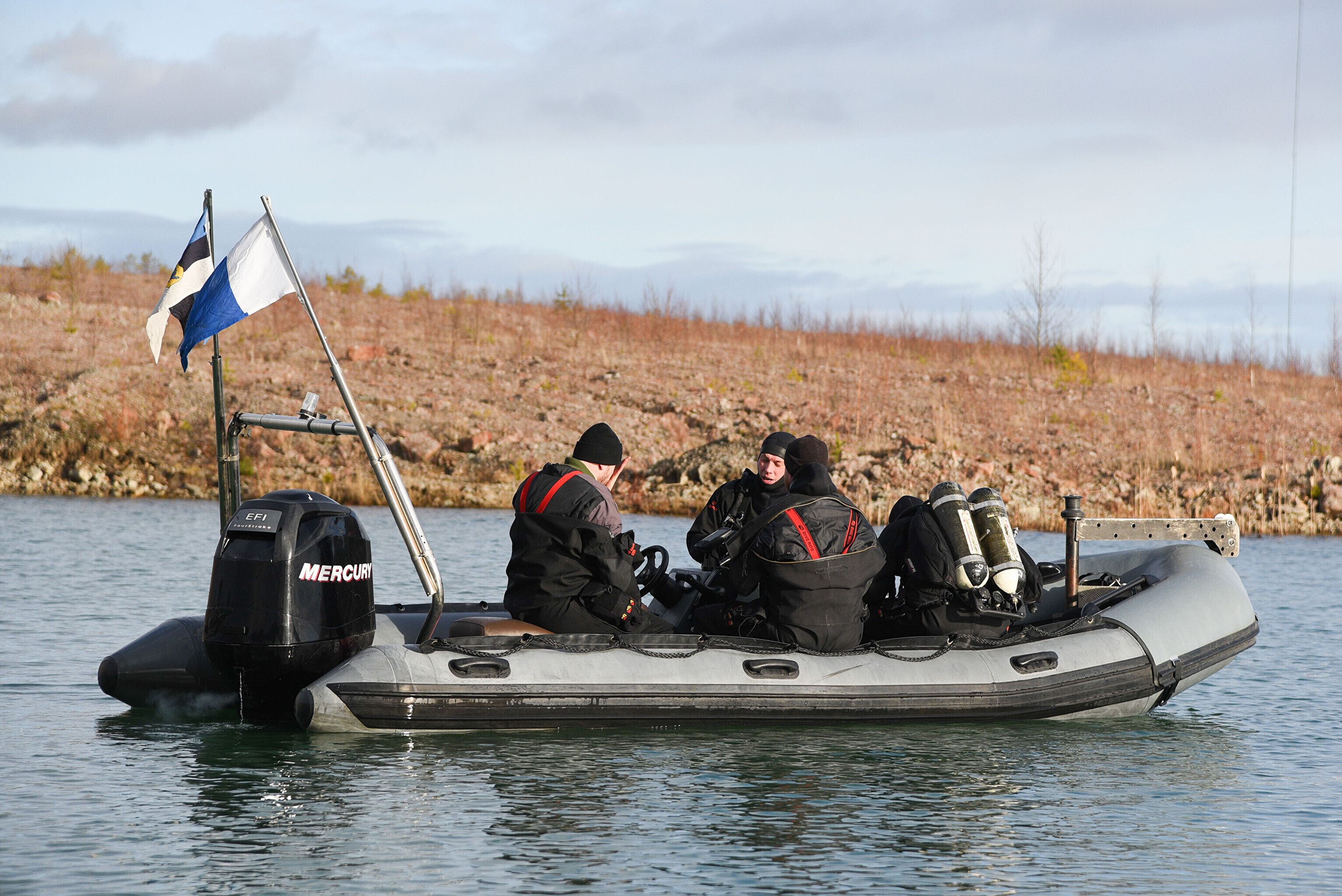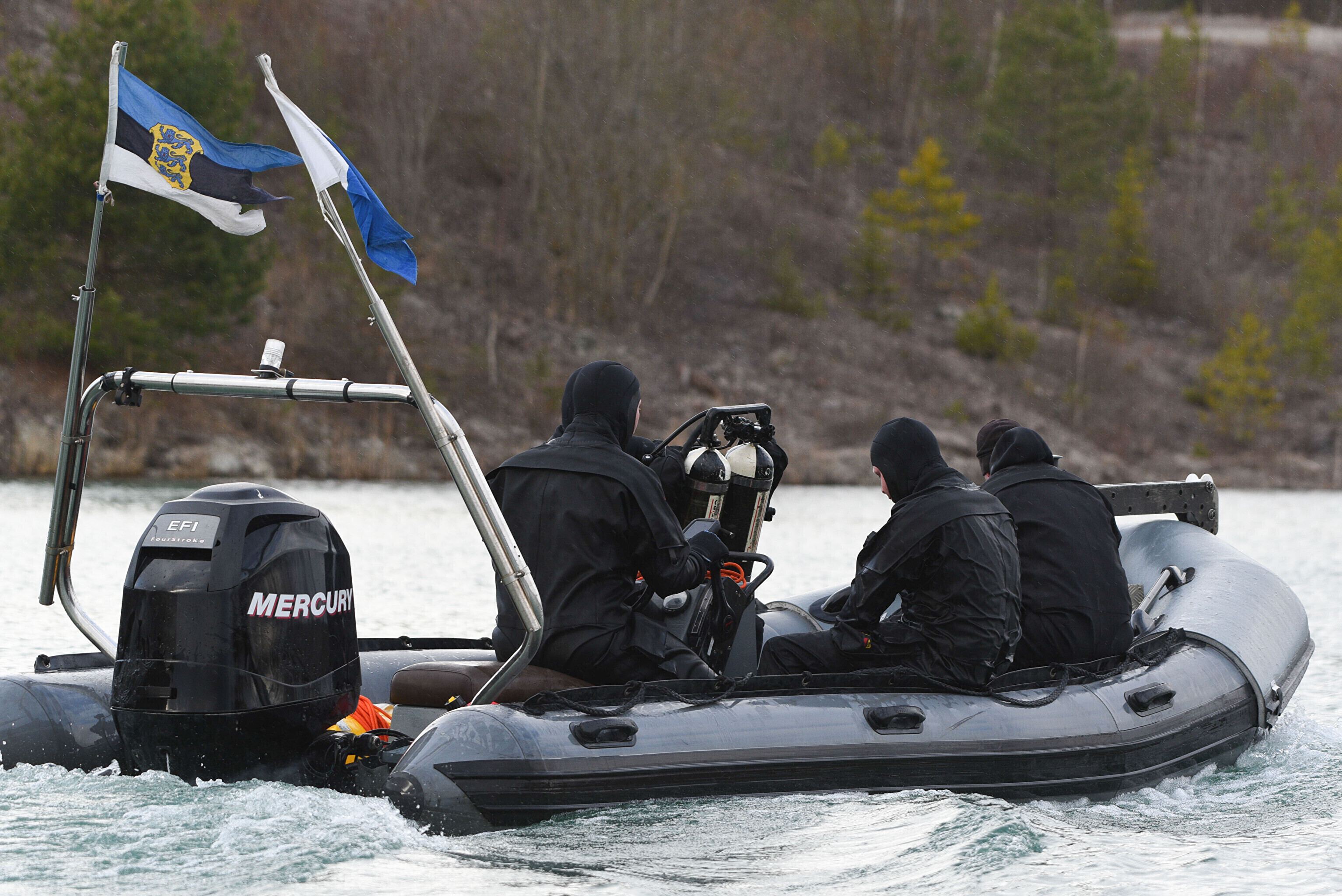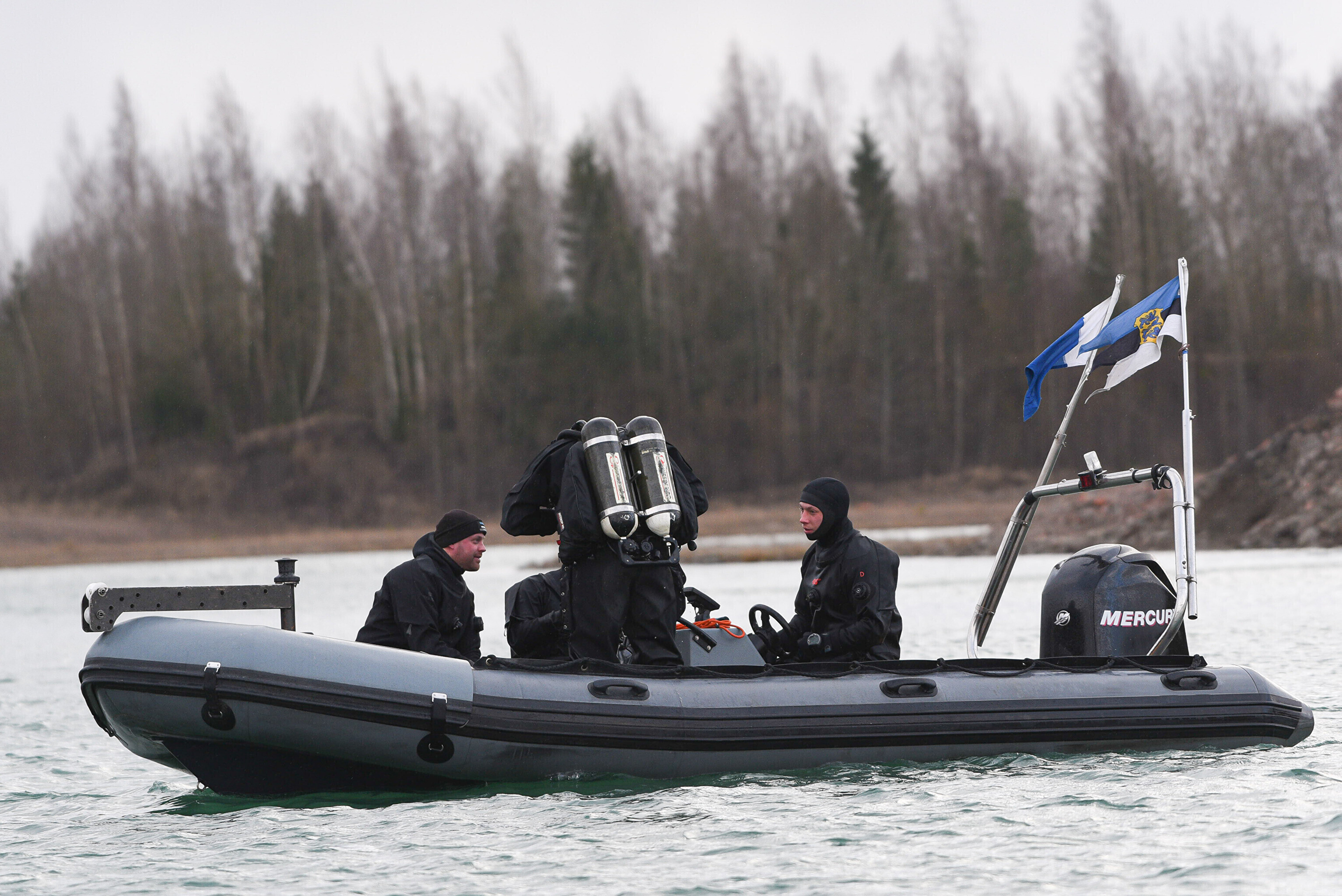 "Мы отрабатываем навигацию под водой с использованием ручного подводного эхолота. На дне установлена учебная мина. Водолазы ныряют, учатся обнаруживать ее и ориентируются с помощью навигации", – сказал руководитель группы водолазов ВМФ старший лейтенант Прийт Каазикмяэ.