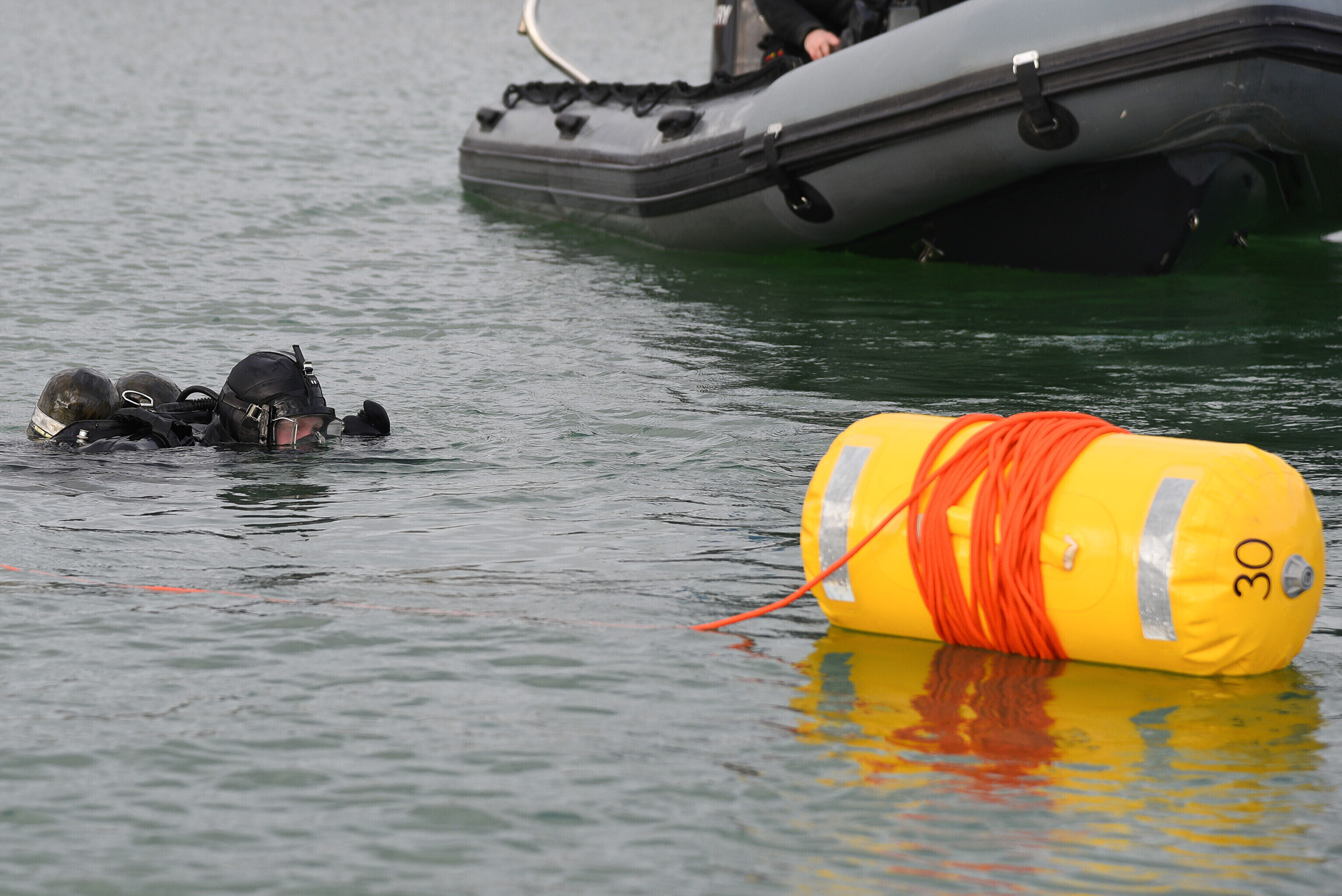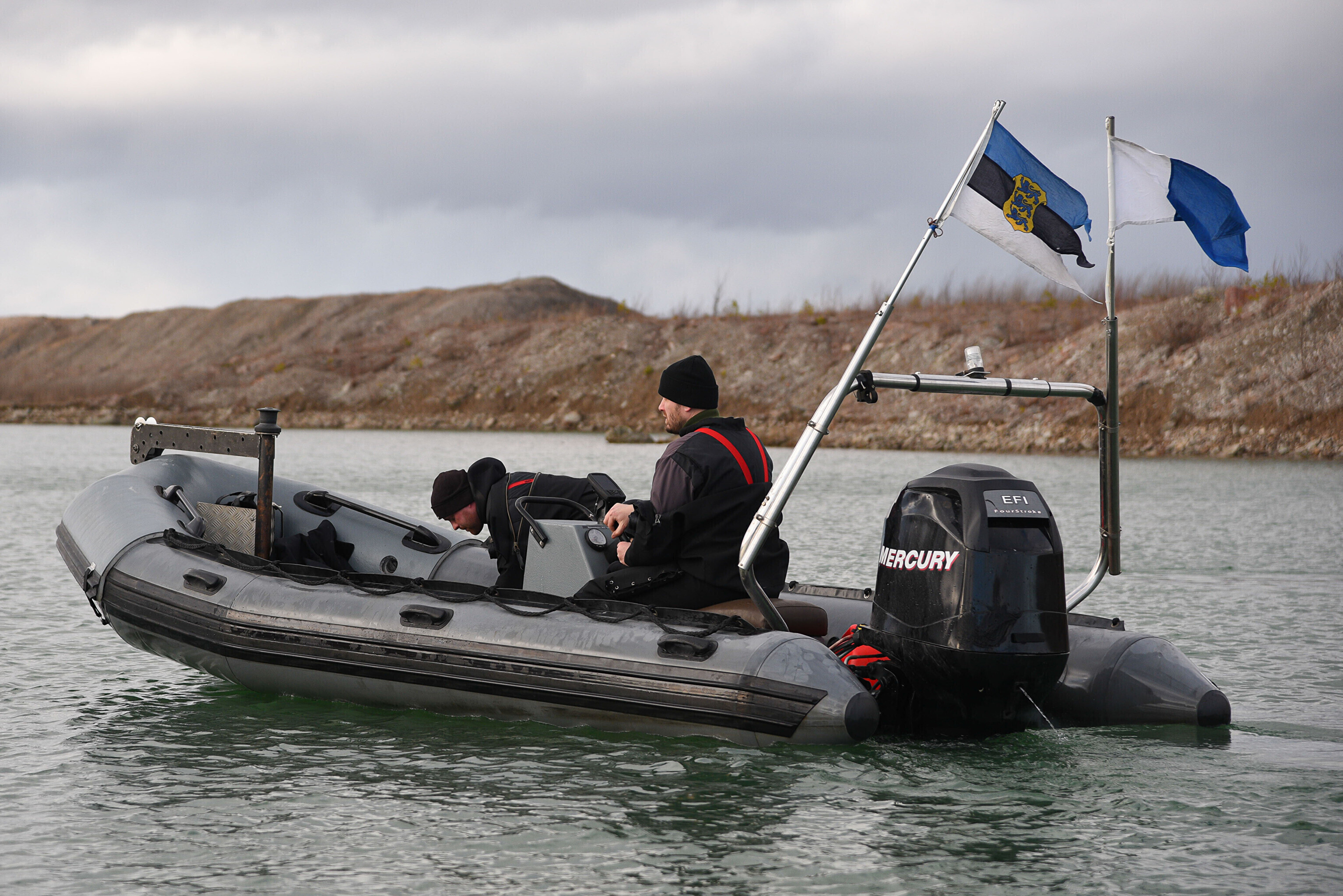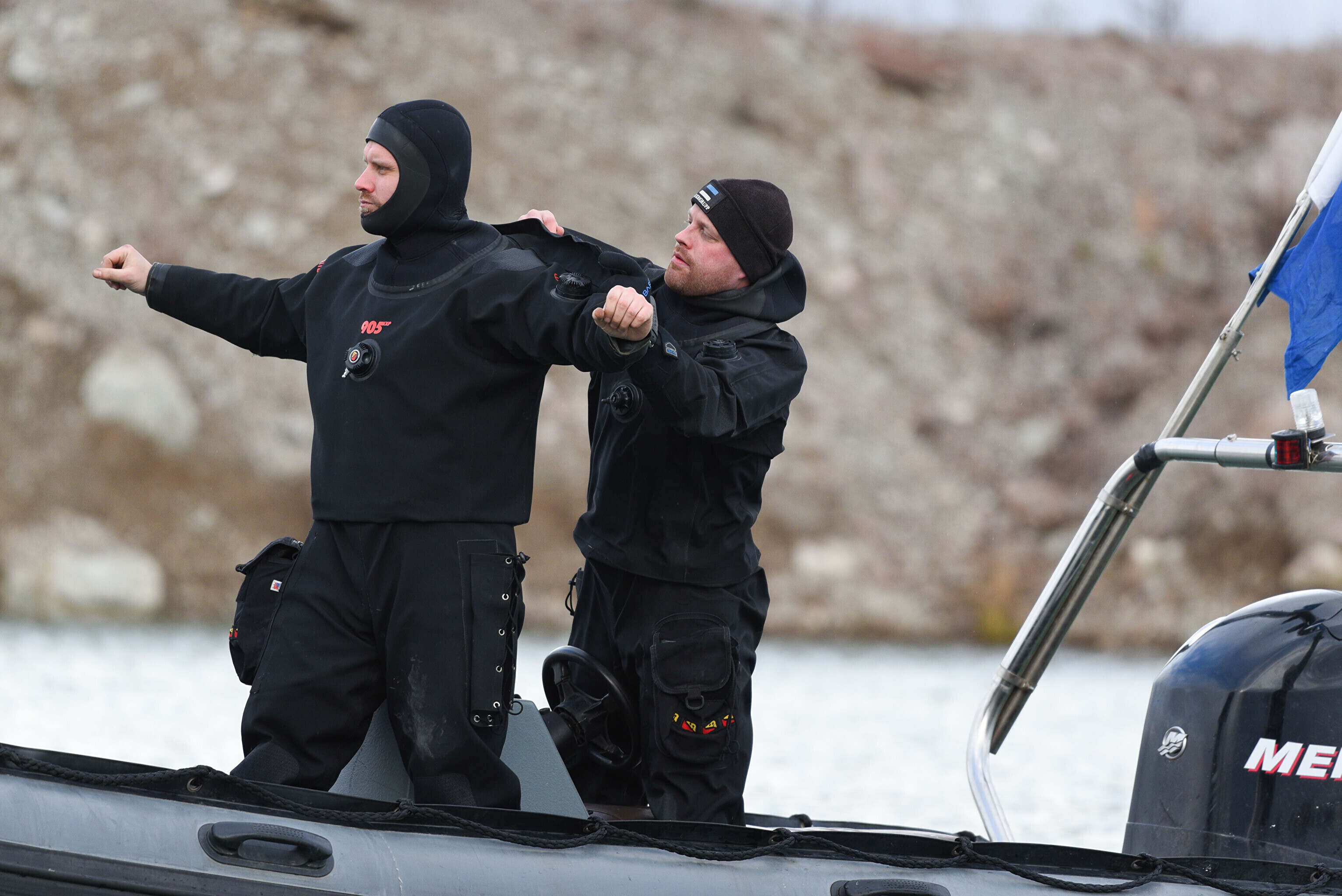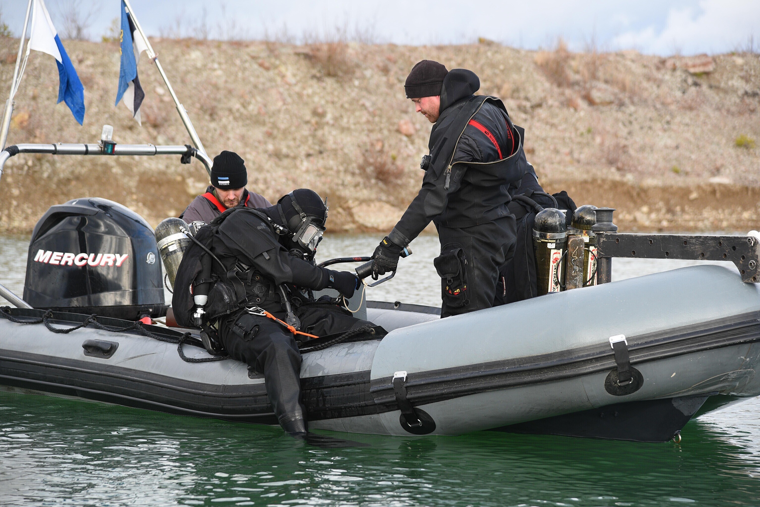 "Мы отрабатываем навигацию под водой с использованием ручного подводного эхолота. На дне установлена учебная мина. Водолазы ныряют, учатся обнаруживать ее и ориентируются с помощью навигации", – сказал руководитель группы водолазов ВМФ старший лейтенант Прийт Каазикмяэ.