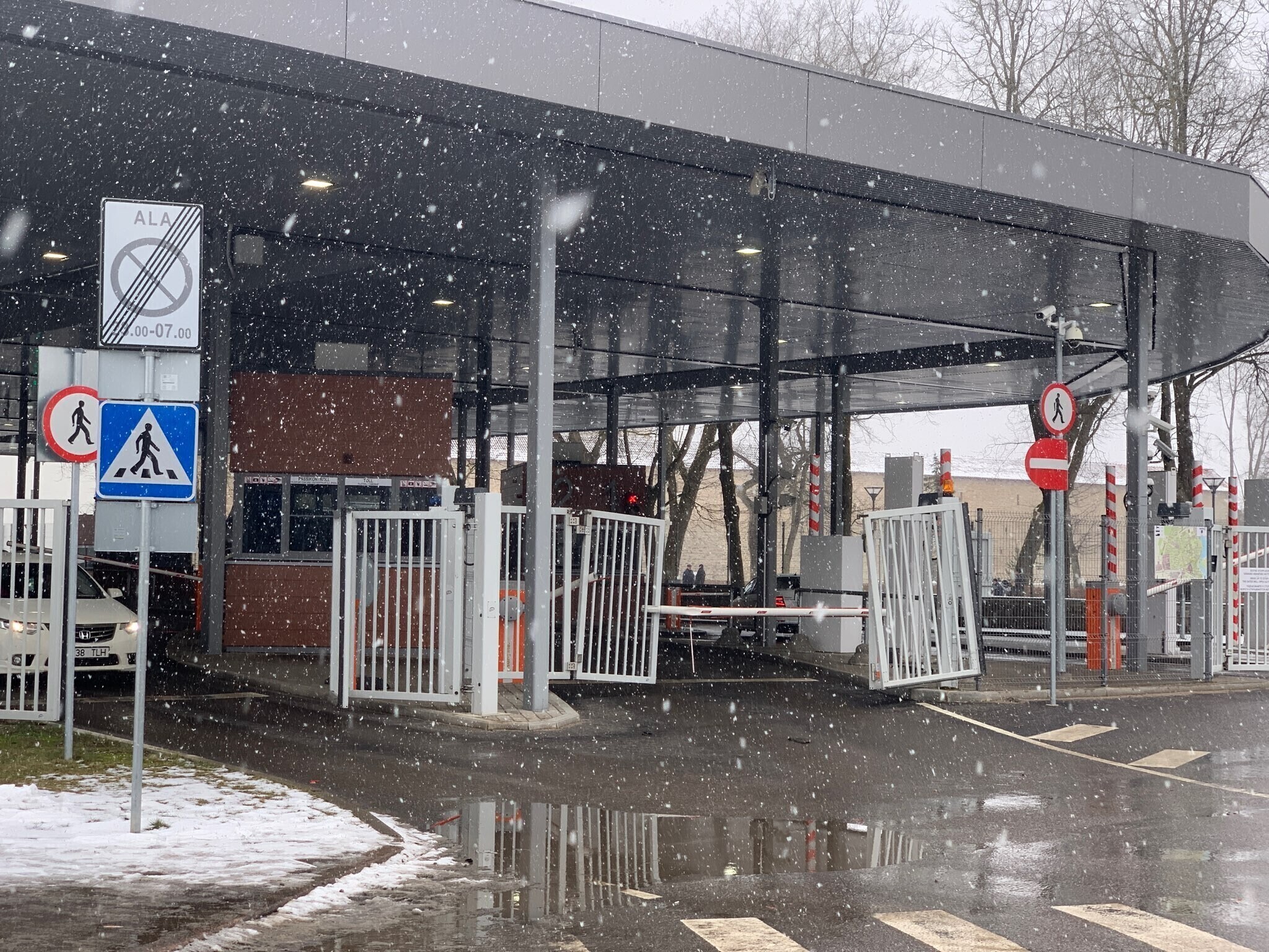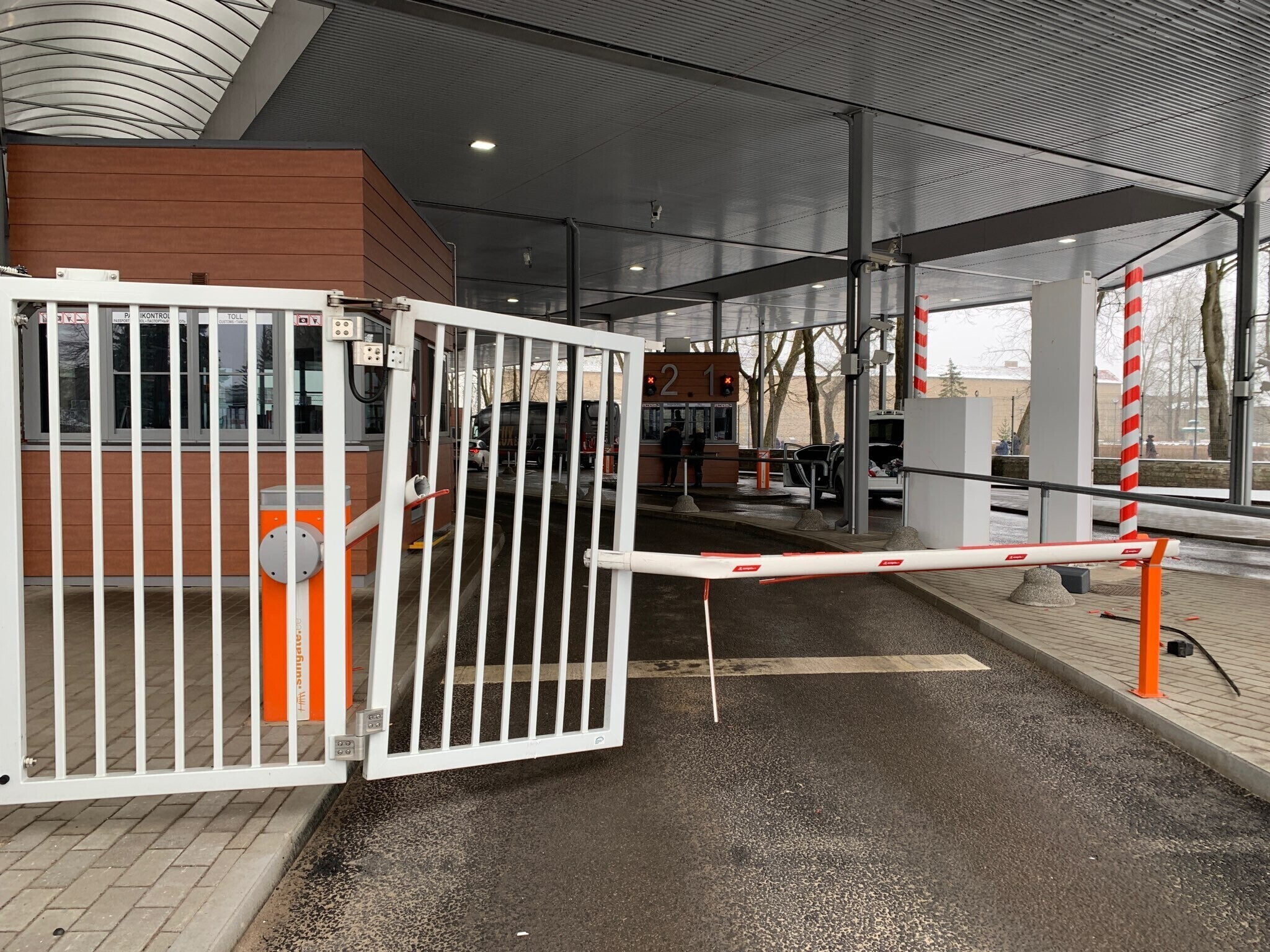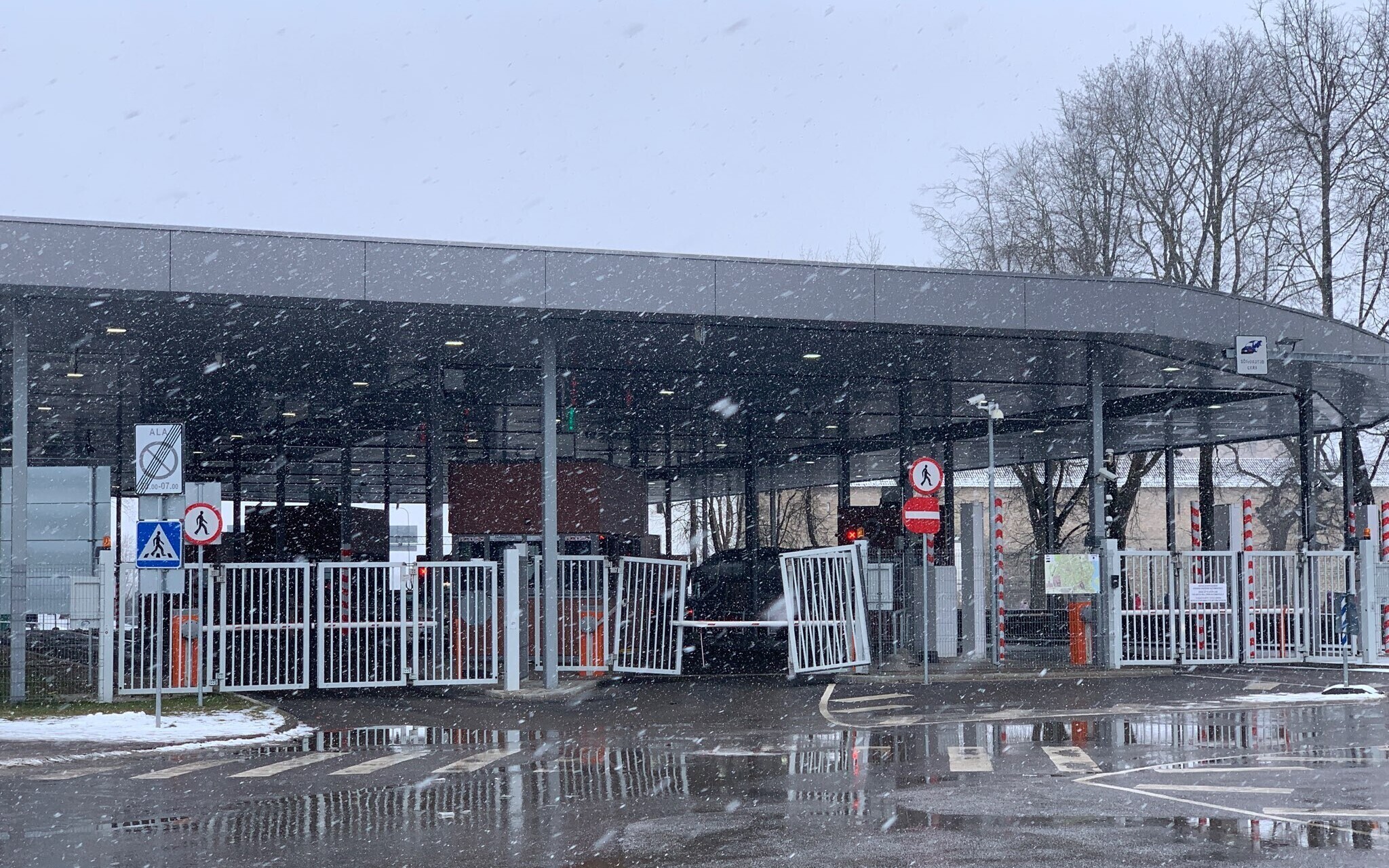 В ночь на воскресенье на Нарвском погранпункте ехавший с российской стороны автомобиль разогнался и протаранил ворота. Нарушитель задержан.