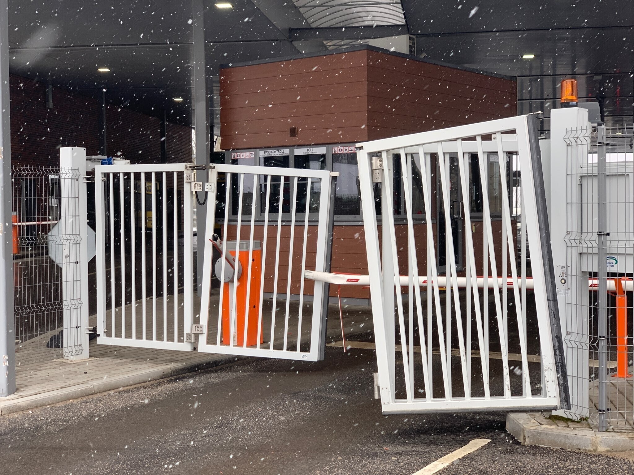 В Нарве автомобиль протаранил ворота на границе