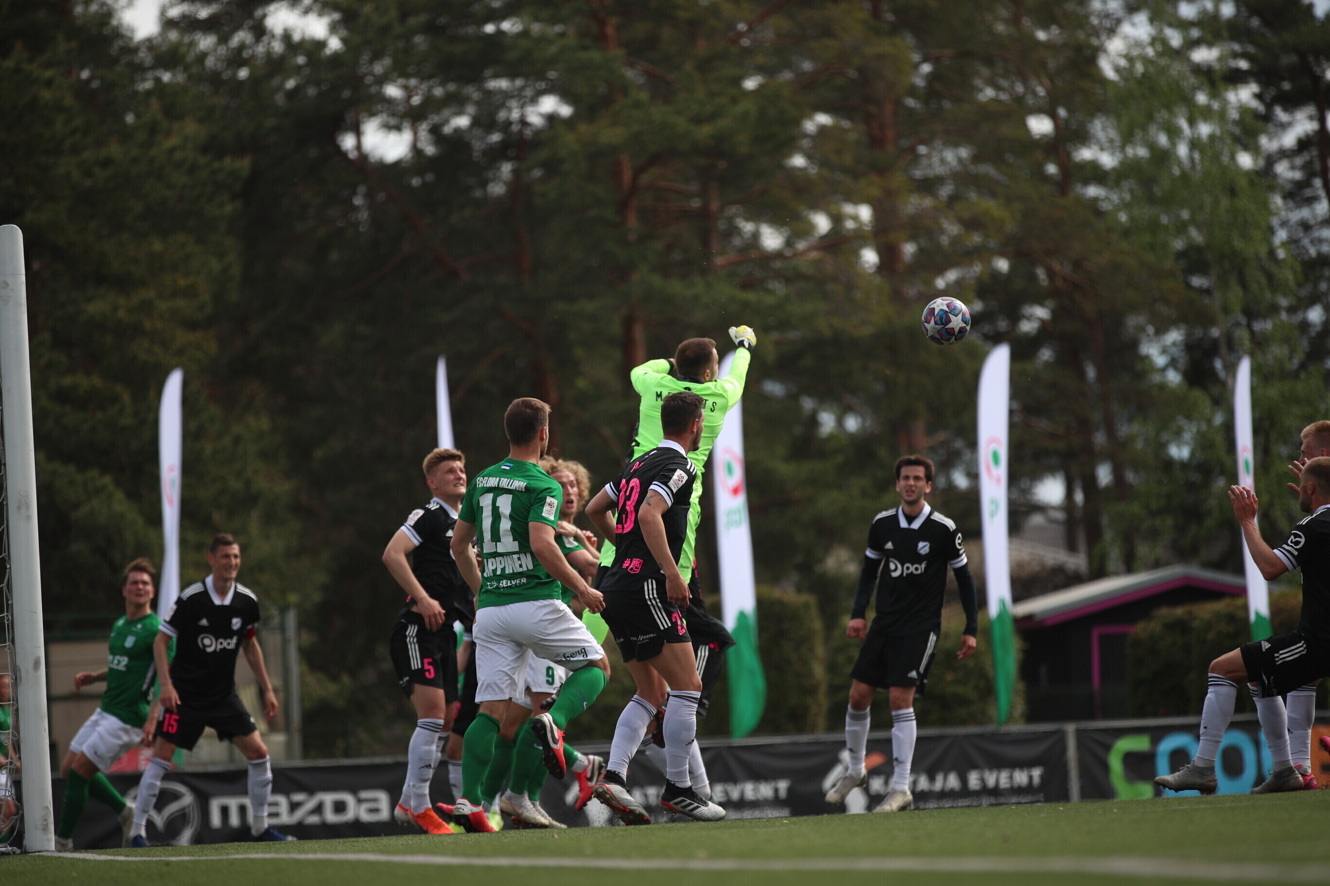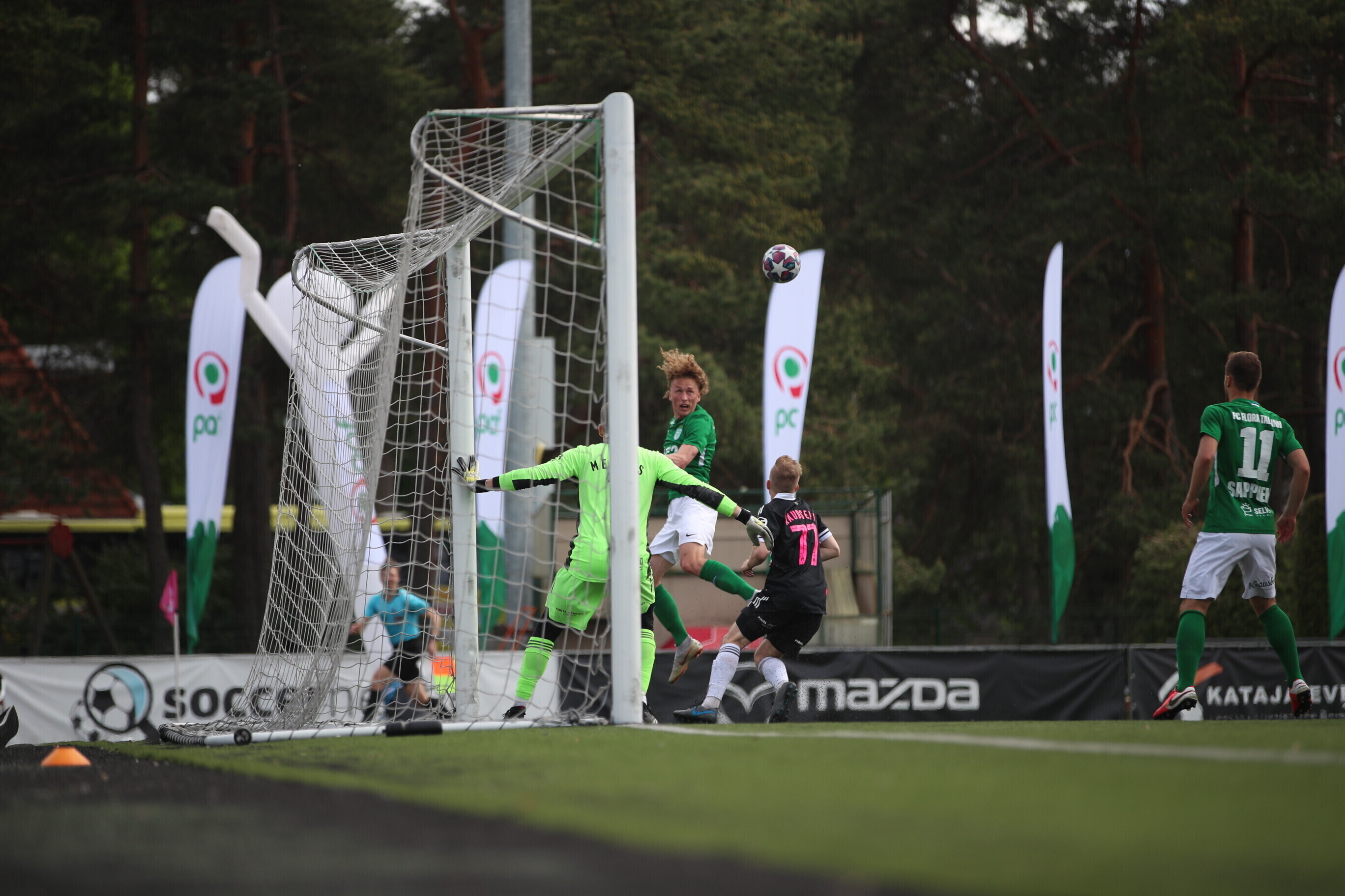 На 74-й минуте Рауно Аллику головой хотел навесить на дальнюю штангу, но в итоге мяч залетел в ворота - 2:1 в пользу "Флоры".