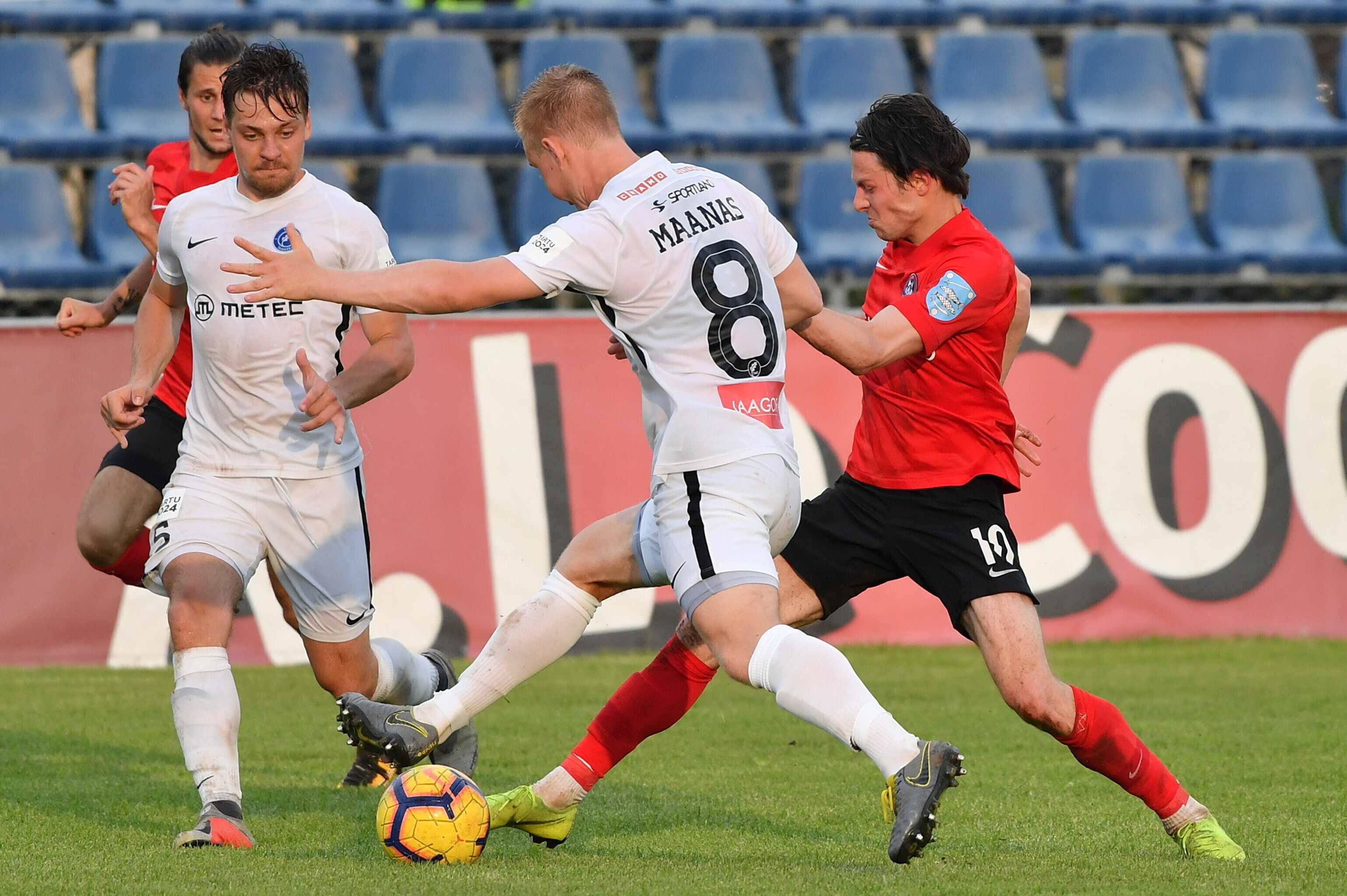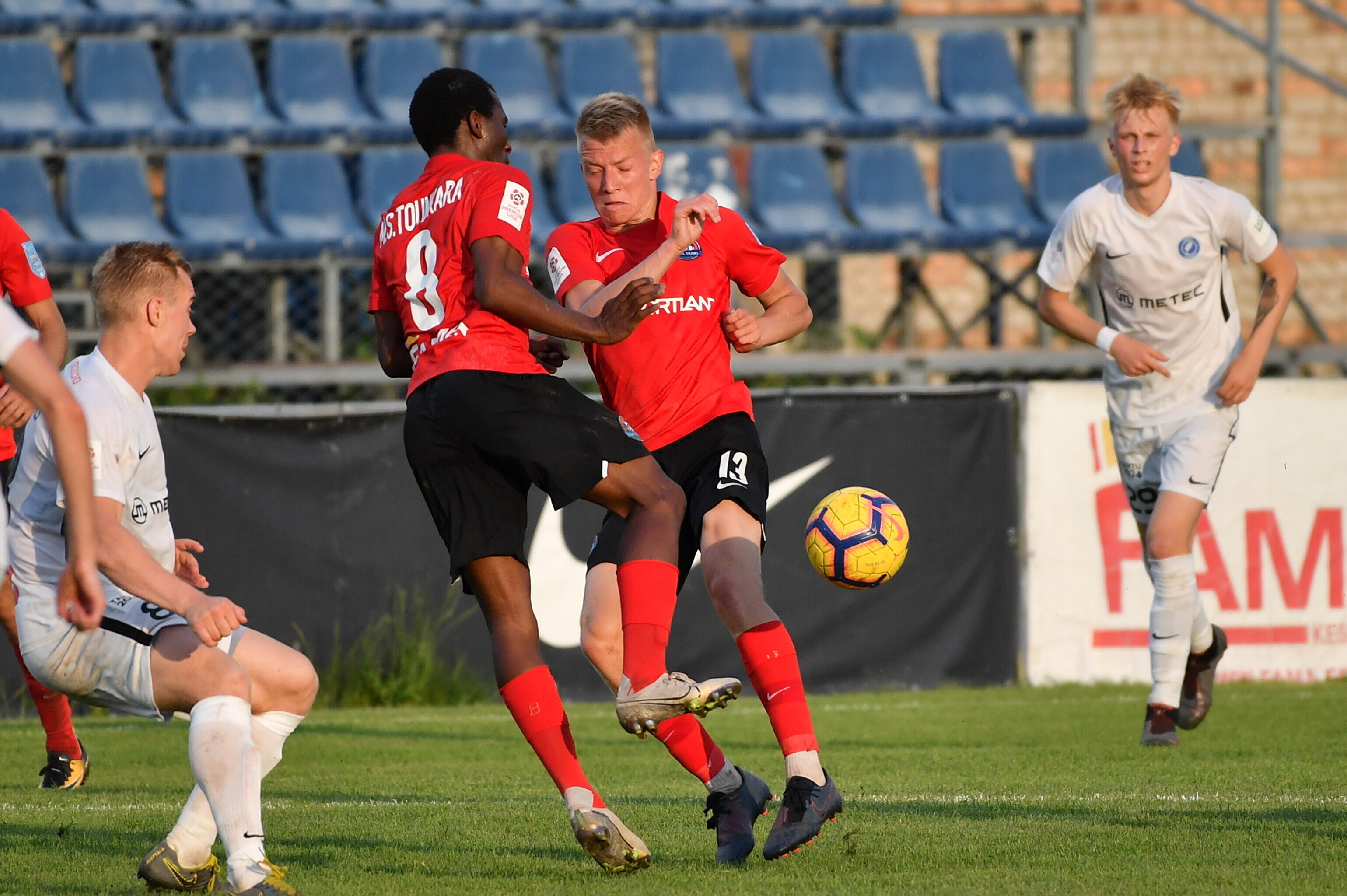 В среду, 17 июня, состоялись очередные матчи восьмого тура чемпионата Эстонии по футболу. Нарвский "Транс" потерпел очередное поражение, проиграв дома тартуской "Таммеке" - 0:1. С таким же счетом "Нымме Калью" в родных стенах уступил "Пайде". А "Курессааре" в гостях выиграл у таллиннского "Калева" - 2:0.