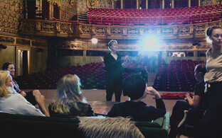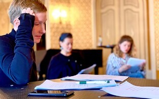 Кстати, не даст забыть вам про пандемию и сама Космынина, озвучившая предупреждение для зрителей перед антрактом. Она же читает и погодные сводки, так что если кто соскучился по теледиктору Татьяне, то есть прекрасный повод прийти в театр. Увидеть - не увидите, но хотя бы услышите.
