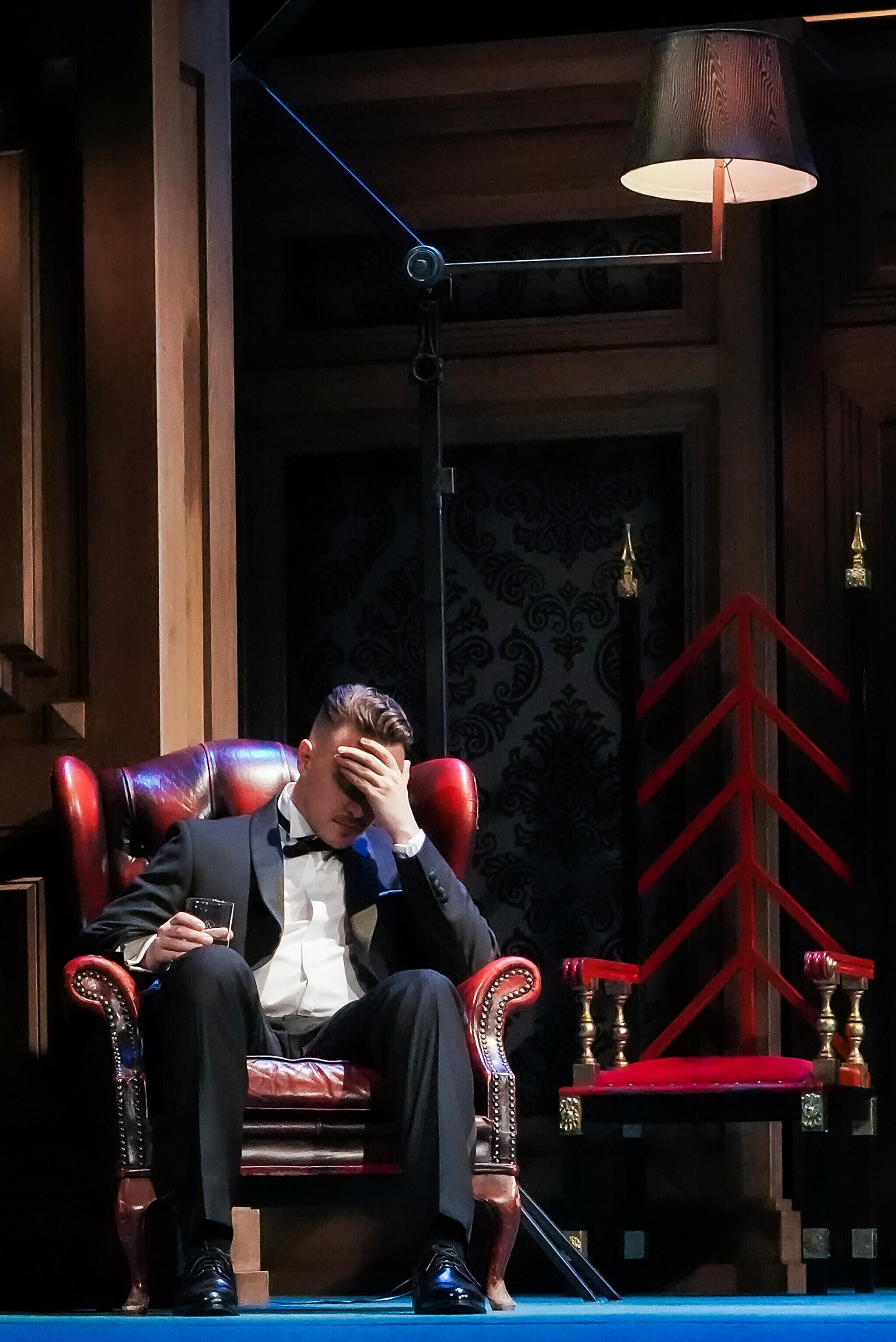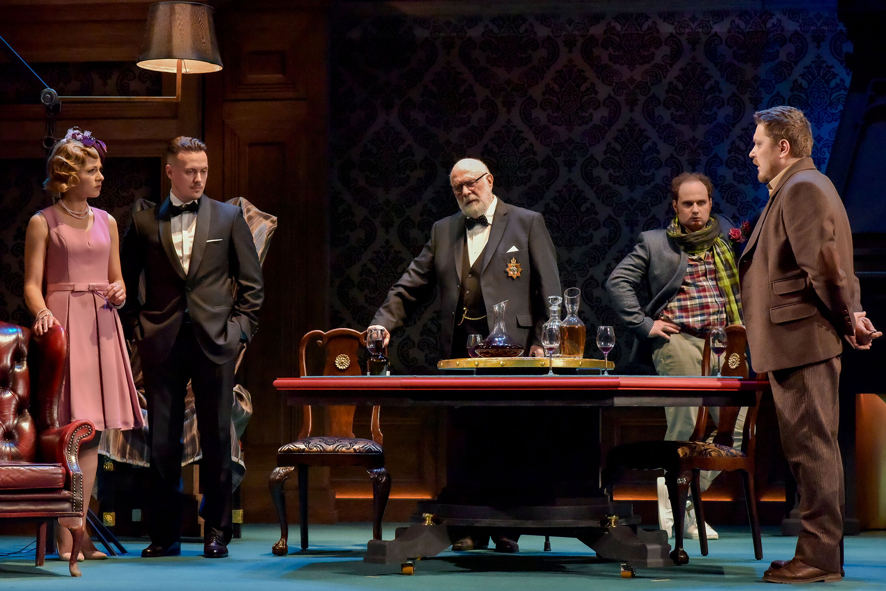 Еще одно важное действующее лицо в данном спектакле - художник Владимир Аншон. Да, тот самый, который в начале десятых оформил в Русском театре легендарный спектакль Наталии Лапиной "Лес". На сцене обстановка стандартного английского дома с камином. И, кажется, что все прочно и надежно.
