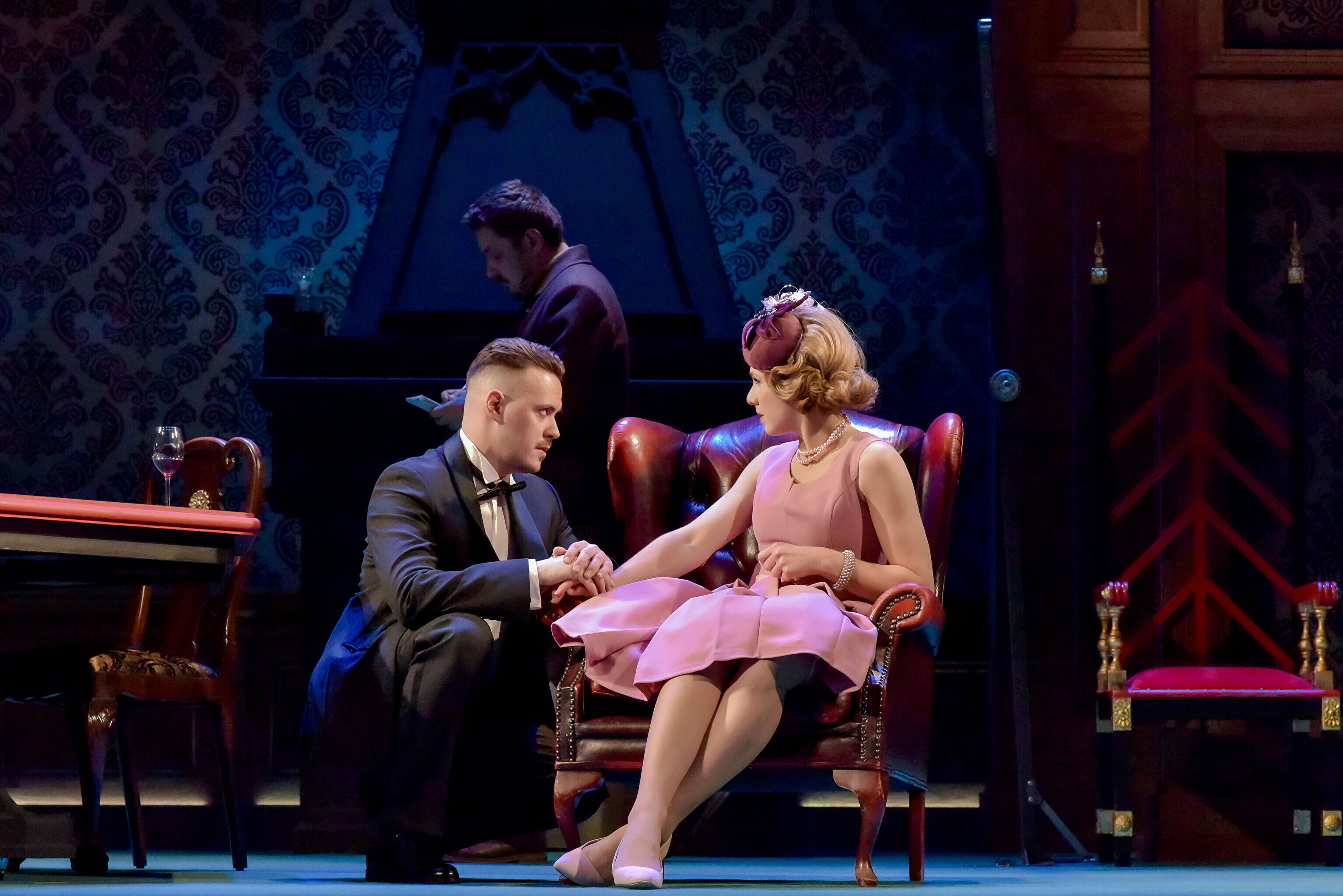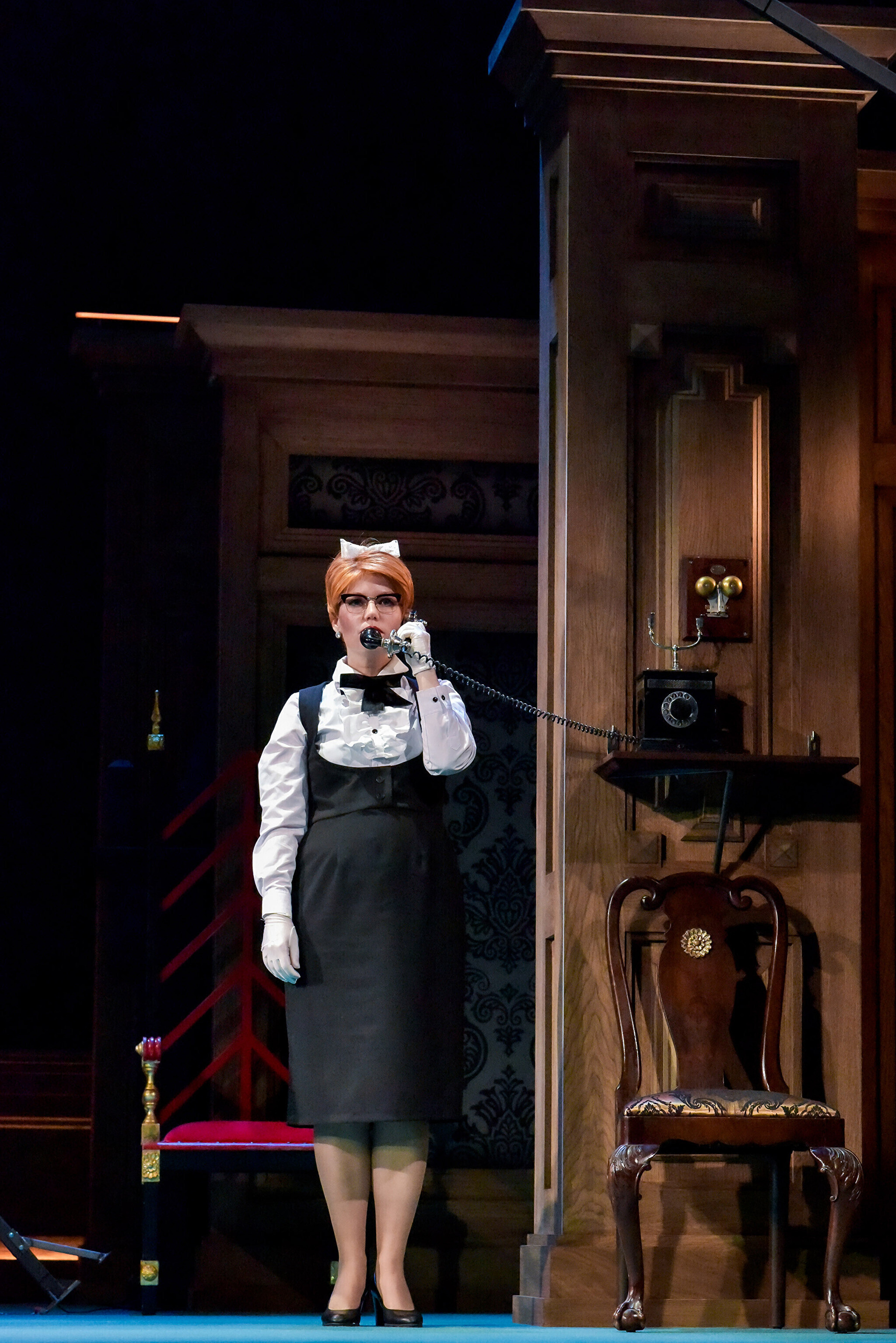 Конечно же, главное действующее лицо в спектакле - это служанка Эдна (Марина Малова). Давно не видел на подмостках такого классического героя театральных анекдотов про "Кушать подано!". Эдна имеет два с половиной выхода на сцену за все время спектакля, один из них и вовсе без слов - просто, гордо неся себя, служанка собирает бокалы из-под портвейна со стола.