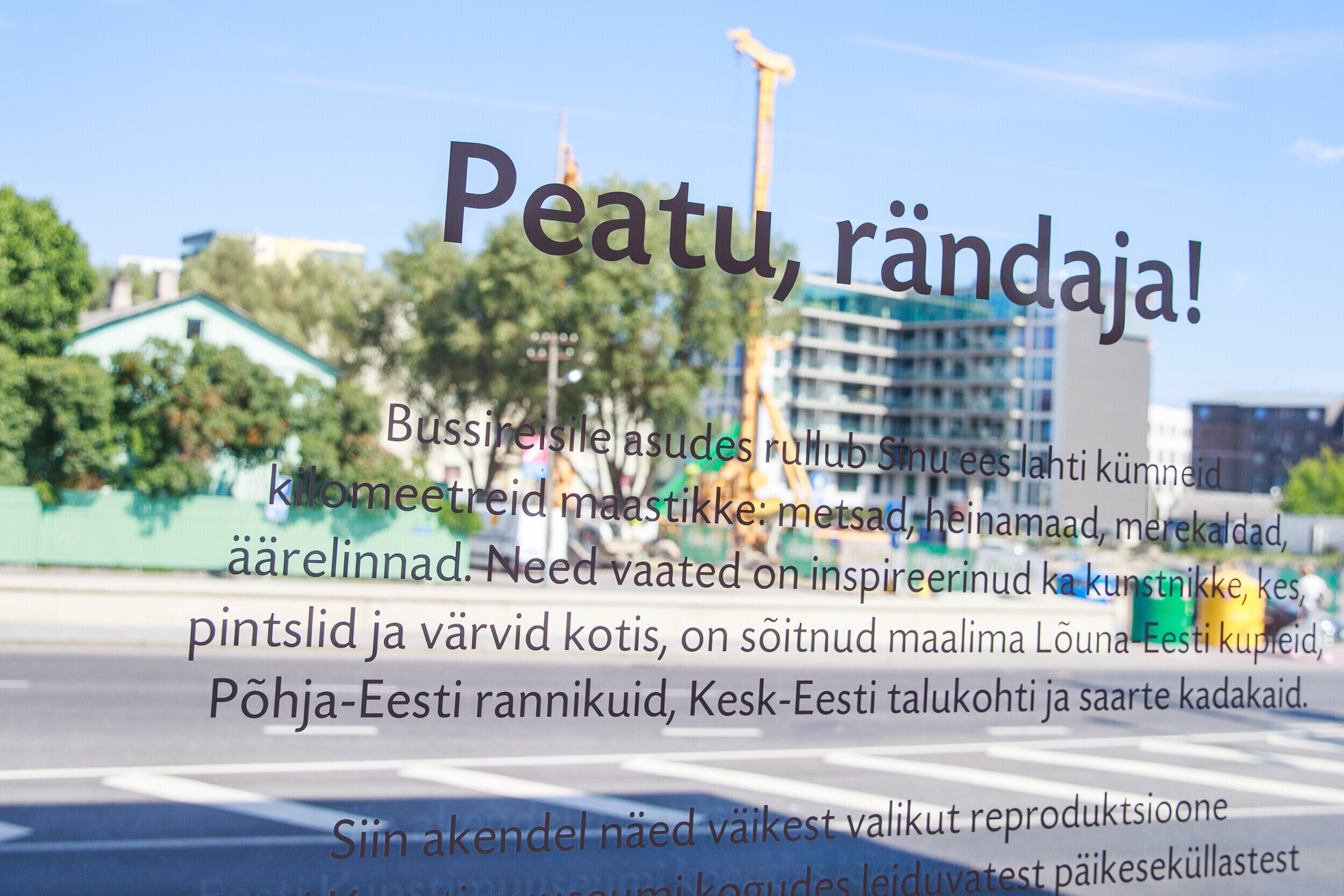 С 5 июля пассажиров в здании Таллиннского автобусного вокзала приветствуют летние пейзажи из коллекций Художественного музея Эстонии. Зал ожидания украшают репродукции летних пейзажей Эстонии из постоянных экспозиций Художественного музея KUMU, Кадриоргского художественного музея, Музея Миккеля, Музея Нигулисте и Музея Адамсона-Эрика.