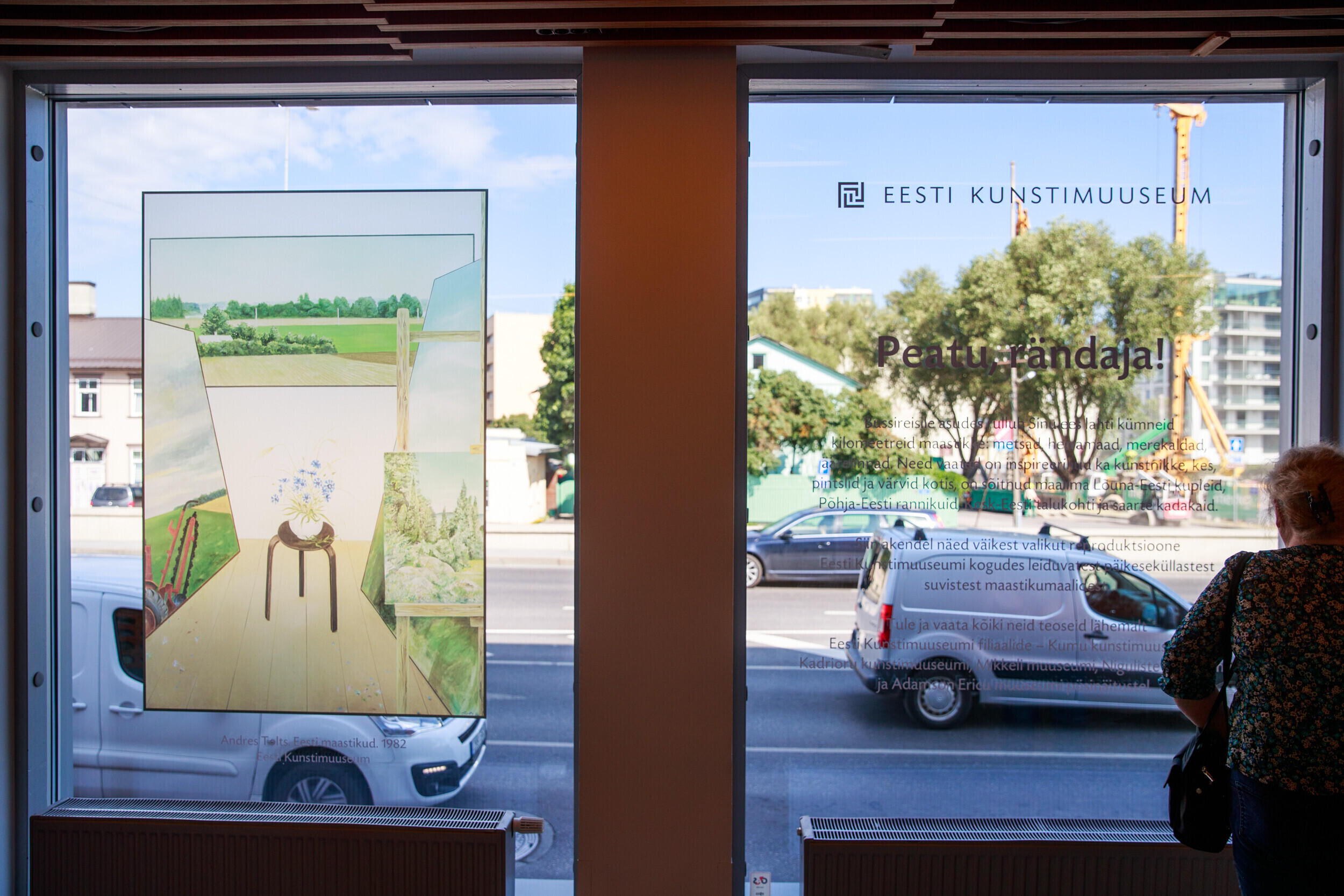 Открывает временную выставку работа Андреса Тольтса "Эстонские пейзажи", которая передает характер эстонской природы и демонстрирует, насколько важную роль пейзажная живопись играет в искусстве Эстонии. Среди остальных работ есть знаменитые картины и менее известные экземпляры. Впрочем, все их объединяет одна тема – летние пейзажи, которые можно увидеть в Эстонии из окна автобуса.
