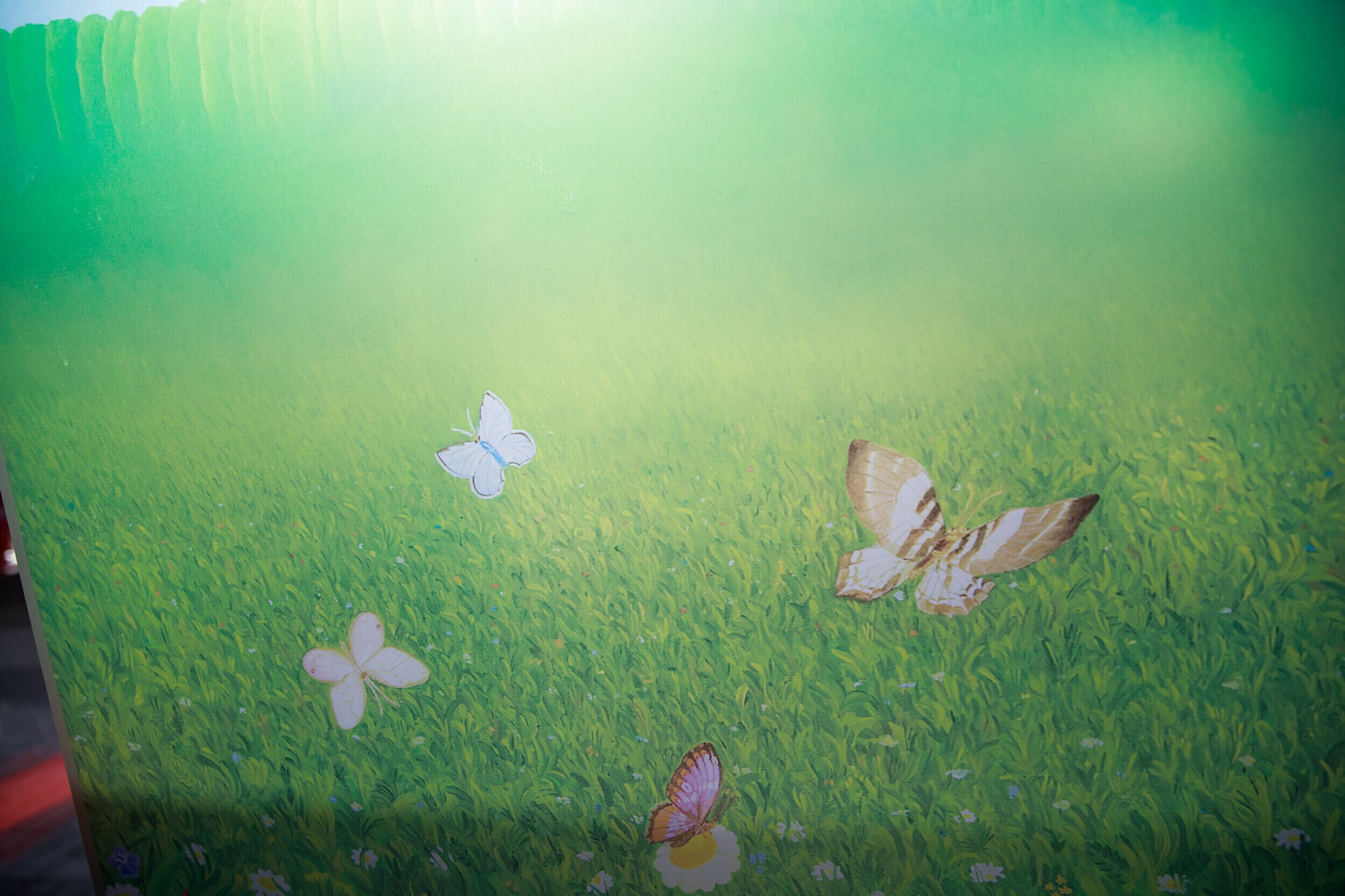 Большинство репродукций-наклеек выполнено в оригинальных размерах, но некоторые крупные работы масштабированы до габаритов, соответствующих помещению. Окна зала ожидания, расположенные на солнечной стороне, позволяют увидеть некоторые картины в новом свете.