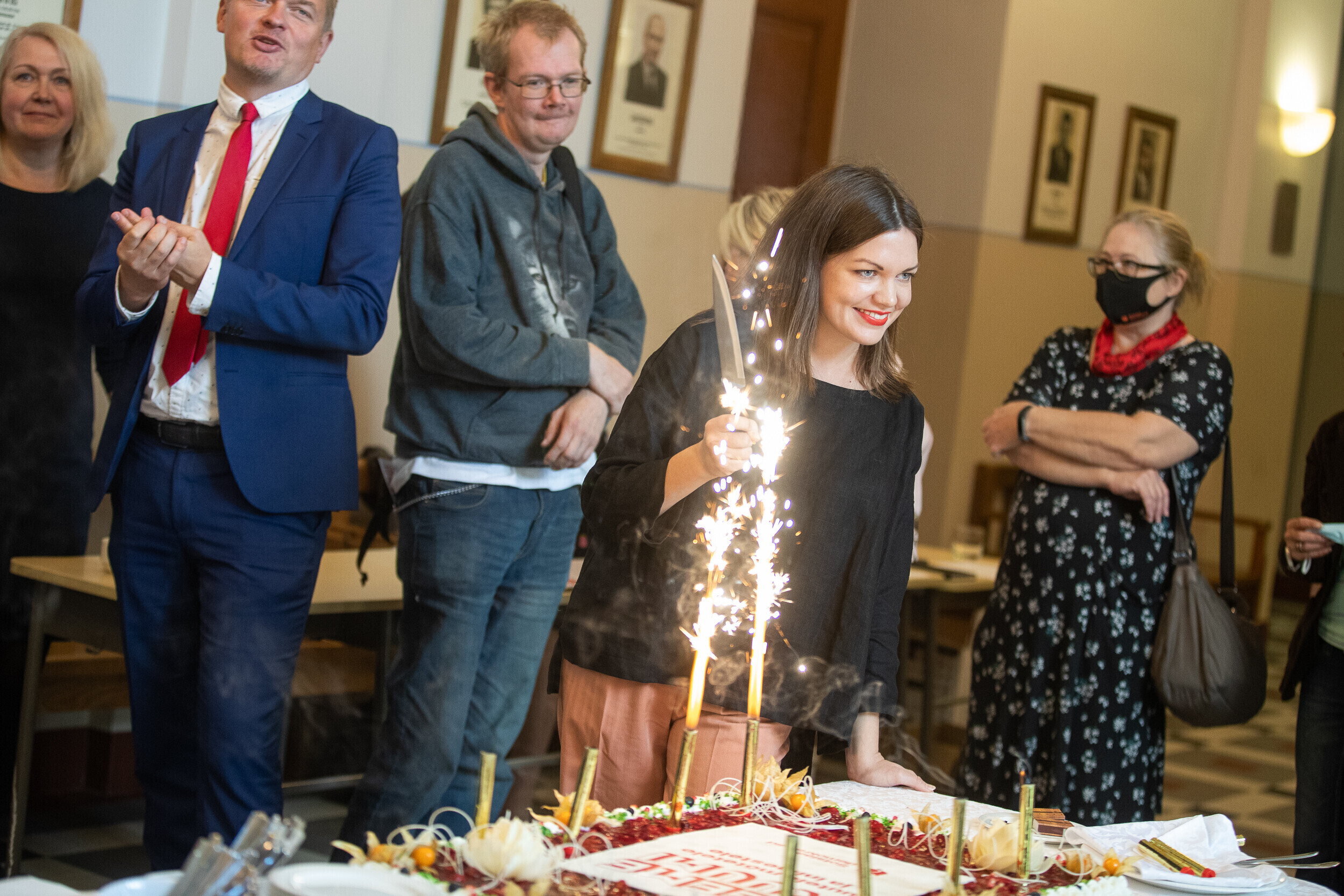 Нымме: председатель СДП, депутат Рийгикогу Индрек Саар, координатор услуг Таллиннской палаты людей с ограниченными возможностями Кюлли Урб, писатель и режиссер документальных фильмов Олев Ремсу.