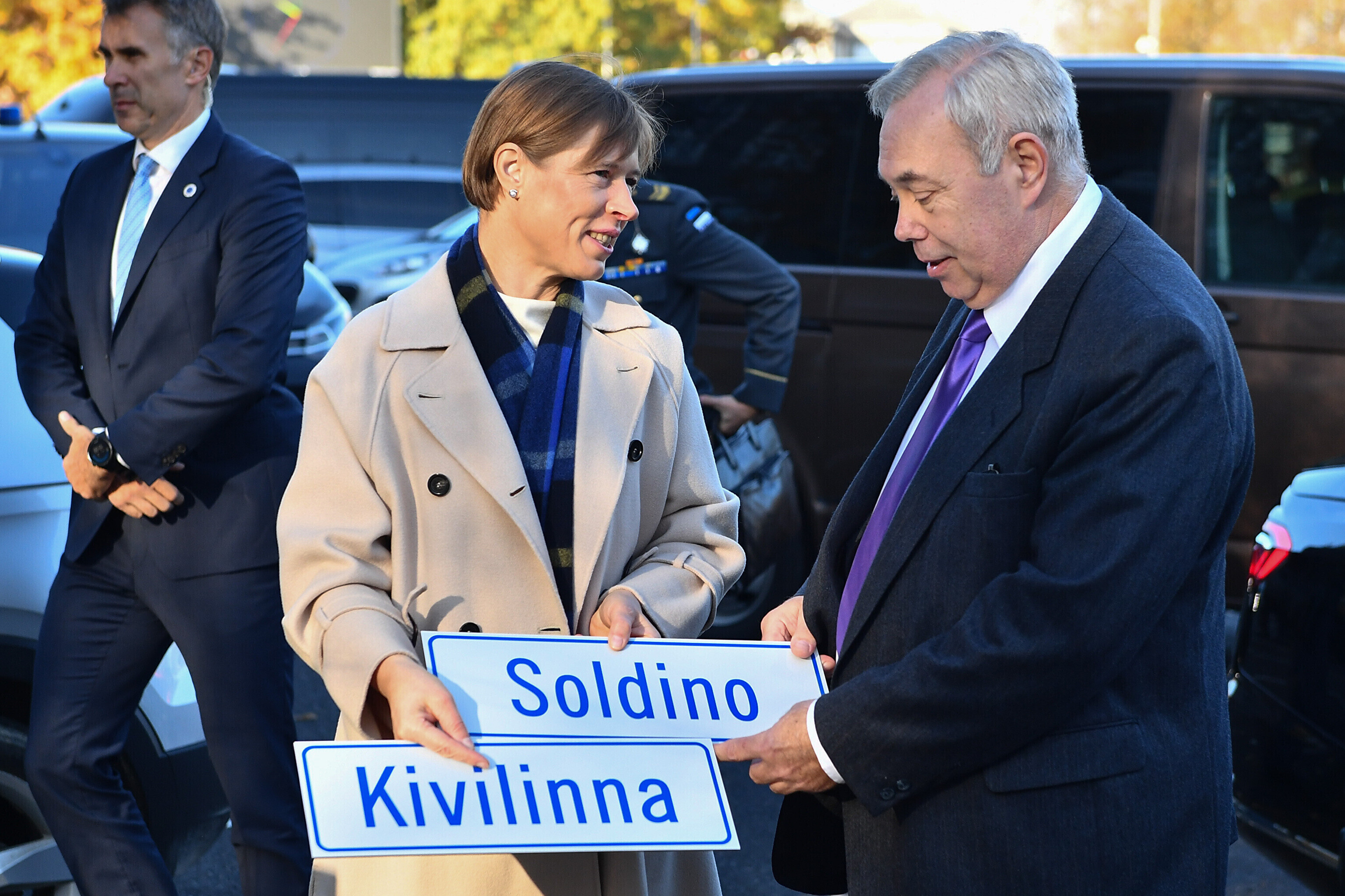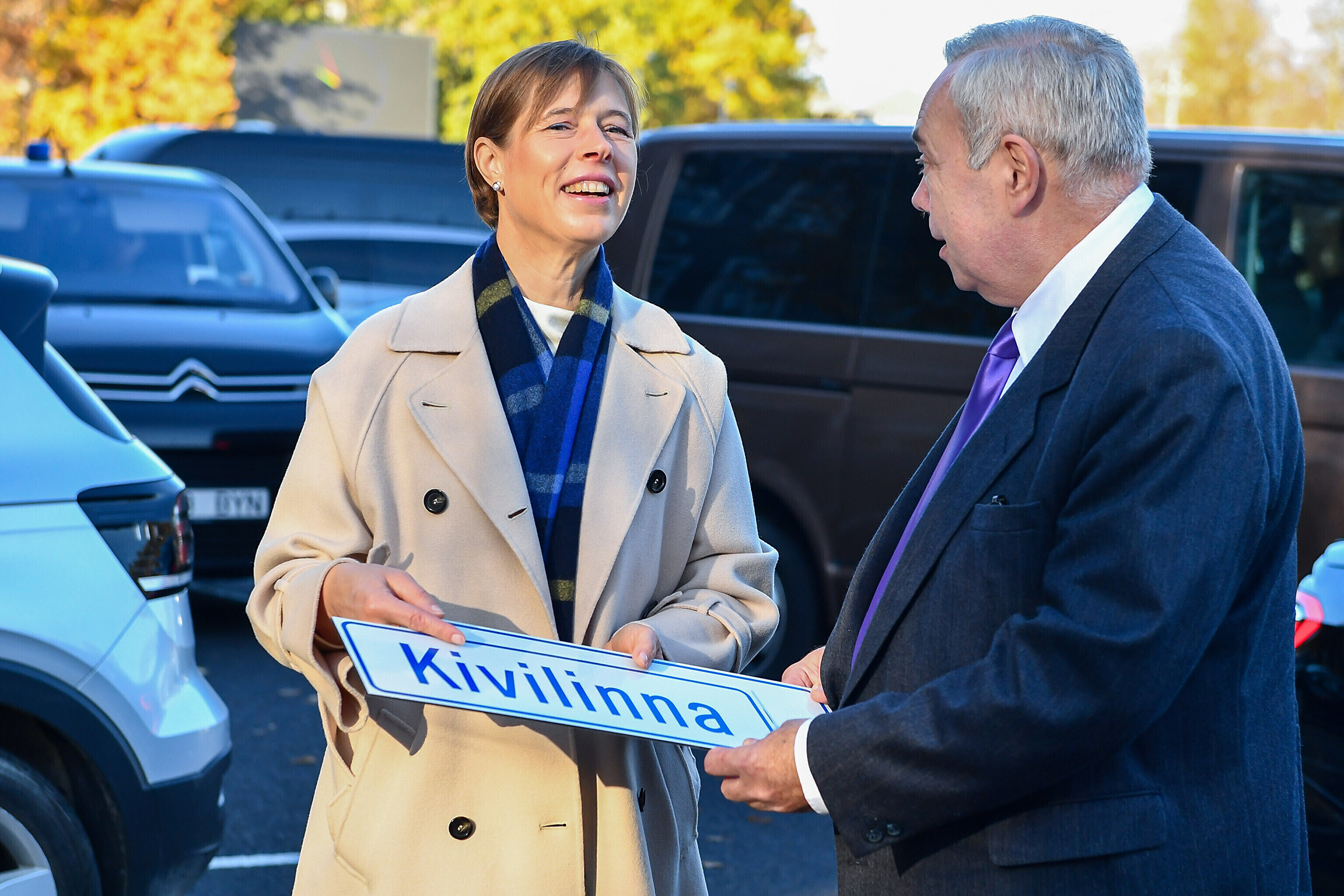 Прибыв в Нарву, президент также подарила мэру таблички с названием улиц Солдина и Кивилинна.