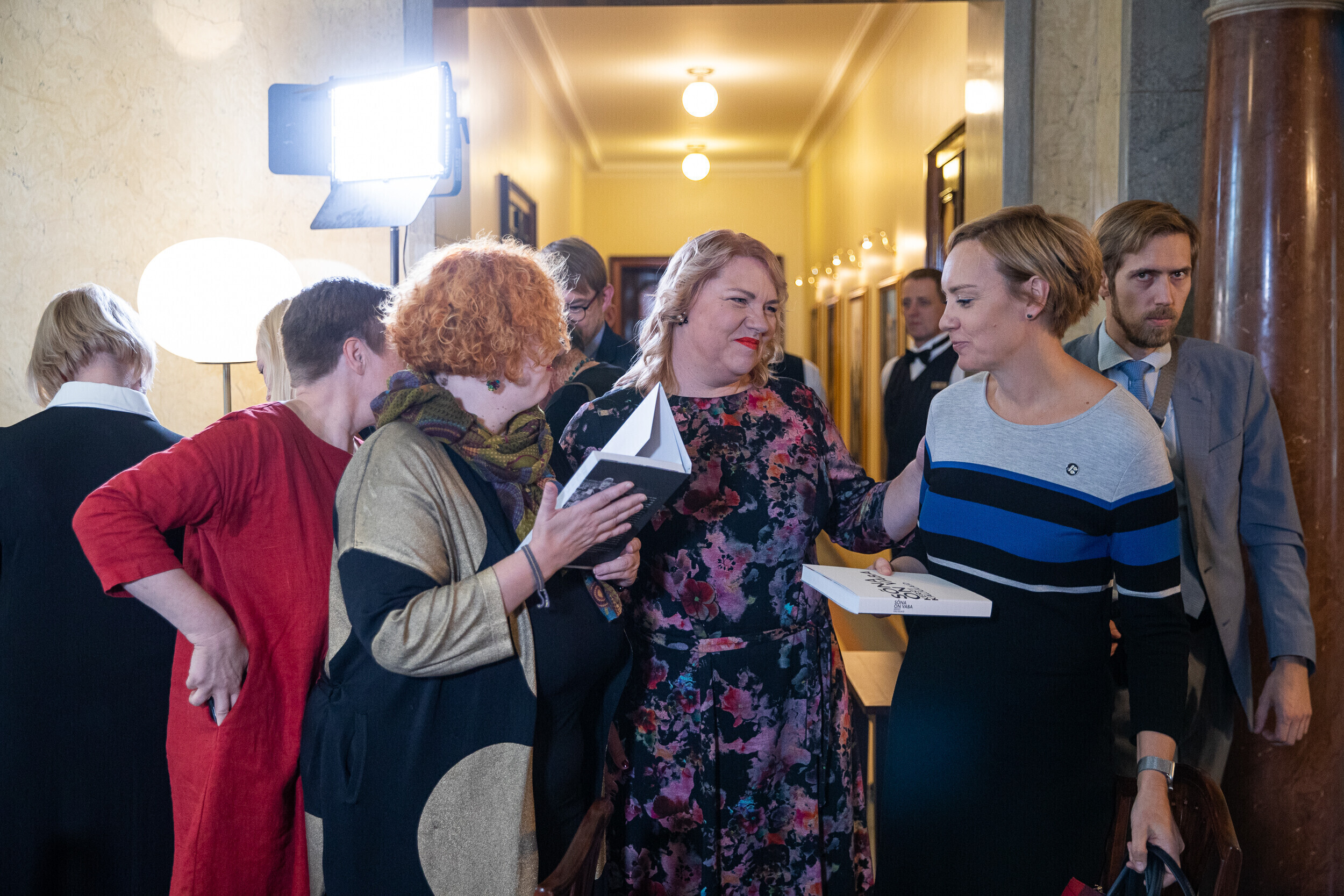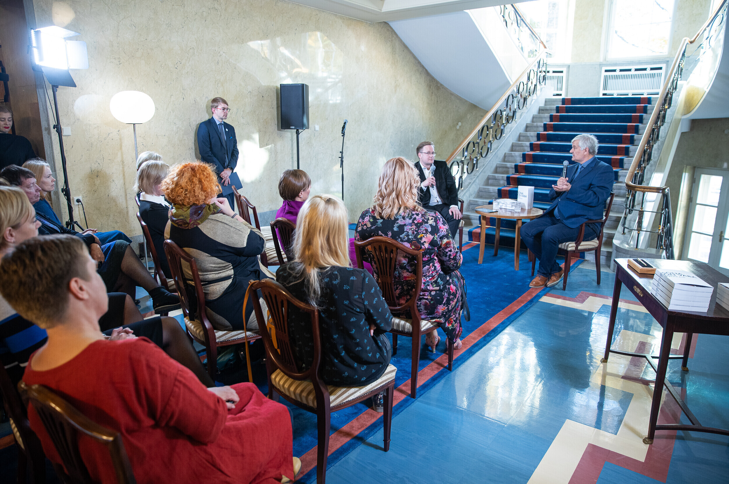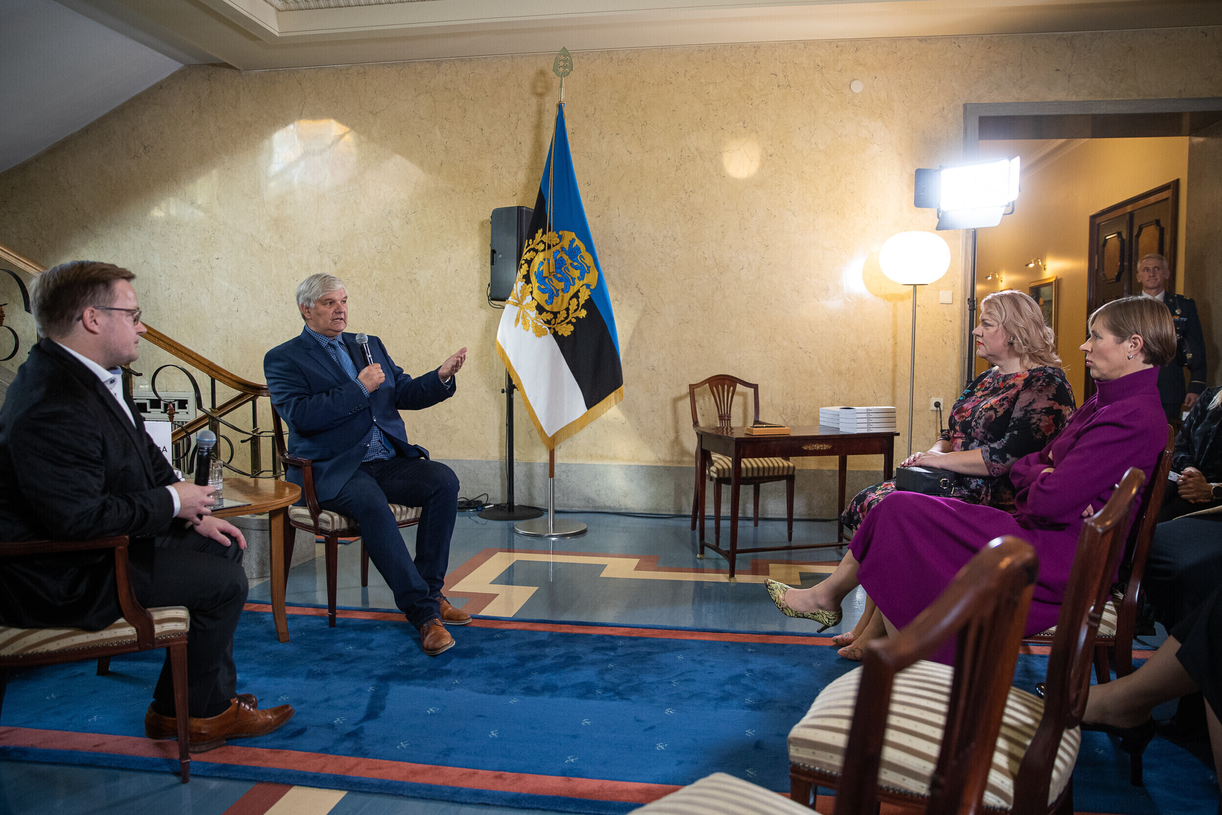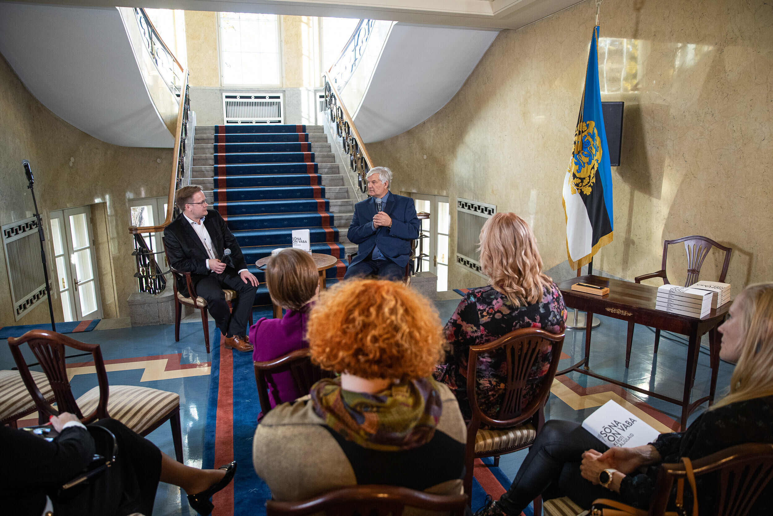 Перед представлением книги президент Кальюлайд обсудила свободу и силу слова с главным редактором Eesti Ekspress Эриком Моора и экспертом по коммуникации Раулем Ребане.