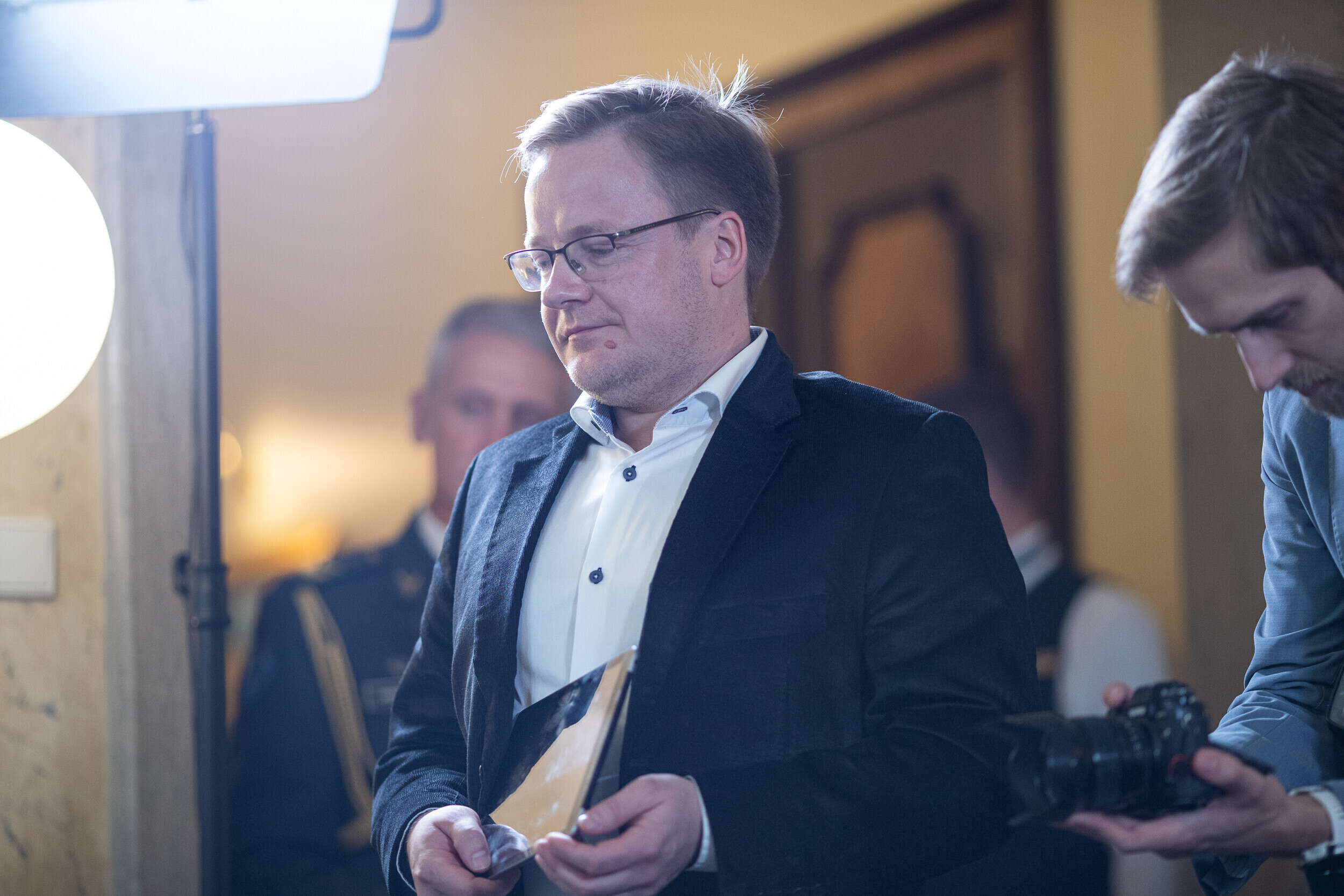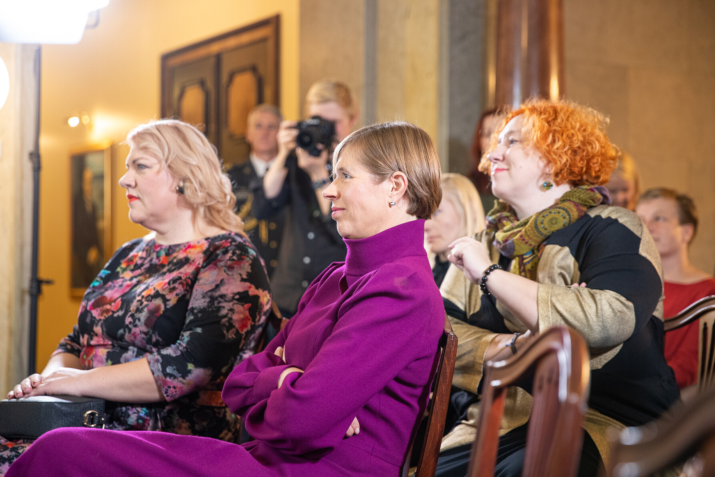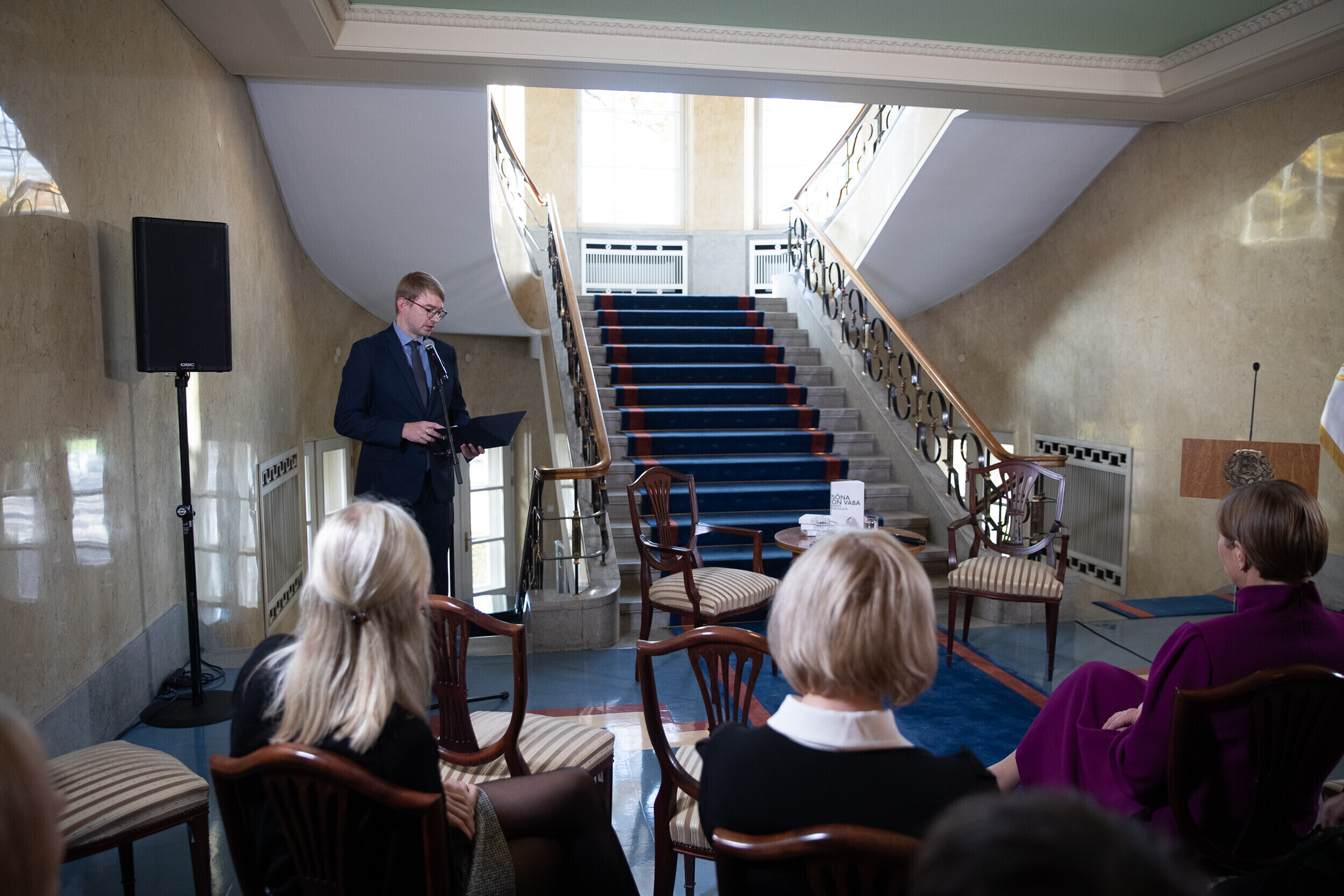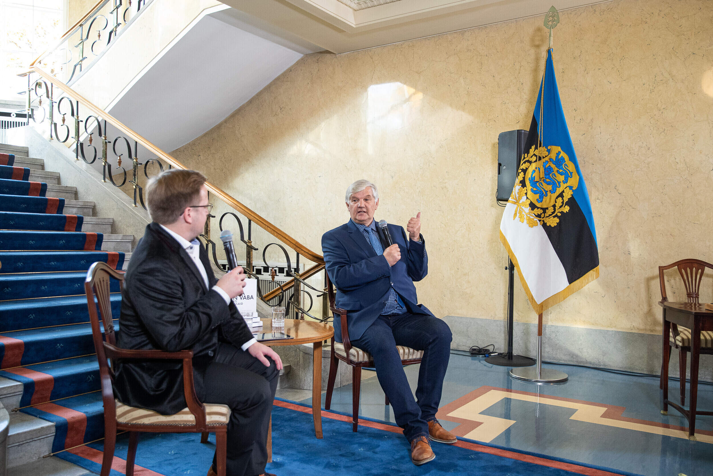 Перед представлением книги президент Кальюлайд обсудила свободу и силу слова с главным редактором Eesti Ekspress Эриком Моора и экспертом по коммуникации Раулем Ребане.