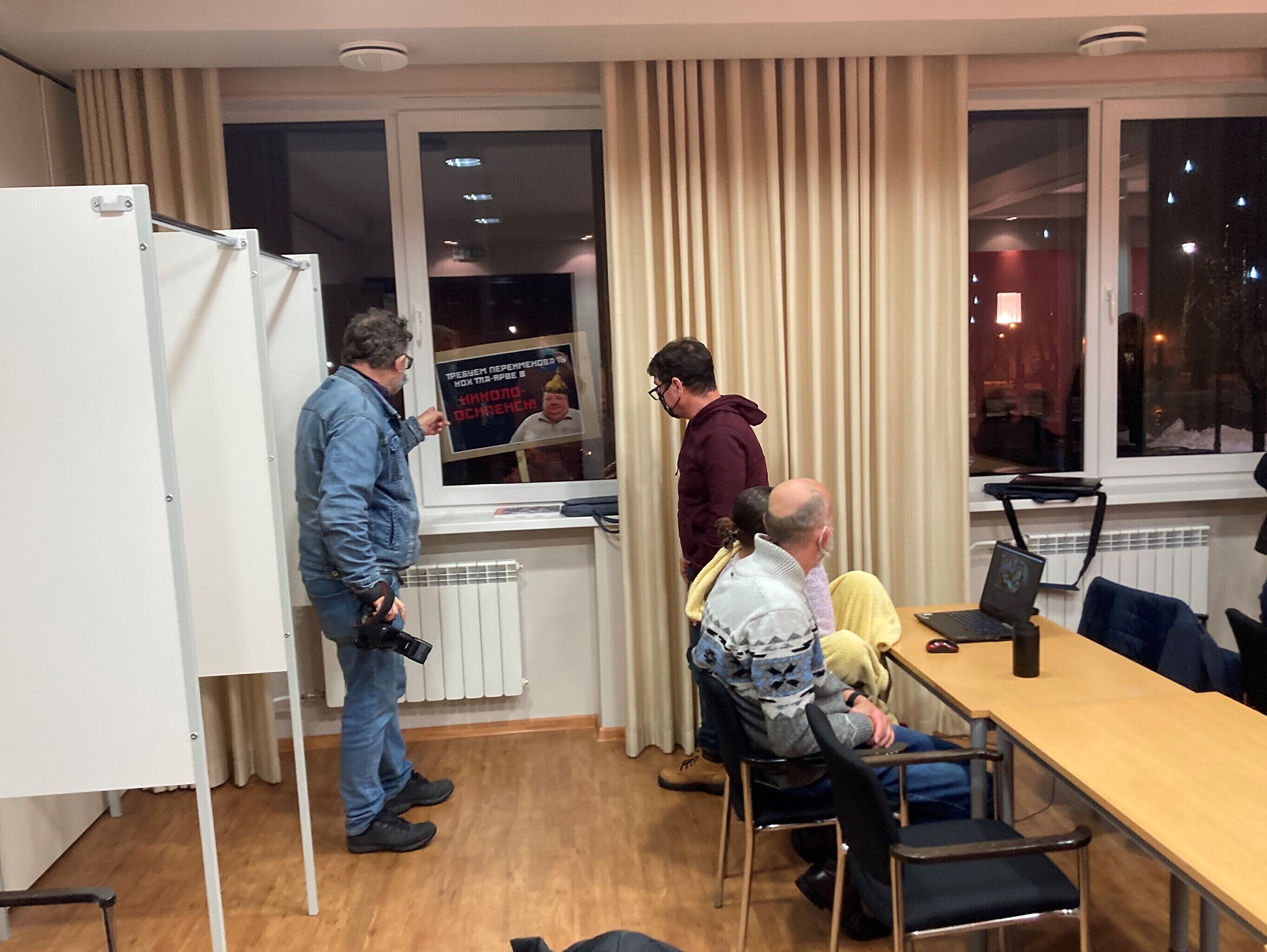 Тогда за окнами здания появились высмеивающие городские власти плакаты и председатель горсобрания Тийт Лиллеметс начал задергивать шторы. На нескольких плакатах также фигурировал бизнесмен Николай Осипенко, которому принадлежат оказывающие коммунальные услуги фирмы в Ида-Вирумаа.