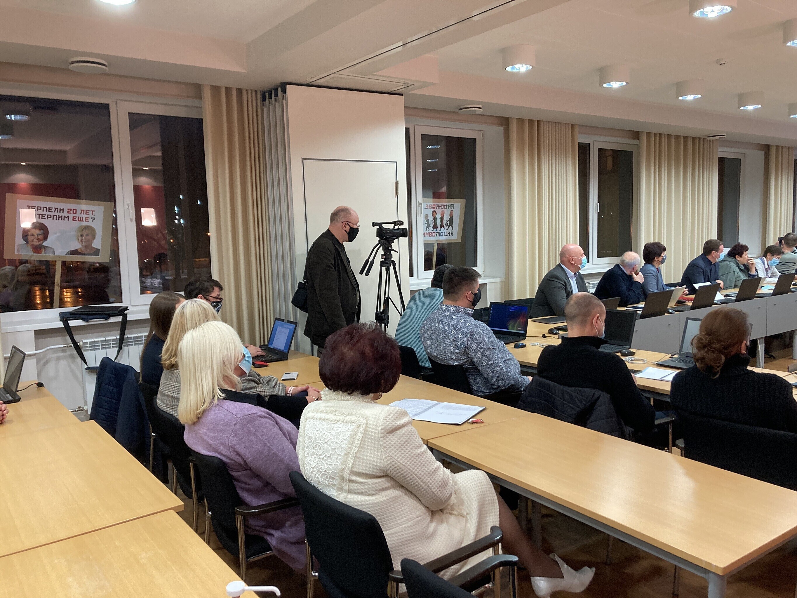 ФОТО: новую горуправу Кохтла-Ярве избирали на фоне протестных плакатов с карикатурами