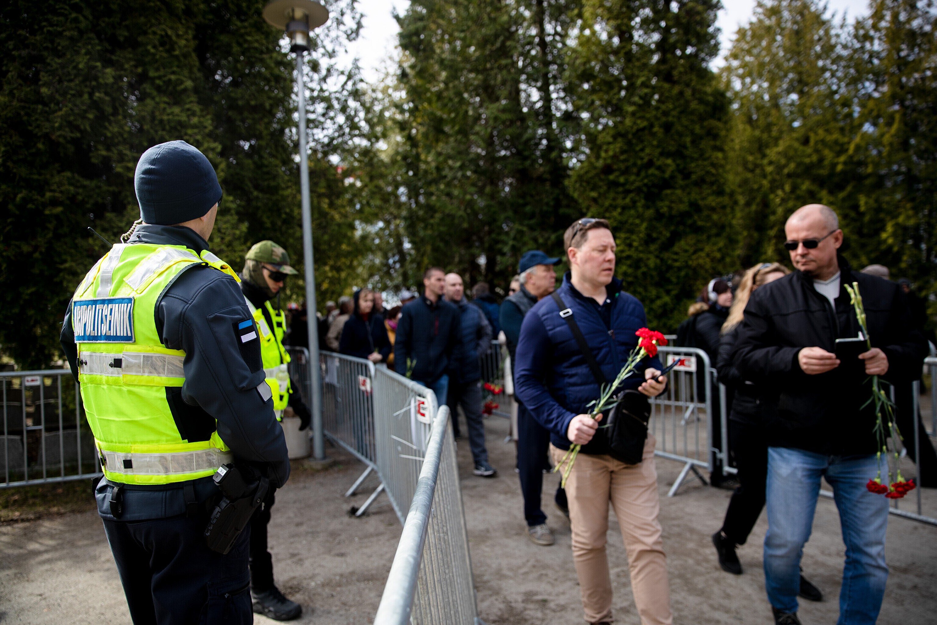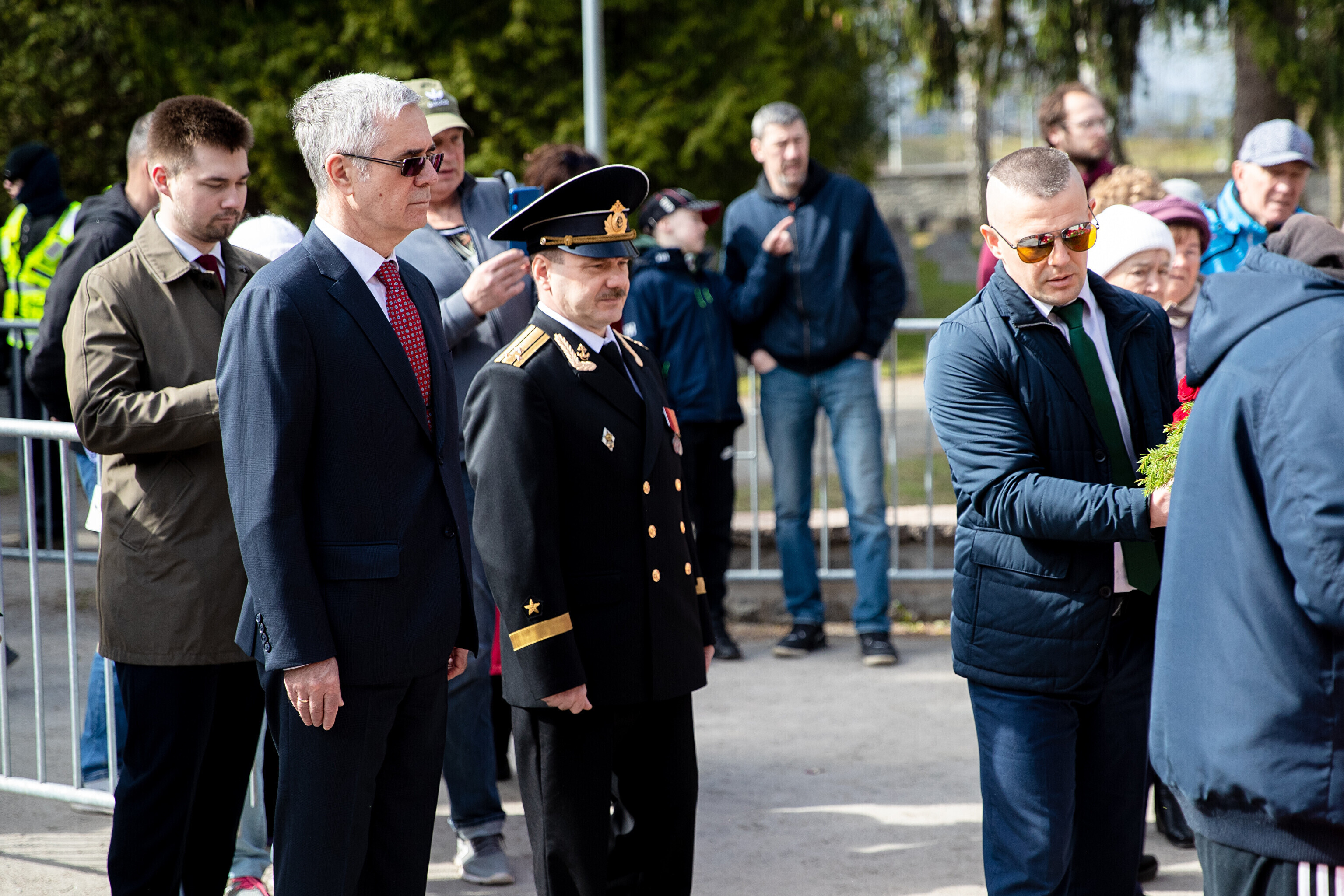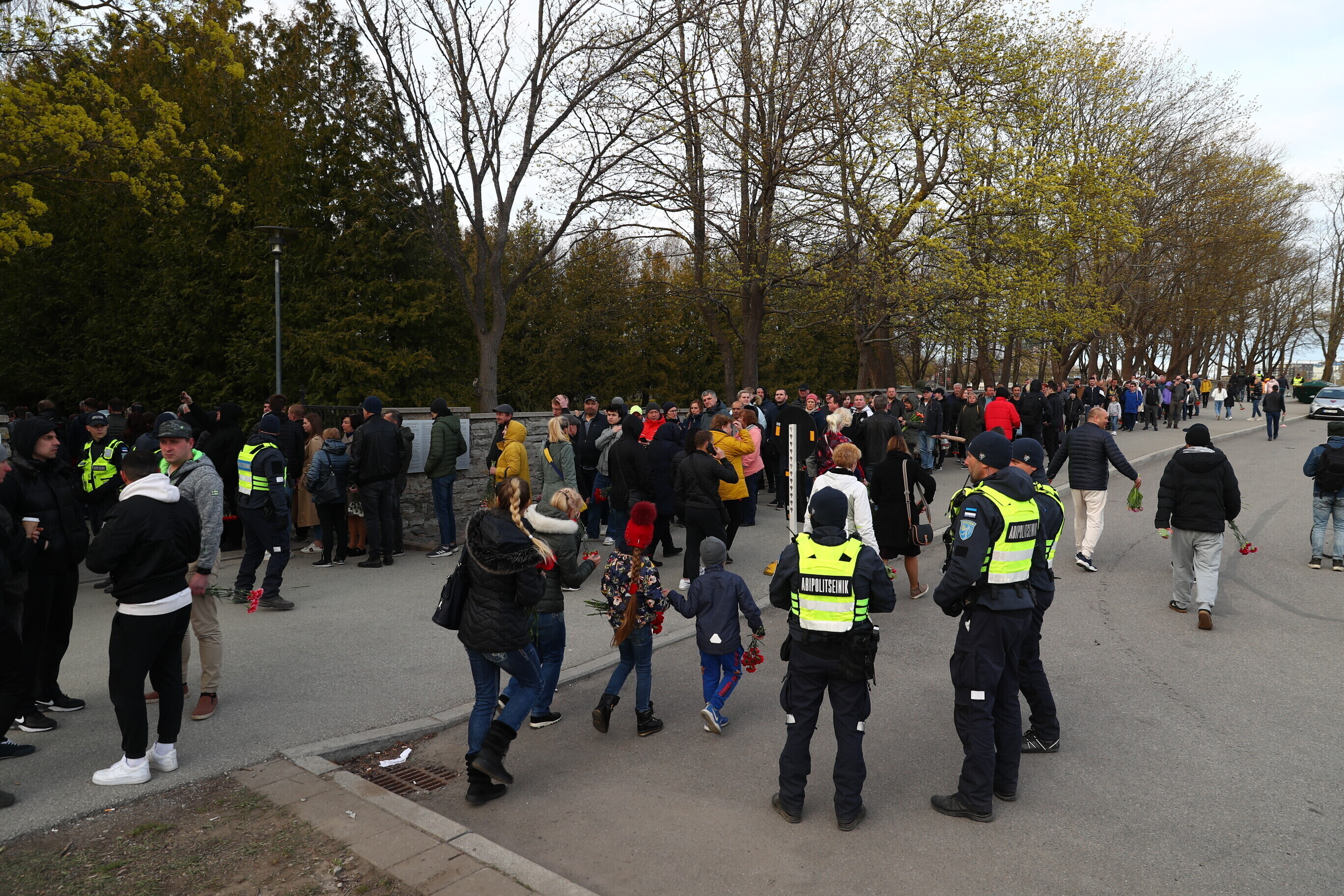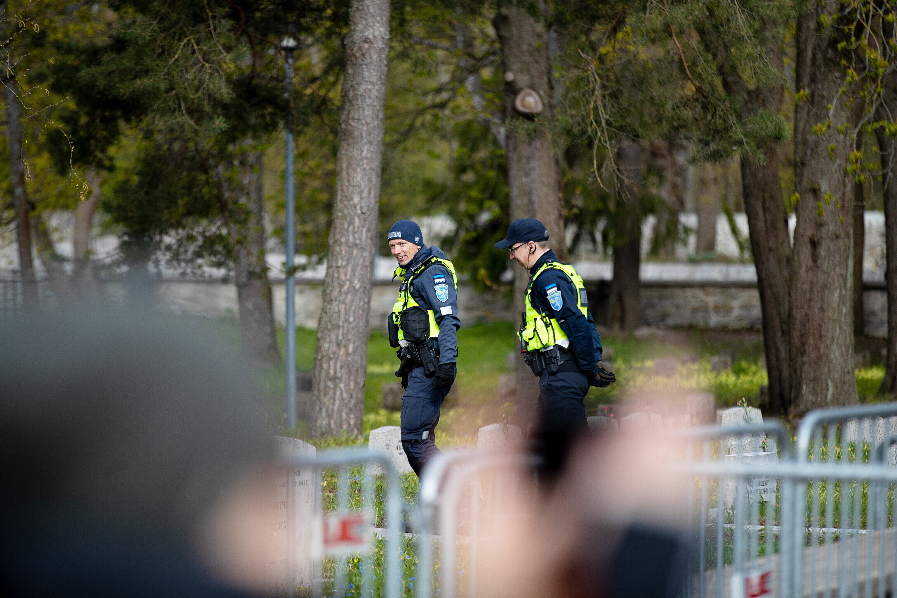 Капитан патрульной службы Ида-Харьюского отделения полиции Вячеслав Шаталов рассказал радионовостям ERR об обстановке на военном кладбище по состоянию на 14:30.