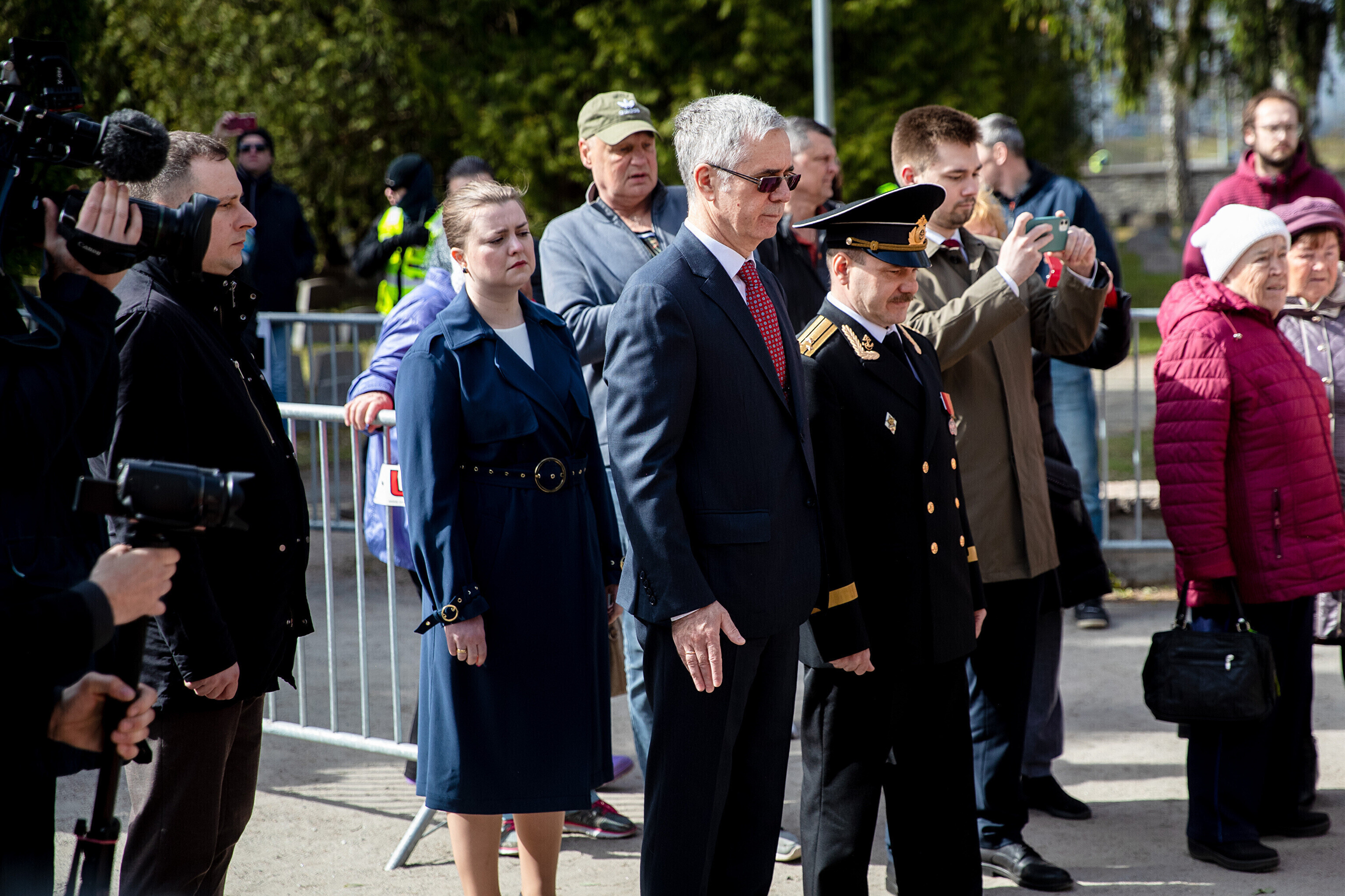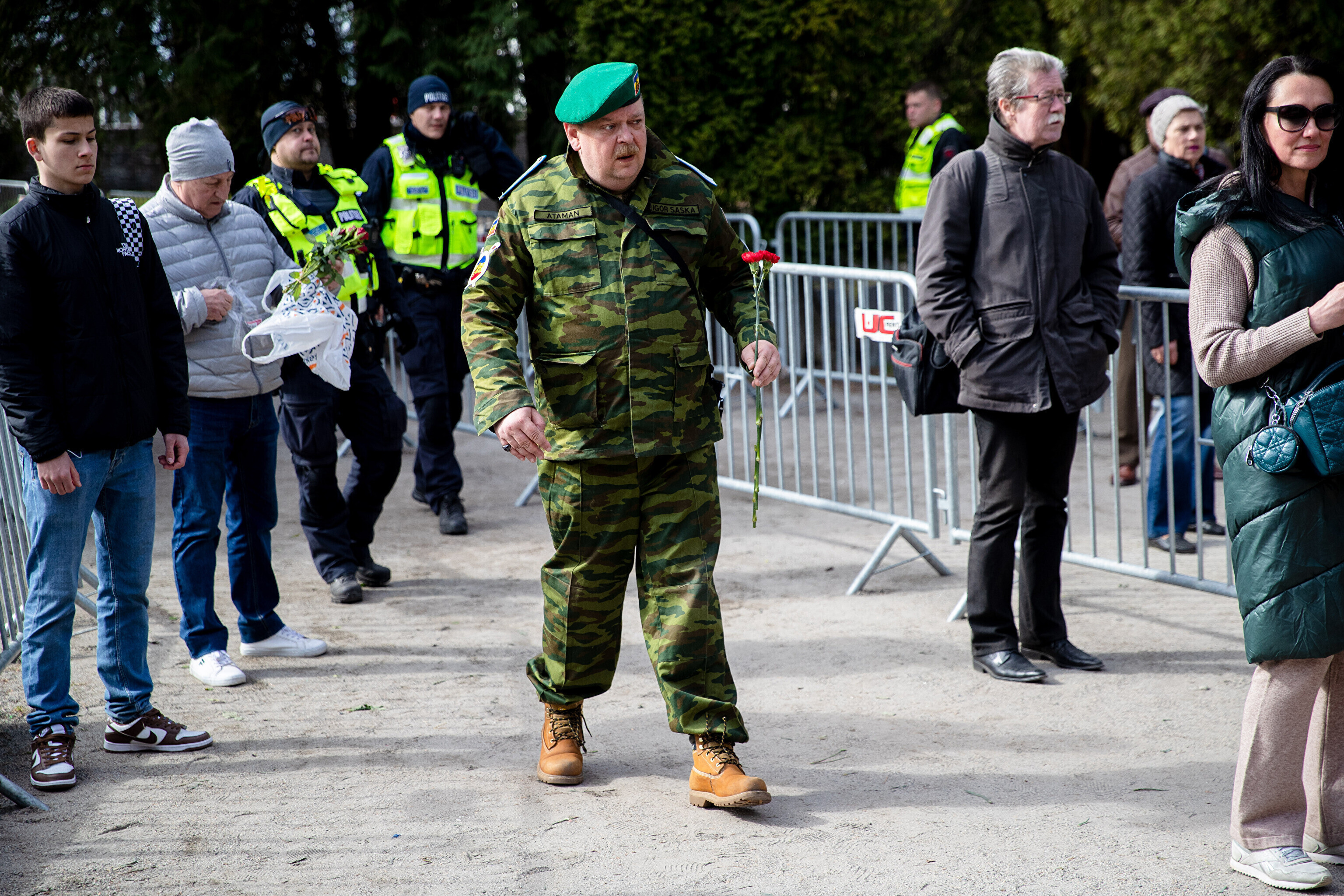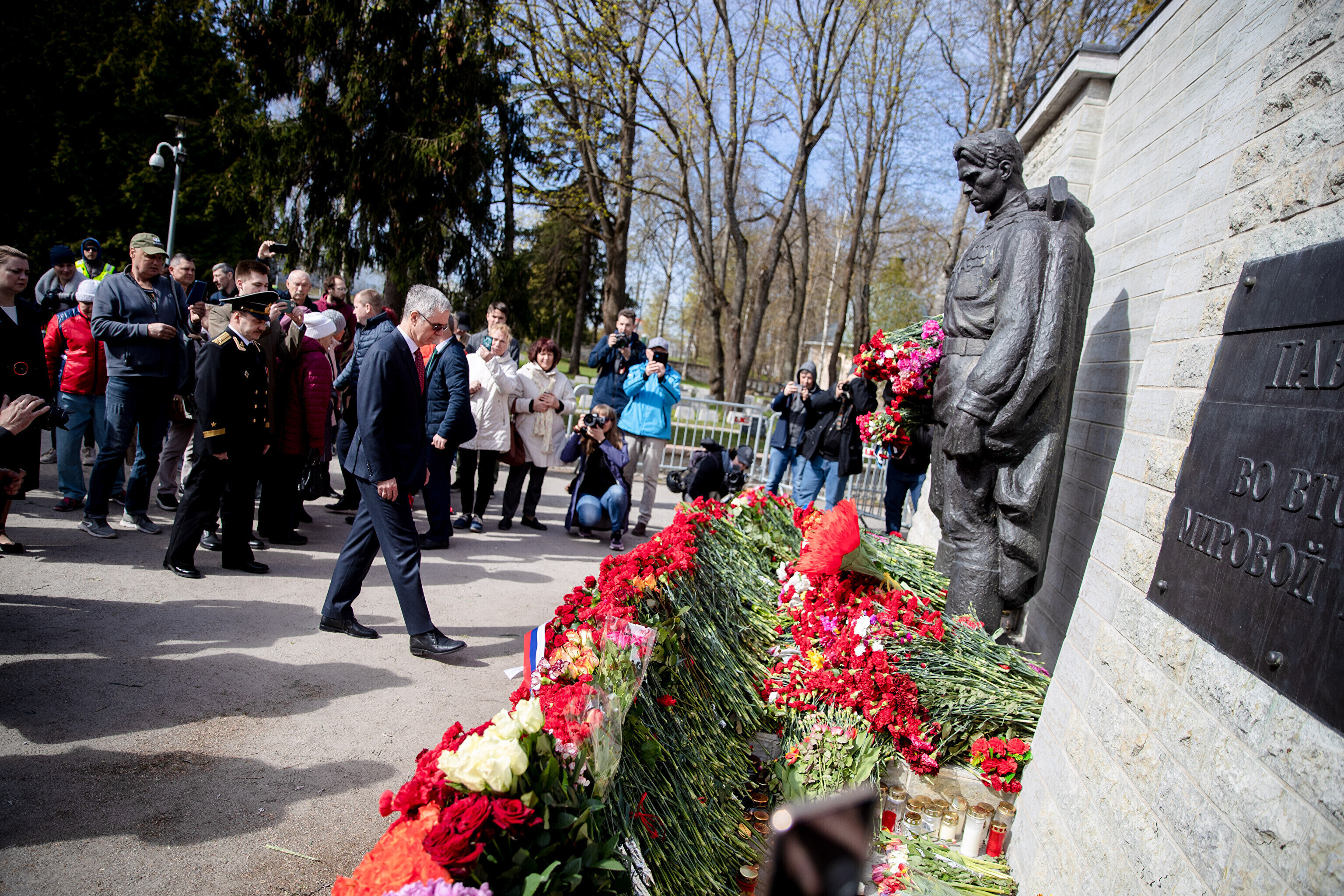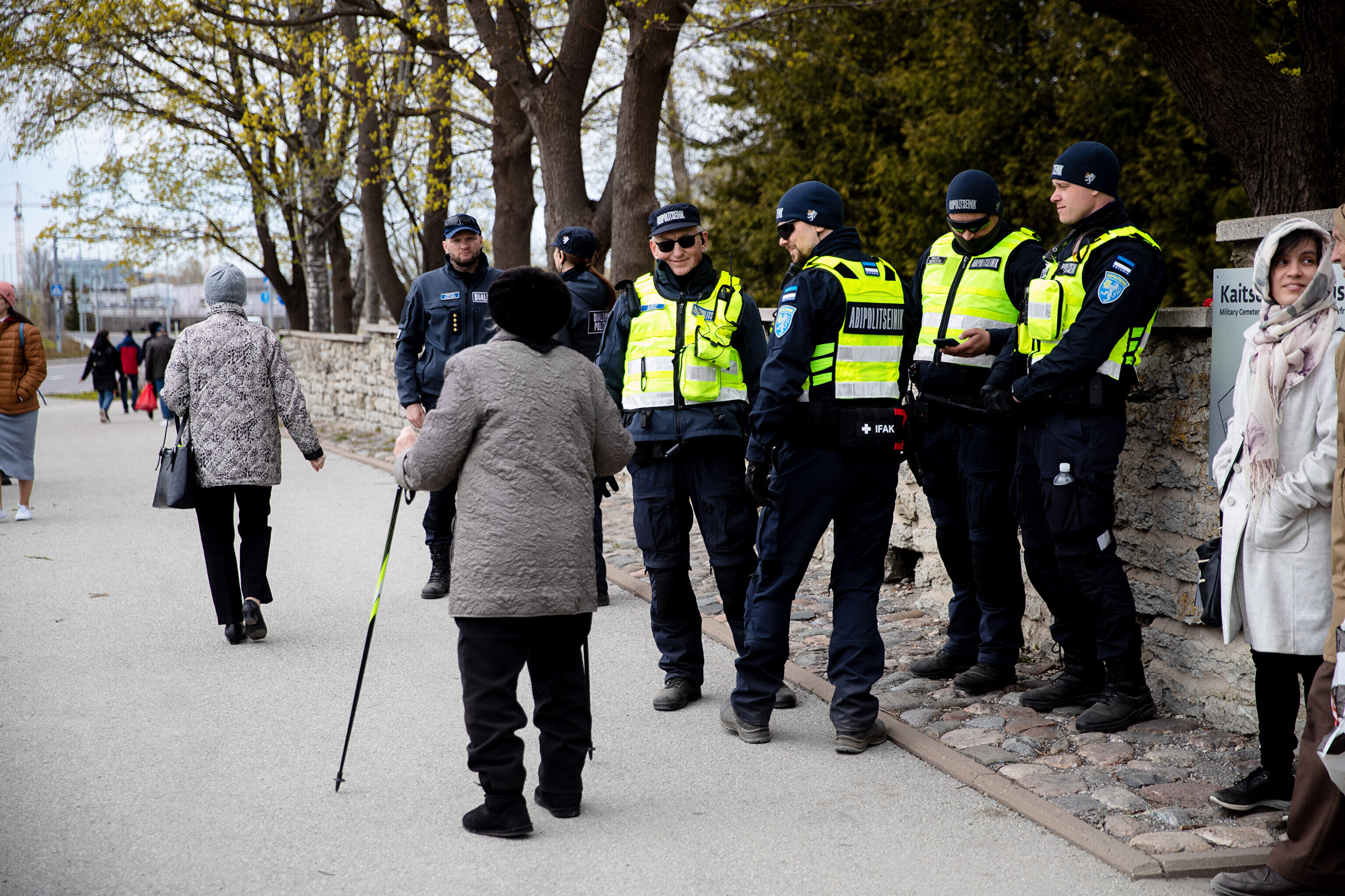 Капитан патрульной службы Ида-Харьюского отделения полиции Вячеслав Шаталов рассказал радионовостям ERR об обстановке на военном кладбище по состоянию на 14:30.