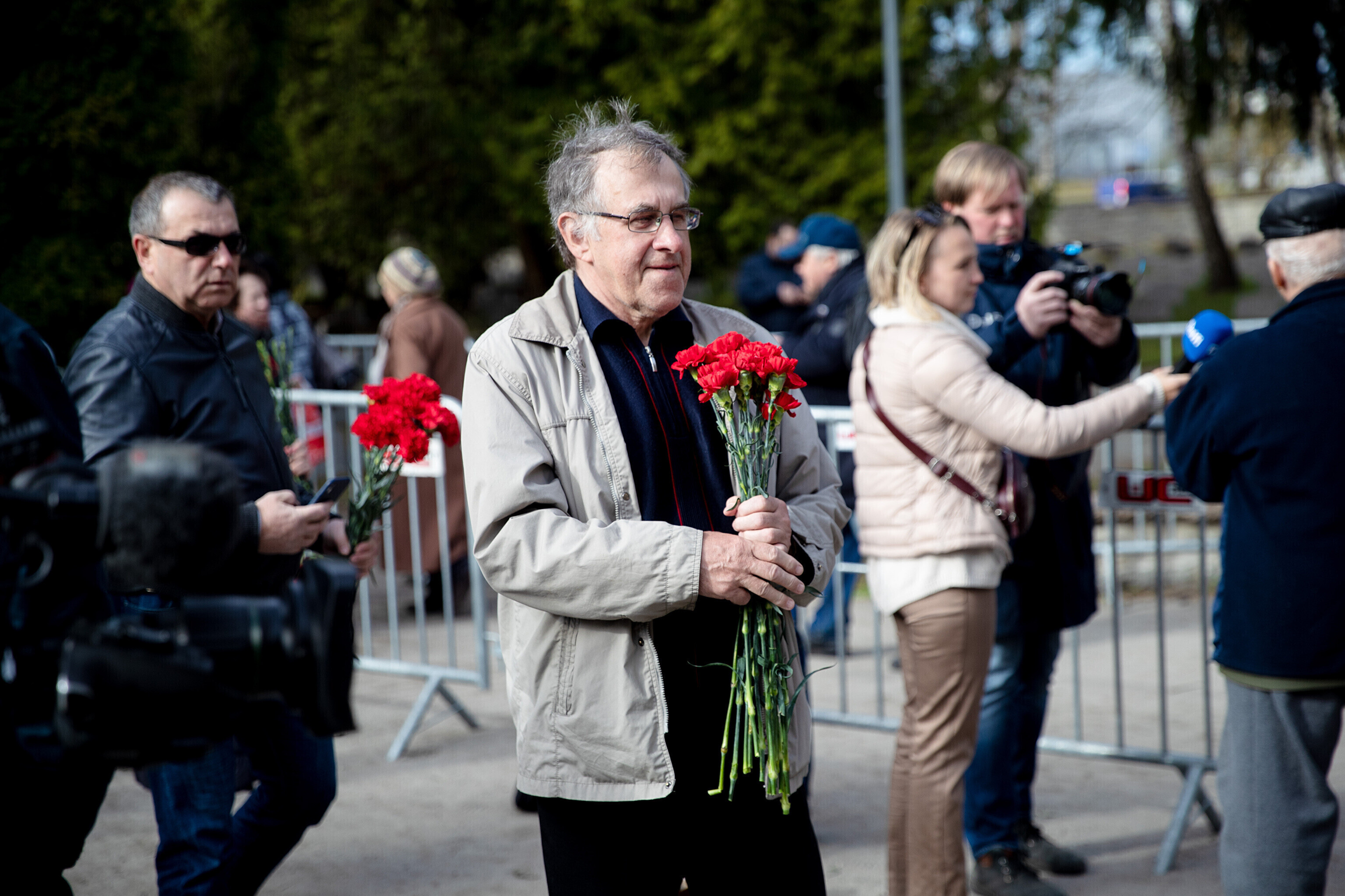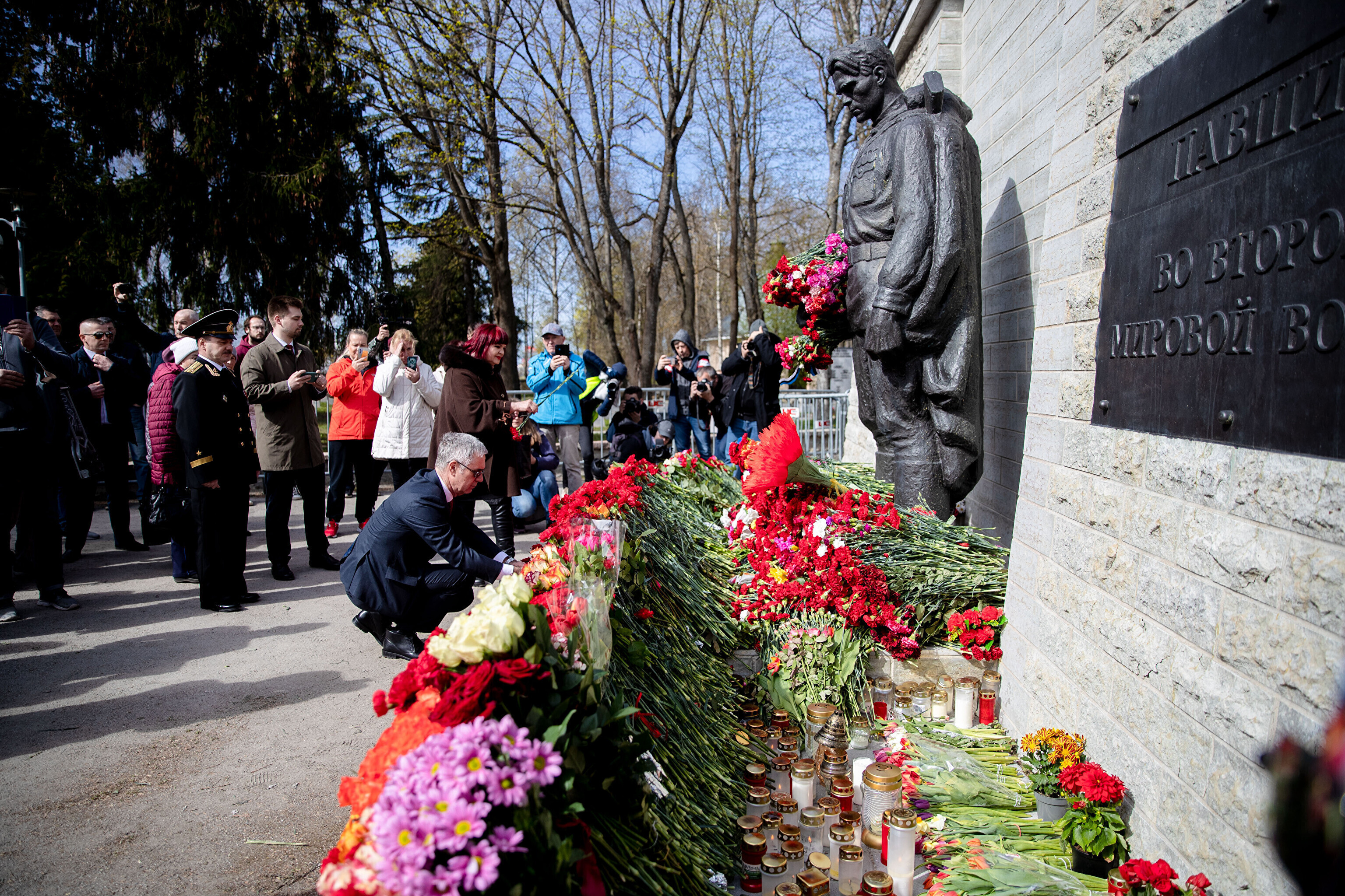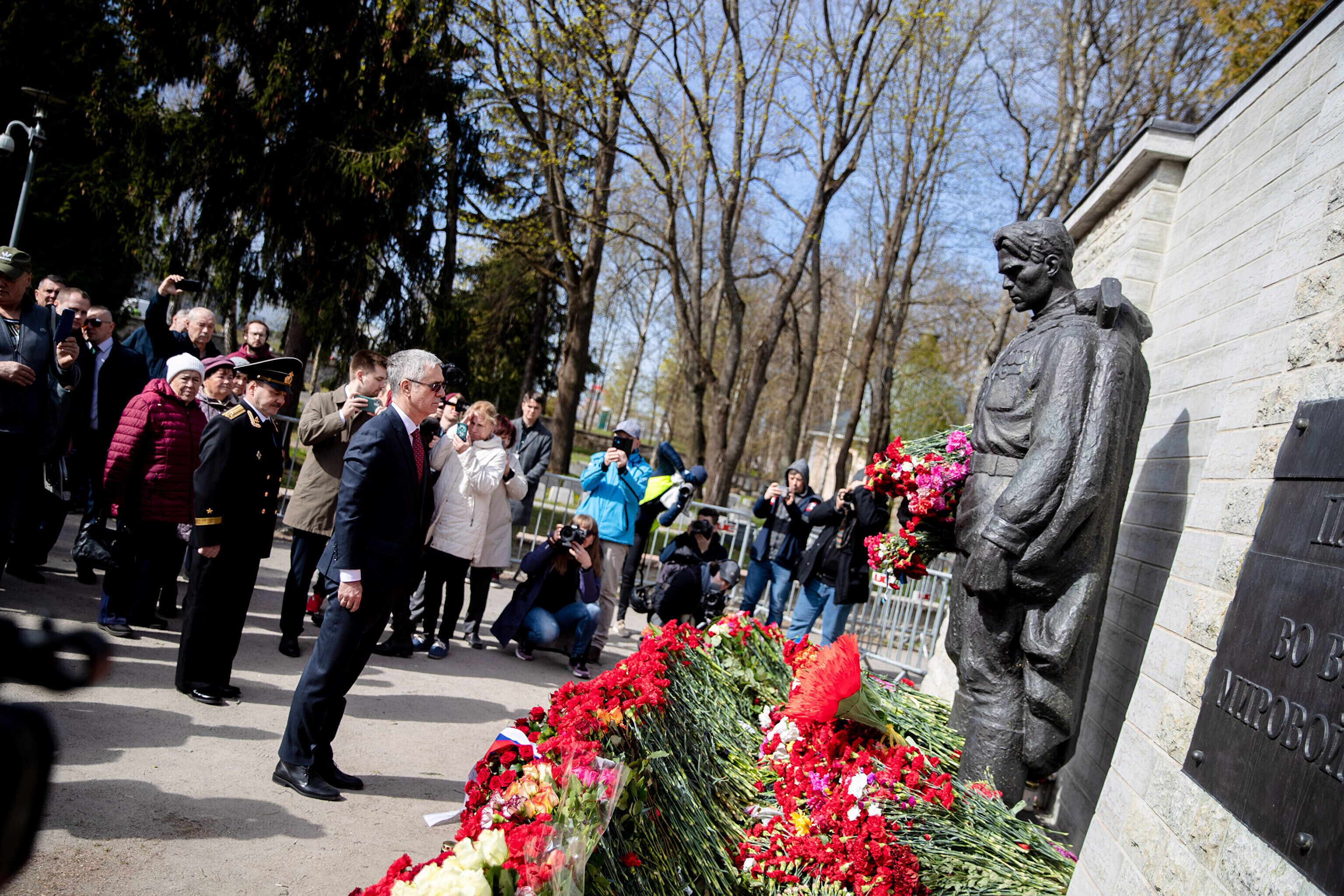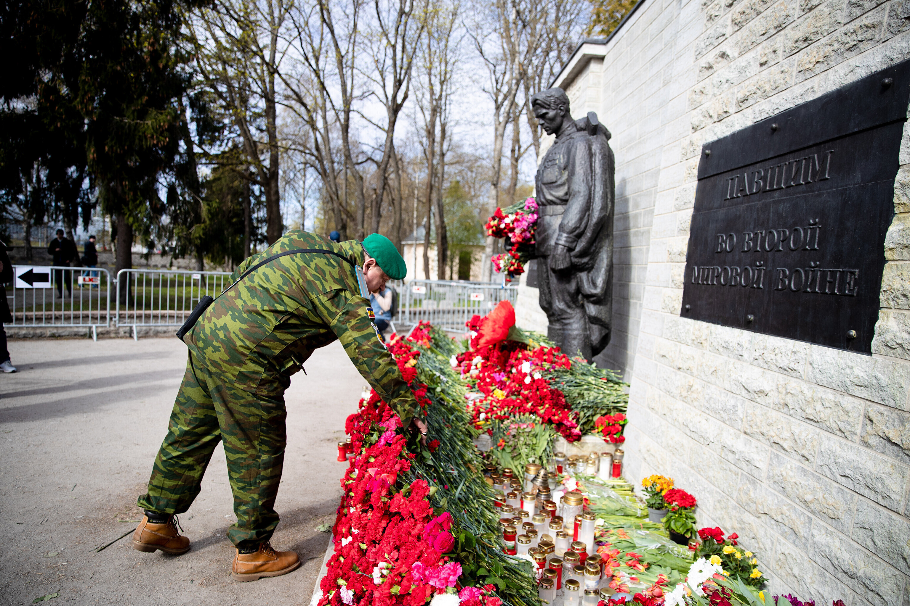 Капитан патрульной службы Ида-Харьюского отделения полиции Вячеслав Шаталов рассказал радионовостям ERR об обстановке на военном кладбище по состоянию на 14:30.