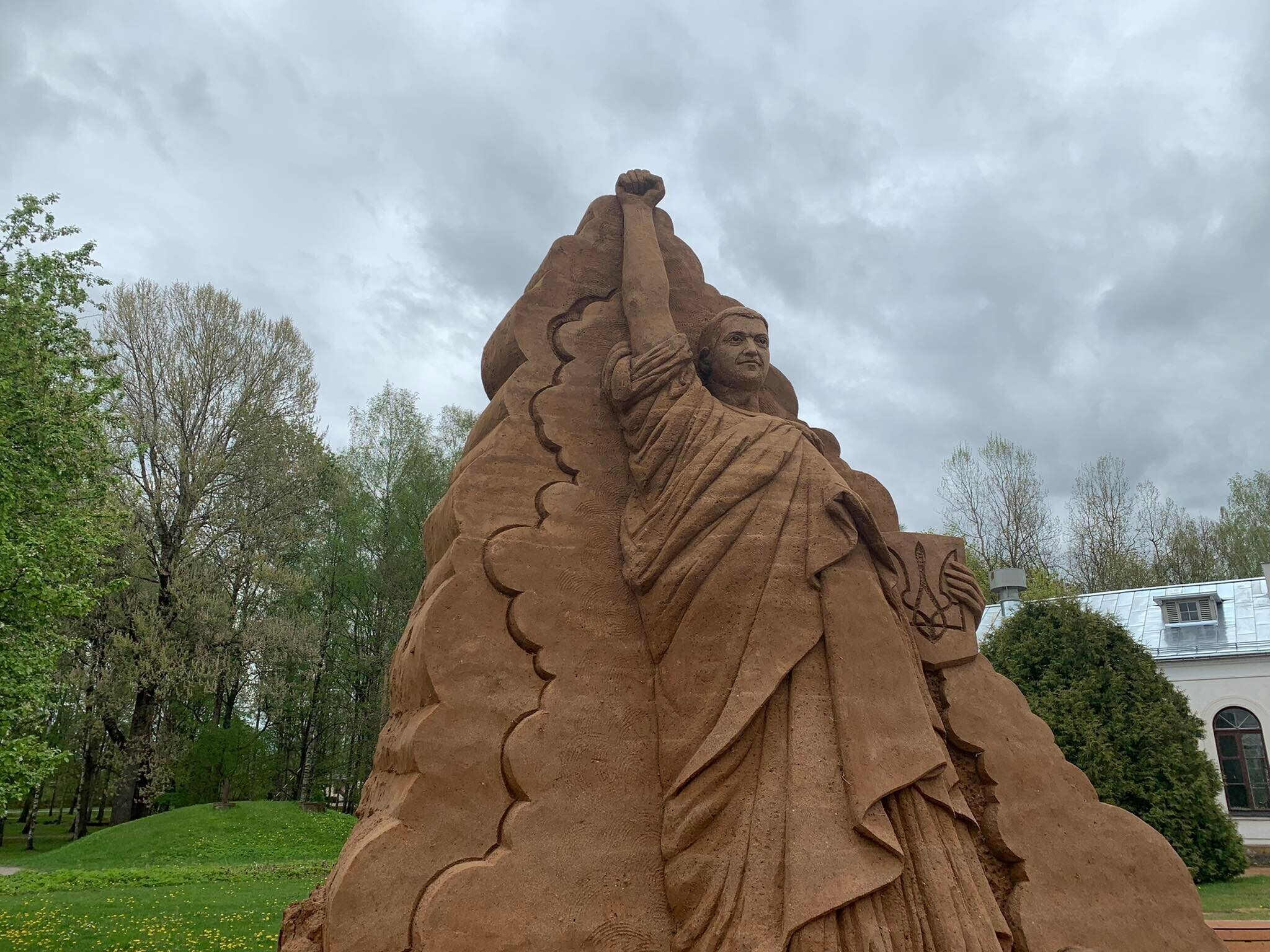В городе Тырва (Валгаский уезд) возвели пятиметровую скульптуру из песка, которая изображает президента Украины Владимира Зеленского в виде нью-йоркской Статуи Свободы.