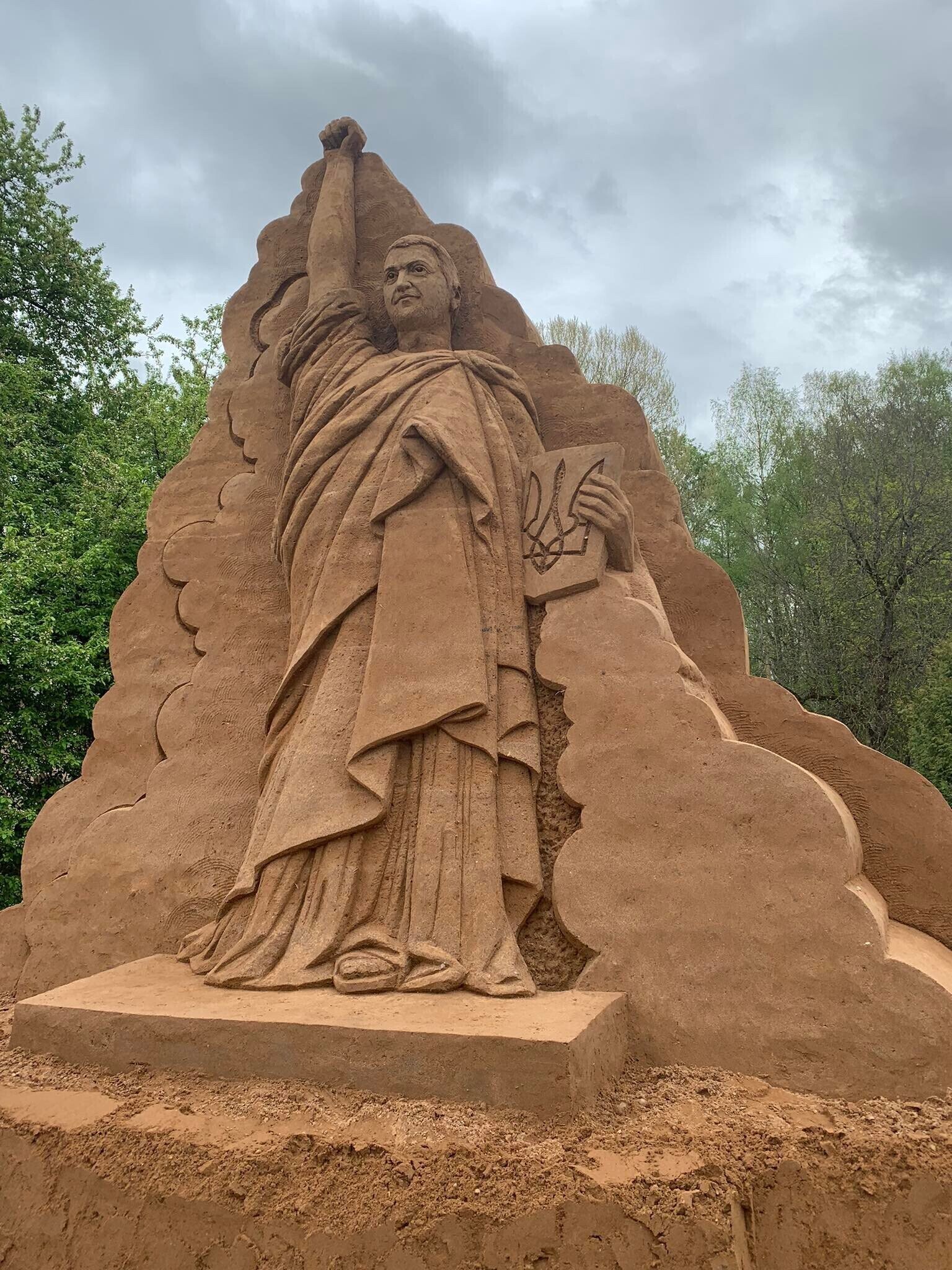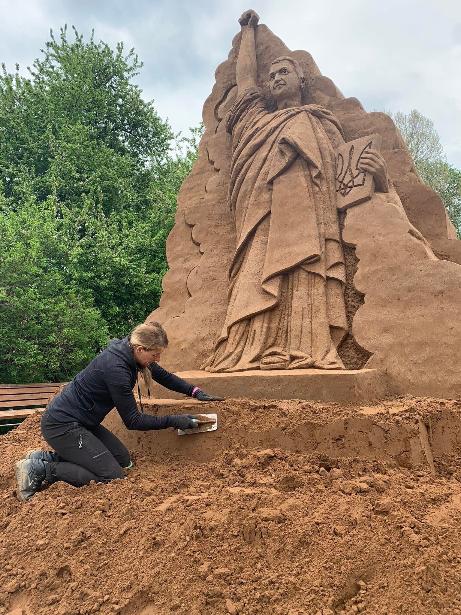 На строительство статуи Владимира Зеленского на новой центральной площади Тырва ушло 72 тонны песка.