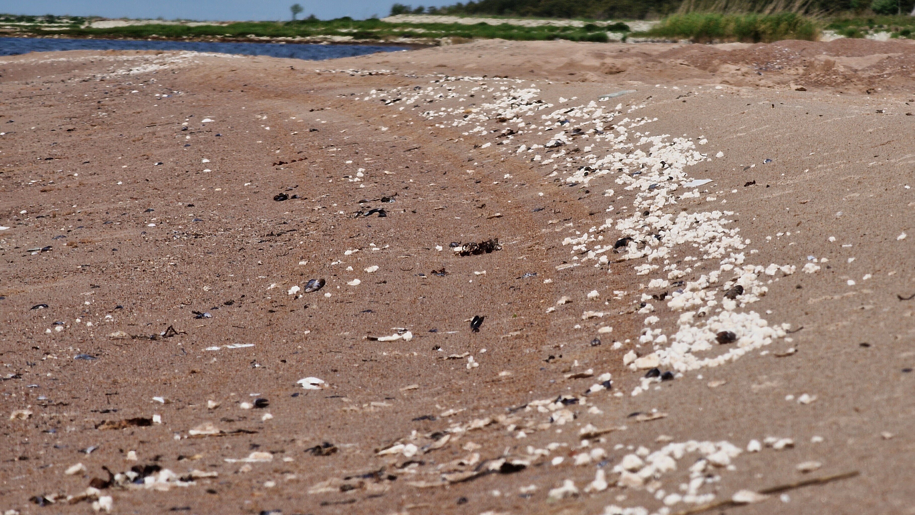 На прошлой неделе на побережье северо-западной части острова Сааремаа были замечены небольшие куски светлого материала диаметром около сантиметра.