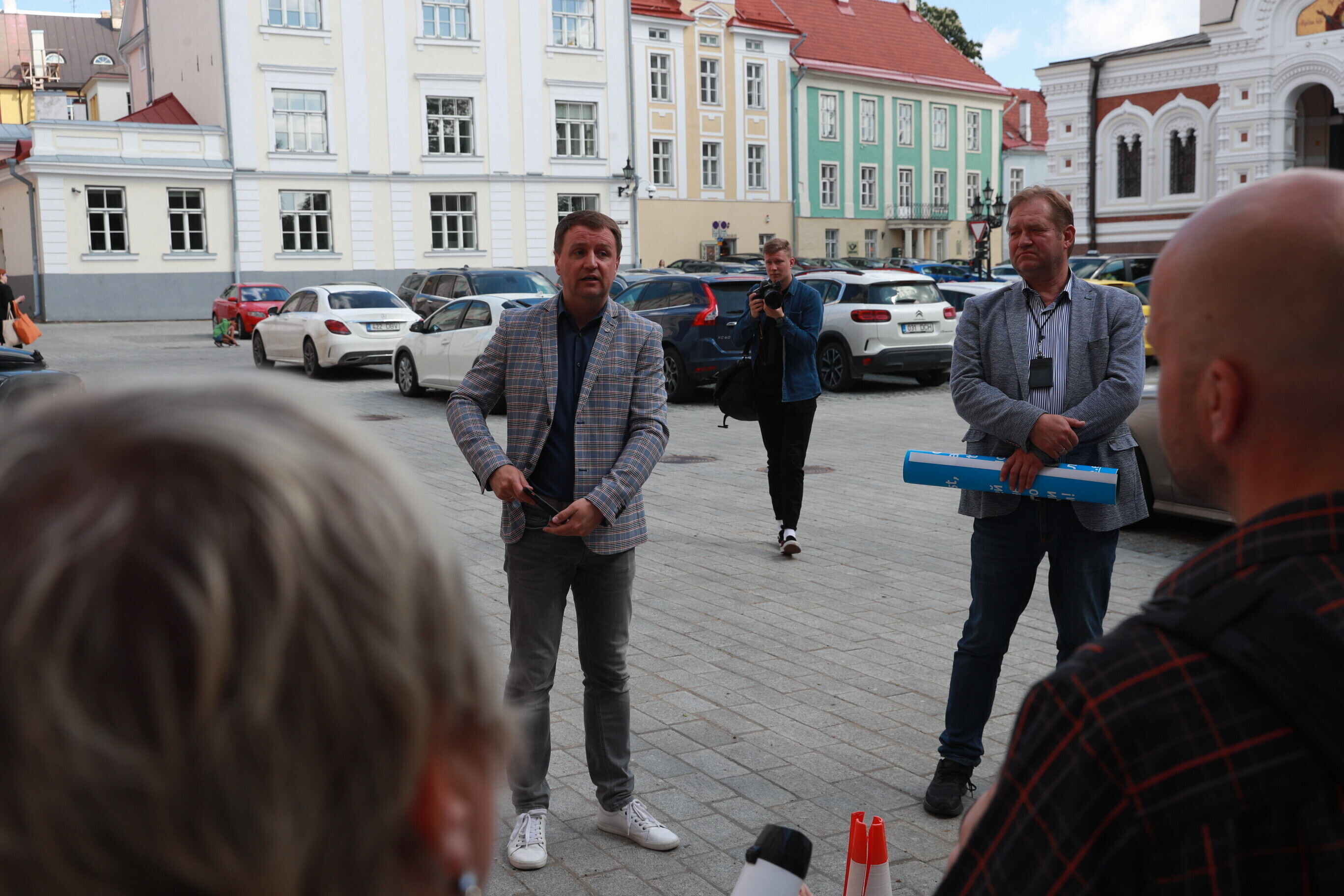 К участникам пикета вышли депутаты Рийгикогу от Социал-демократической партии Эдуард Одинец и Ивари Падар.