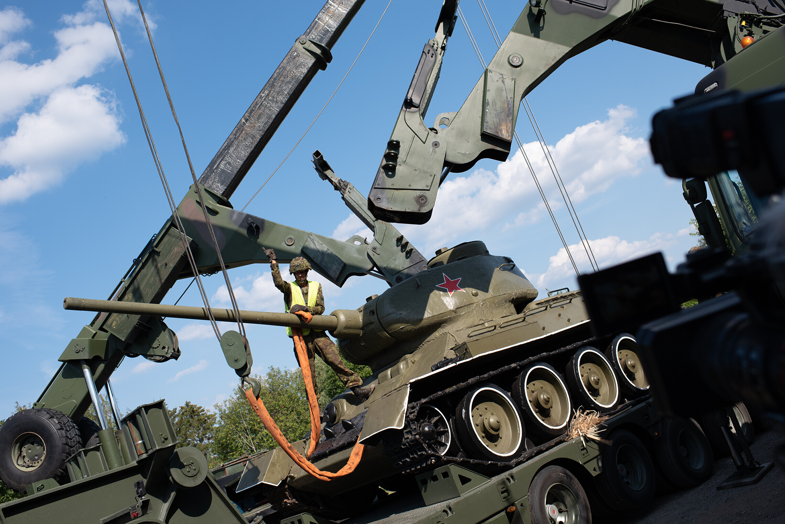 Во вторник утром правительство приняло решение о переносе советских военных памятников из общественного пространства Нарвы. Монумент "Танк Т-34" было решено отвезти в Эстонский военный музей, который занимается сохранением, исследованием и представлением военно-исторического и культурного наследия.