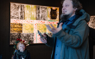"В этом совершенно уникальном месте - в доме, которому 400 лет - соединились два искусства - латышское искусство со своими традициями и символами и эстонское искусство. Тауно Кангро представил на этой выставке коллекцию, которая посвящена эстонскому эпосу, а