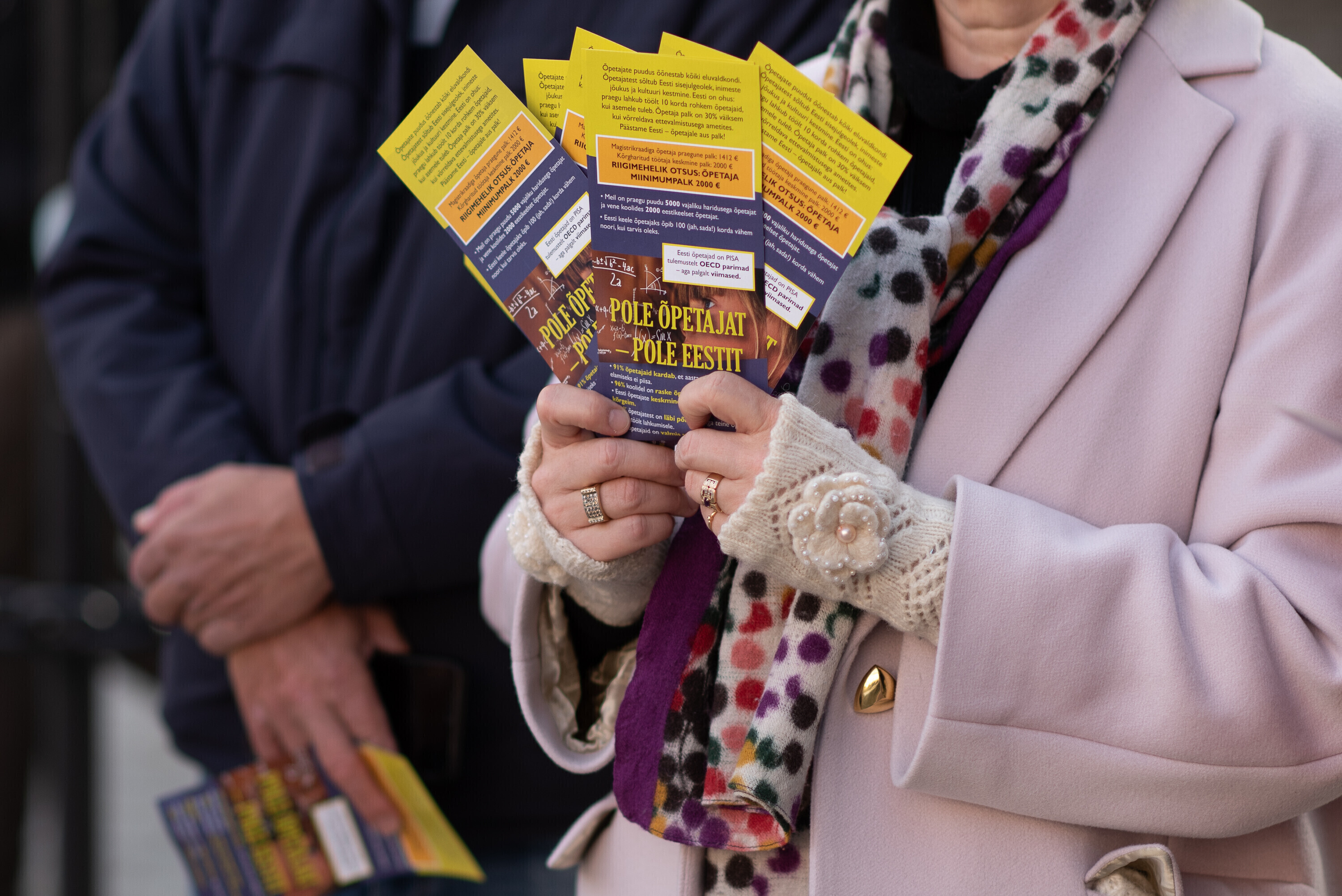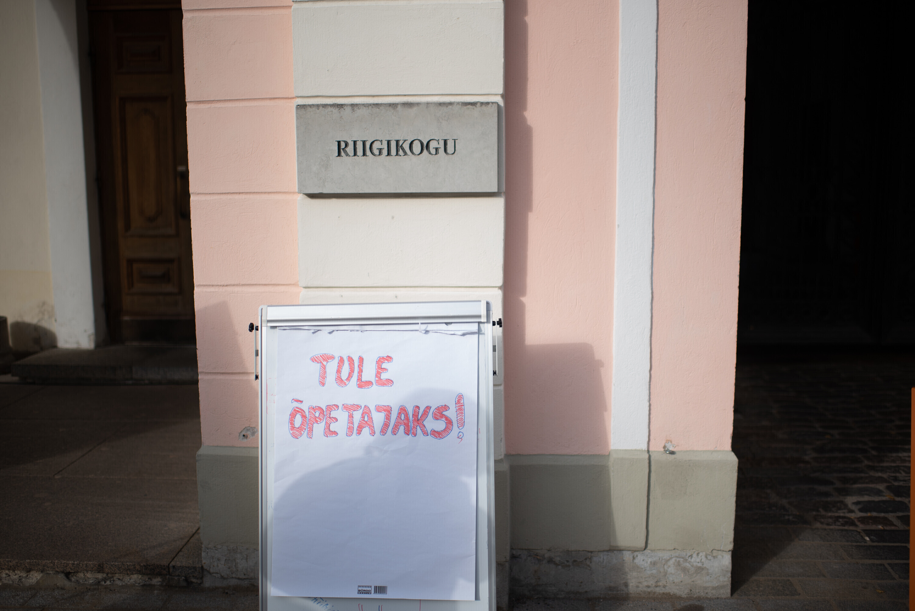 Союз работников сферы образования во вторник, 13 сентября, организовал перед зданием Рийгикогу на Тоомпеа акцию, чтобы привлечь внимание к проблеме низких зарплат учителей и их нехватке.