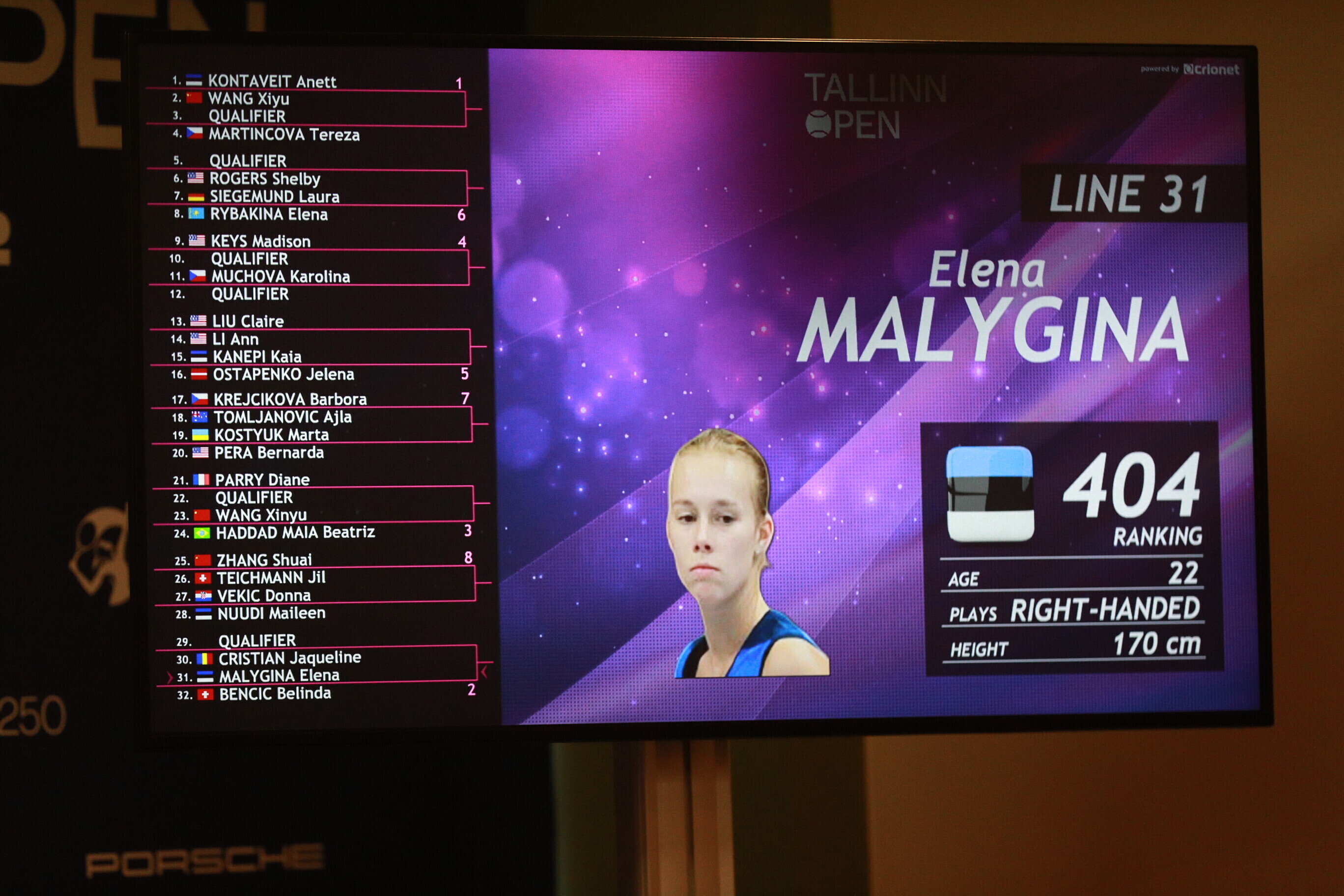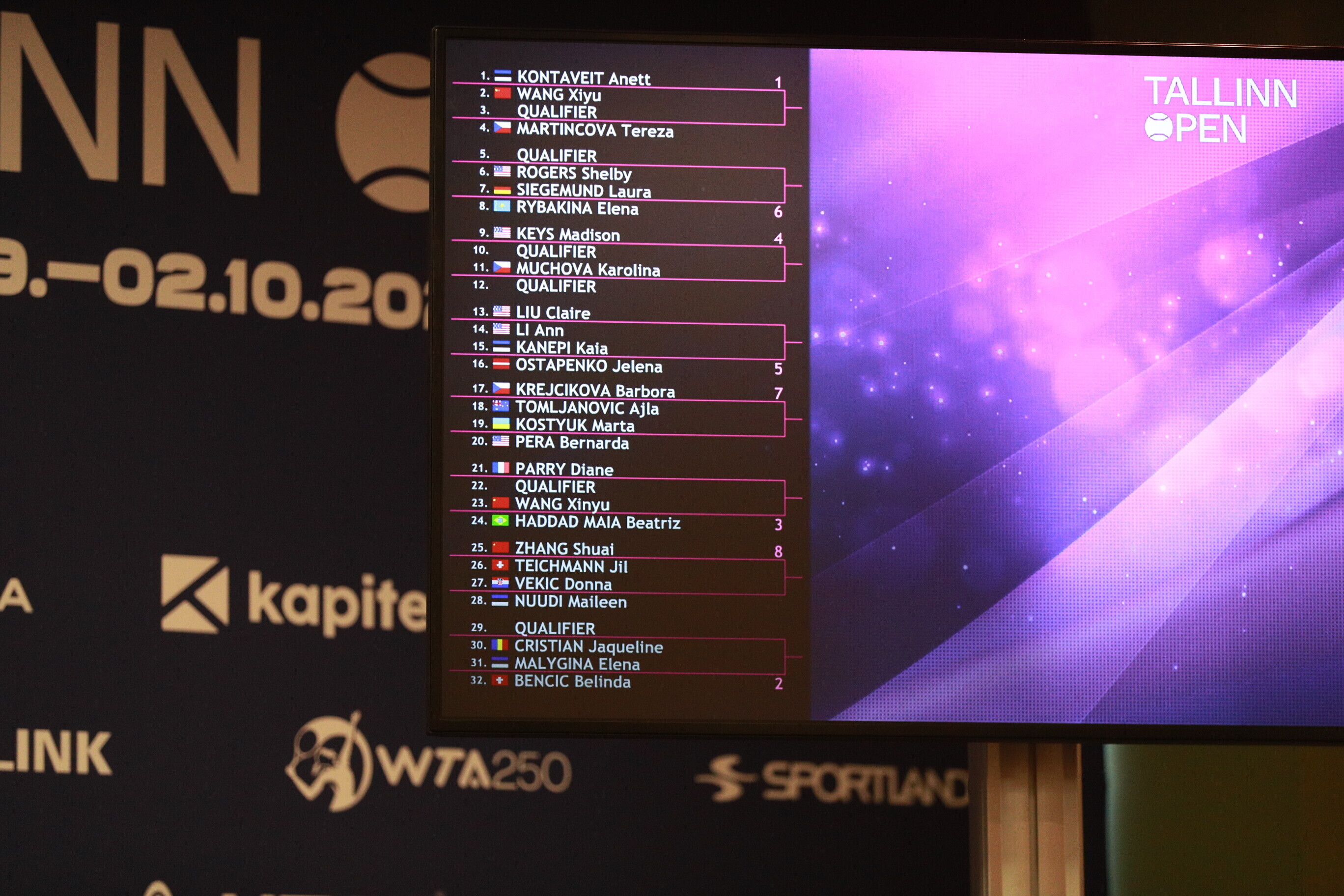 Получившая на турнире первый номер посева лидер женского тенниса Эстонии Анетт Контавейт, занимающая третье место в мировом рейтинге, в первом круге сыграет с 58-й ракеткой мира, китаянкой Ван Сиюй.