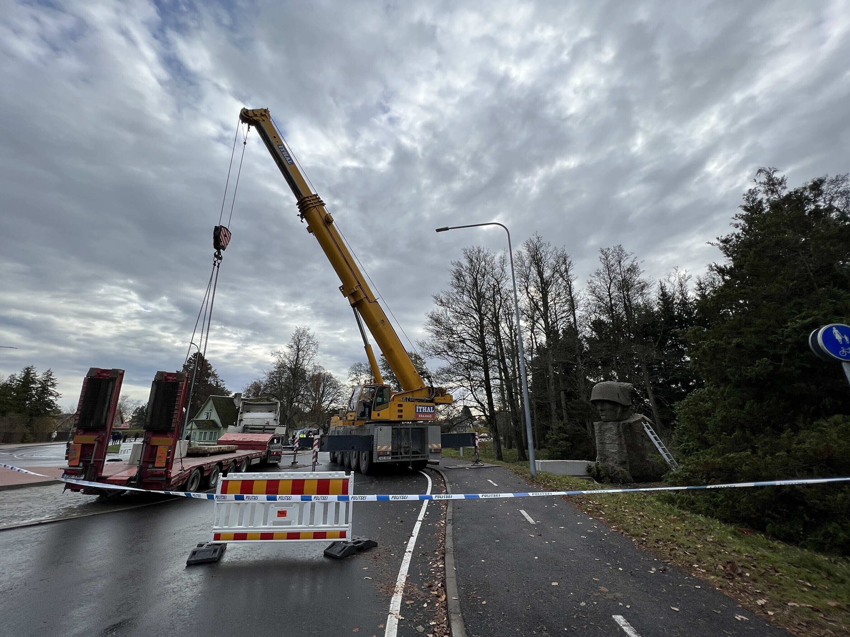 Перевезены как каменная голова солдата весом в 9 тонн так и 20-тонный постамент, передает "Актуальная камера".