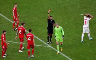 В конце первого тайма за десять минут англичане забили три гола - отличились Джуд Беллингем, Букайо Сака и Рахим Стерлинг.