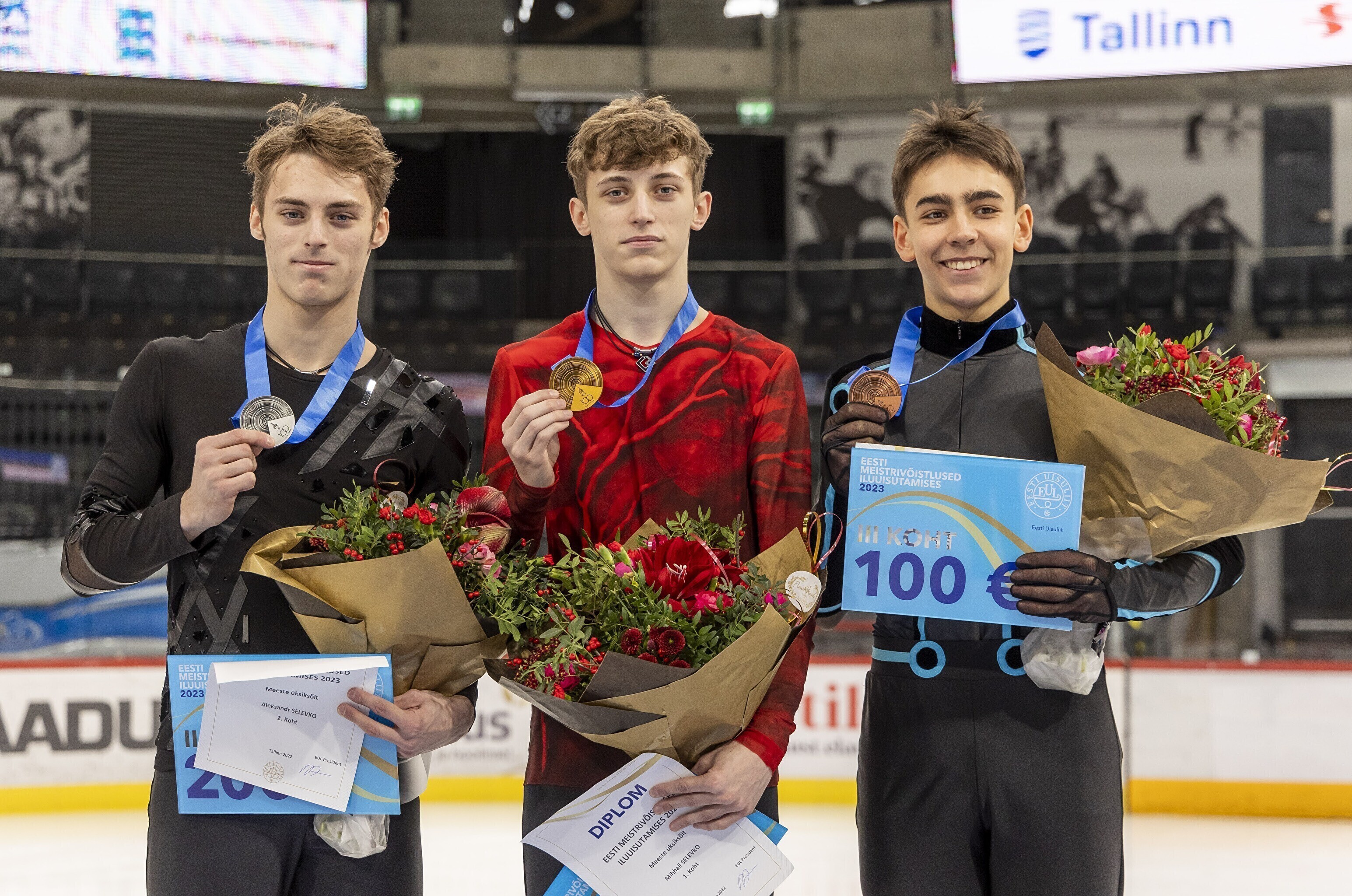 На особенно торжественной церемонии медали чемпионов Эстонии по фигурному катанию получили Нина Петрыкина и Михаил Селевко. Среди девушек серебряную медаль получила Натали Лангербаур, а бронзовую – Герли Лийнамяэ. Среди юношей серебряная медаль досталась лидировавшему после короткой программы Александру Селевко, а бронзовая - Арлету Леванди.