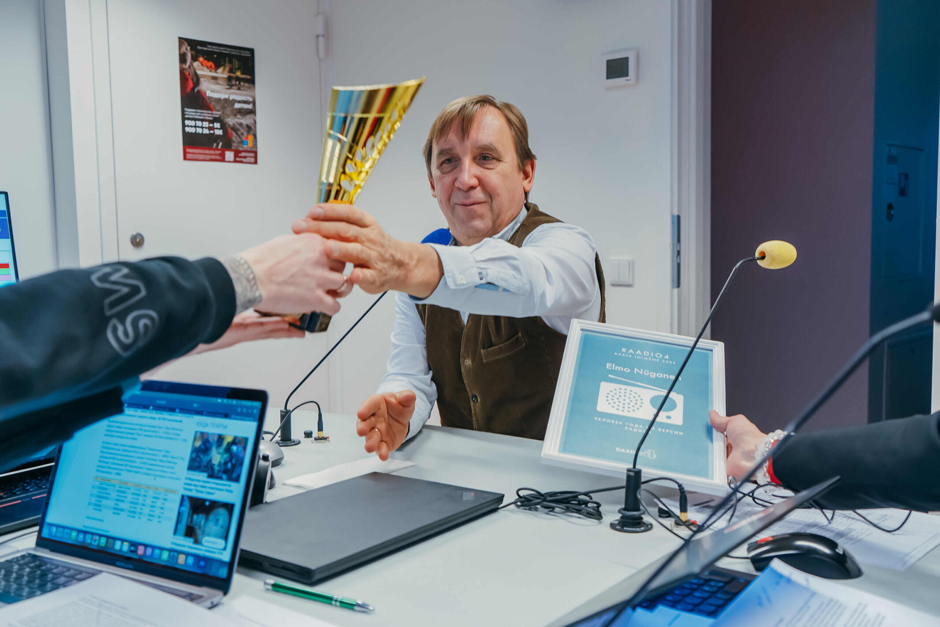 Никто не предупреждал Нюганена о присуждении ему почетного титула, а в прямой эфир он был приглашен по другому поводу. Режиссер искренне обрадовался такому утреннему сюрпризу: "Это не розыгрыш?! Спасибо!"