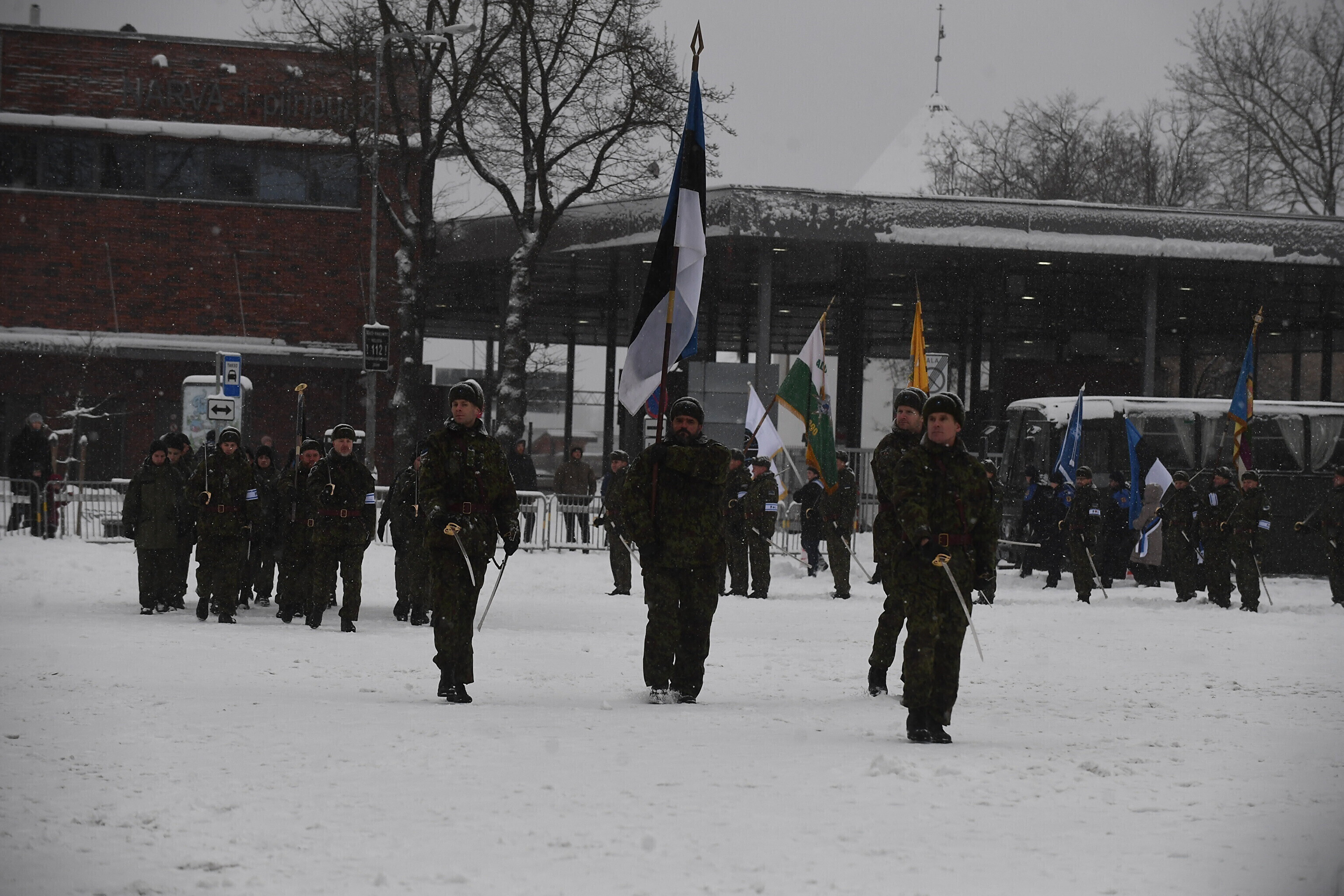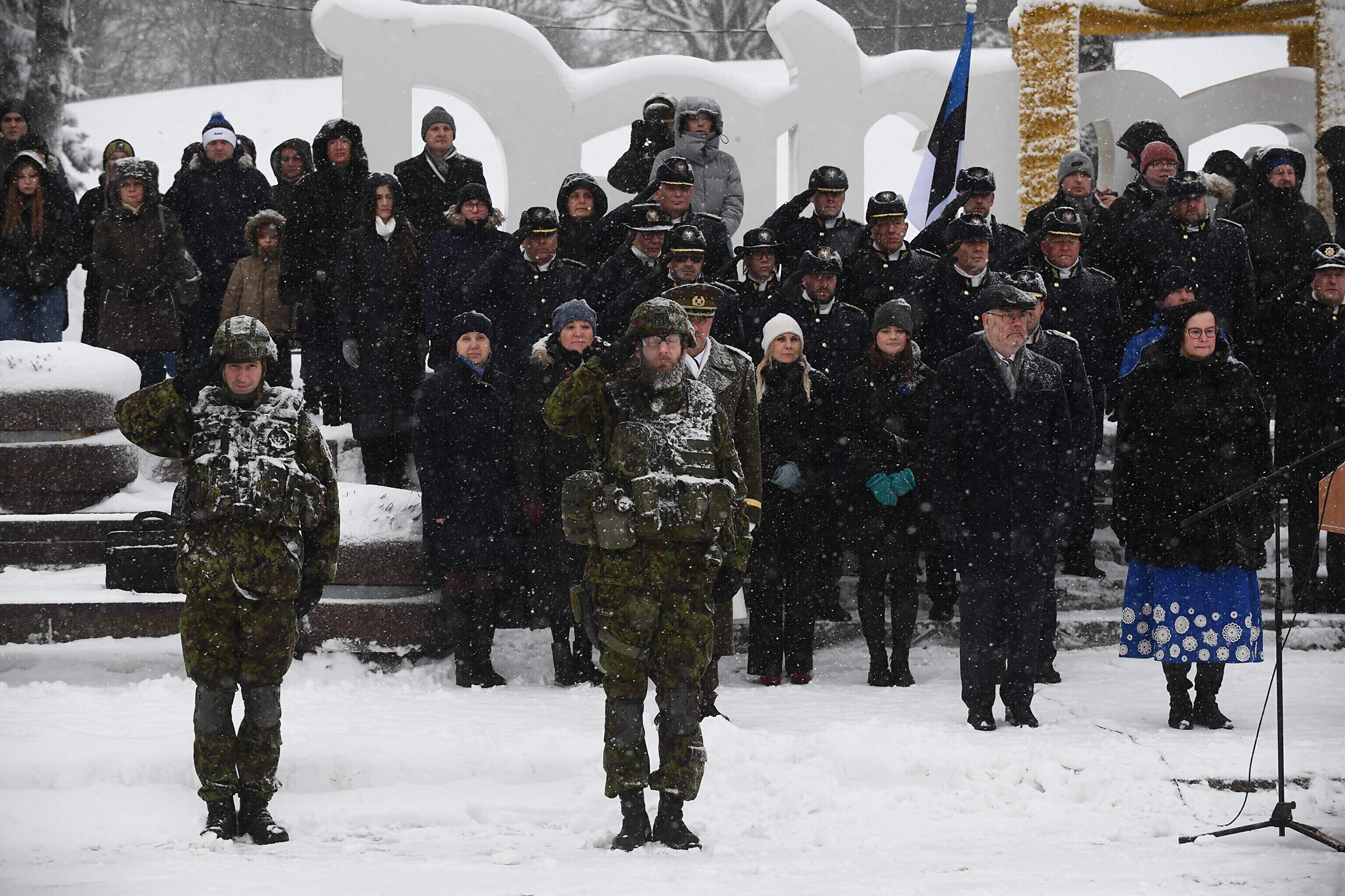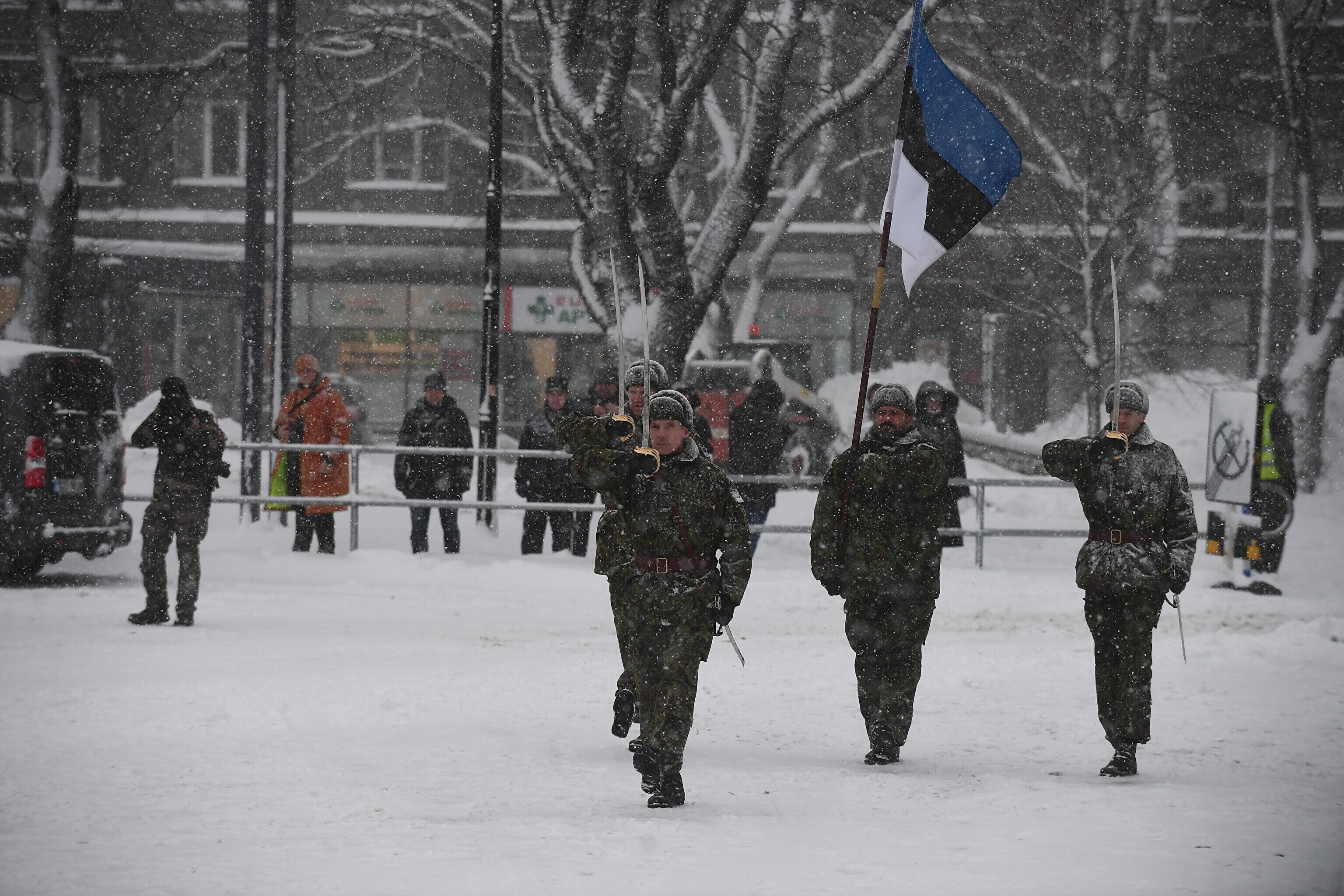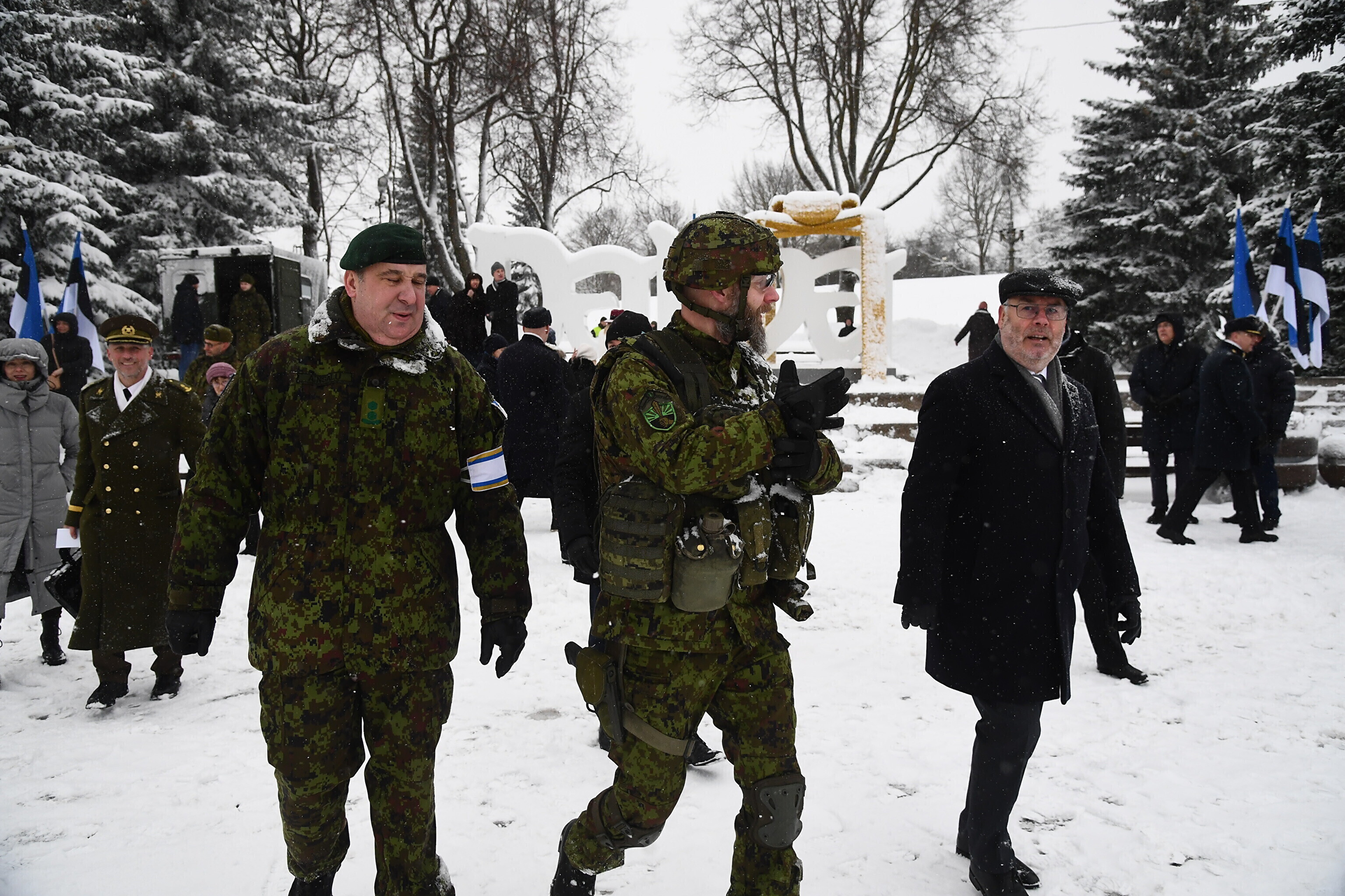 Там отметили 103-ю годовщину перемирия между Эстонской Республикой и Советской Россией торжественным построением военнослужащих и представителей силовых структур.