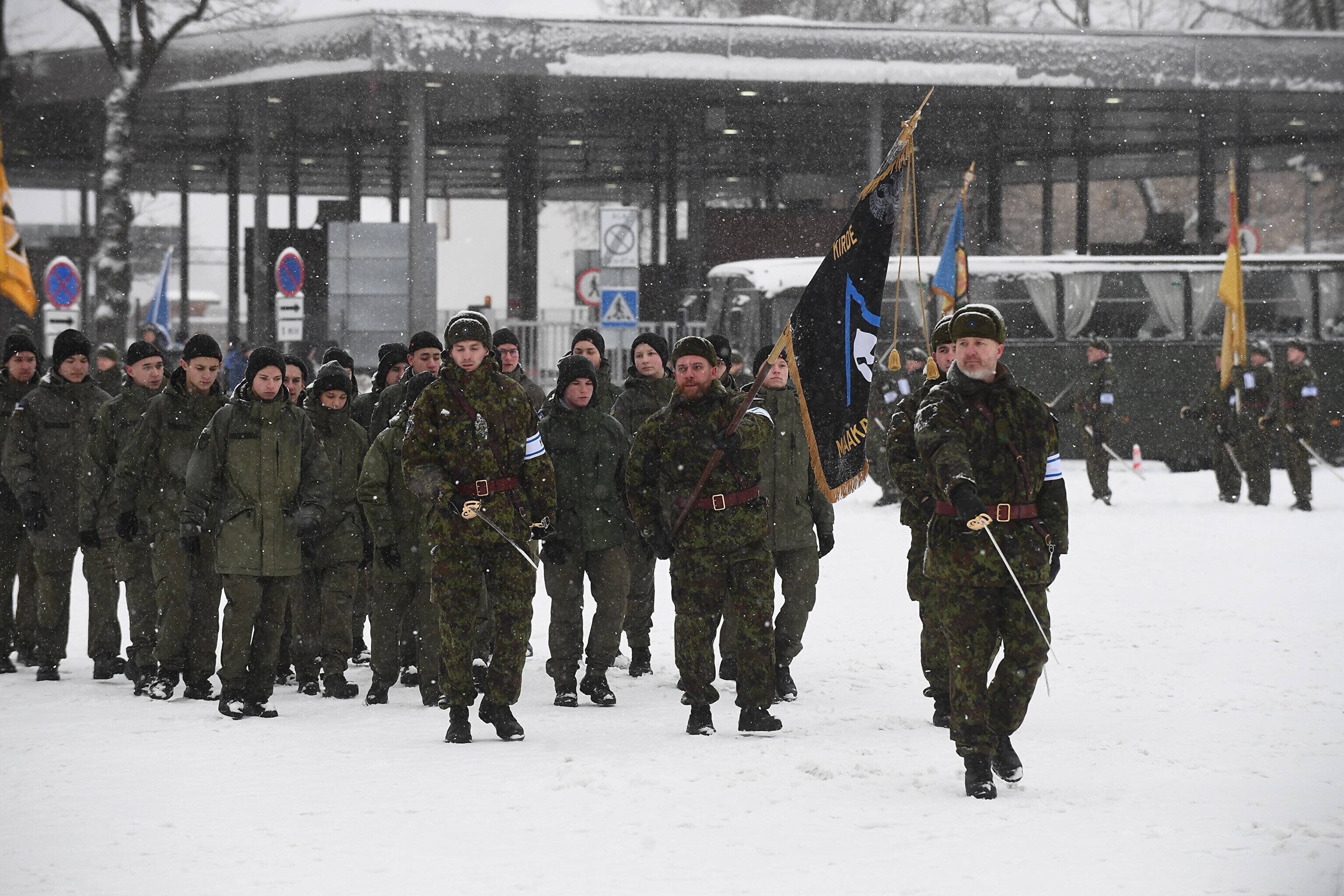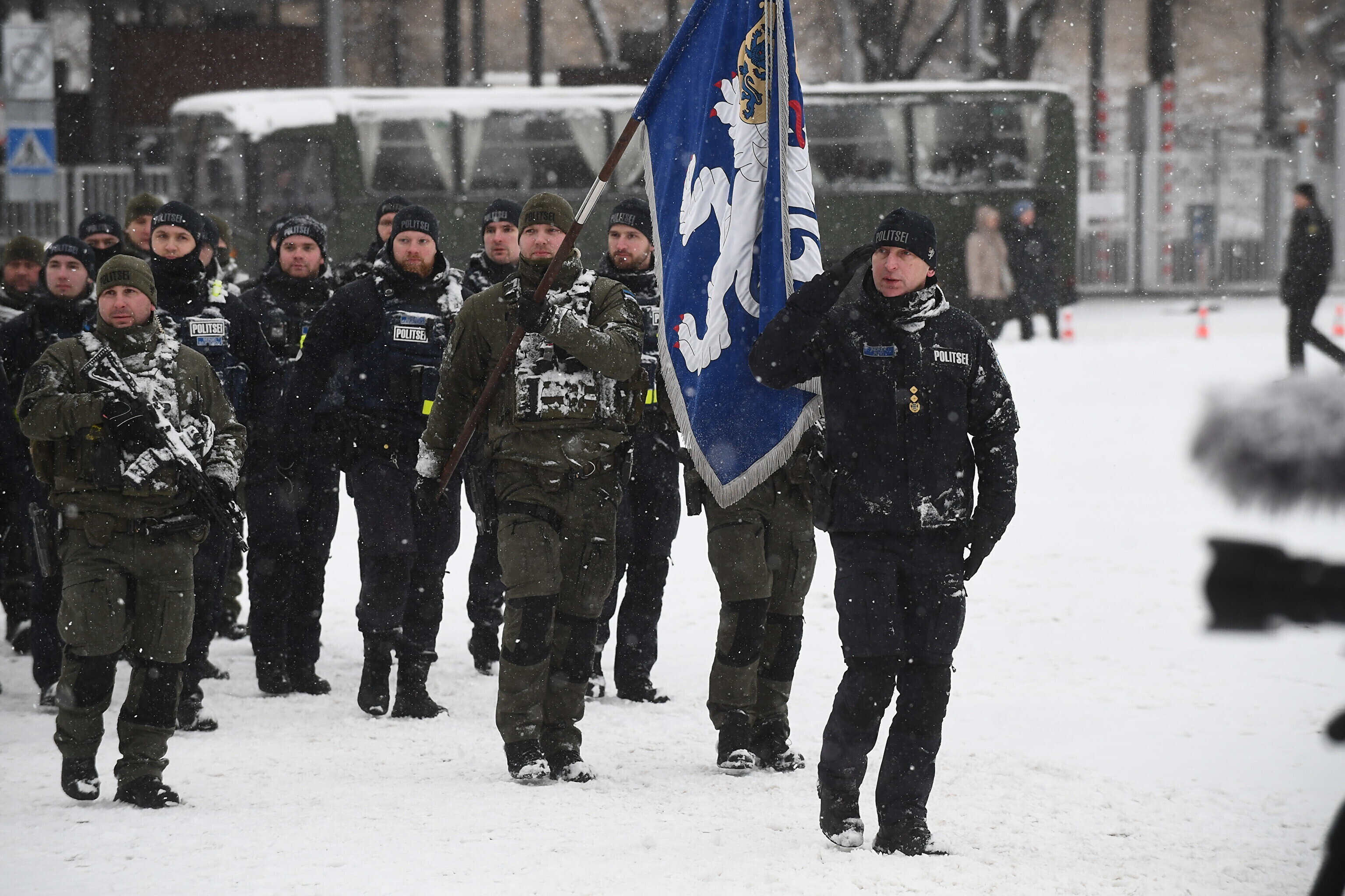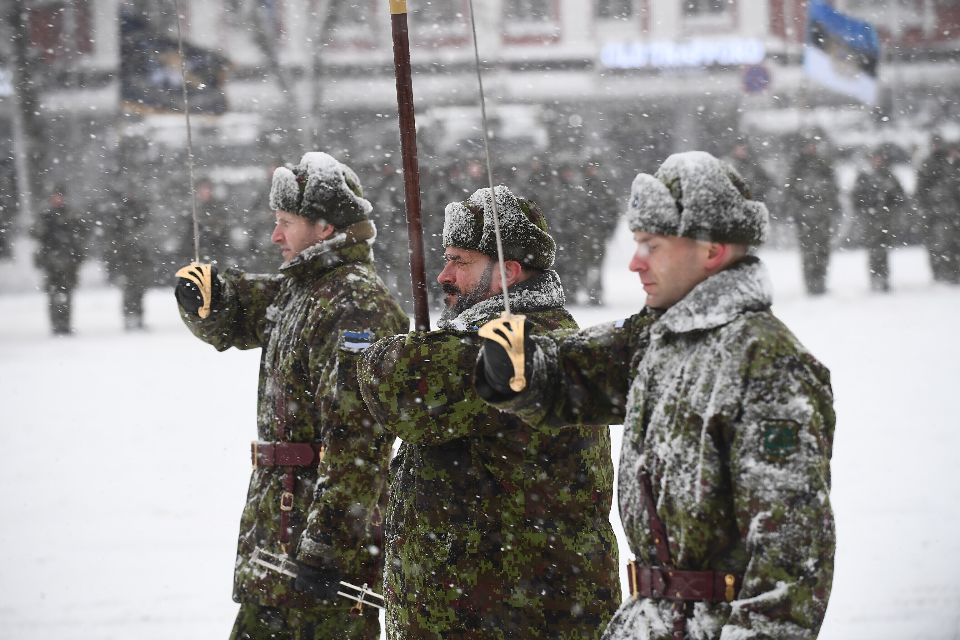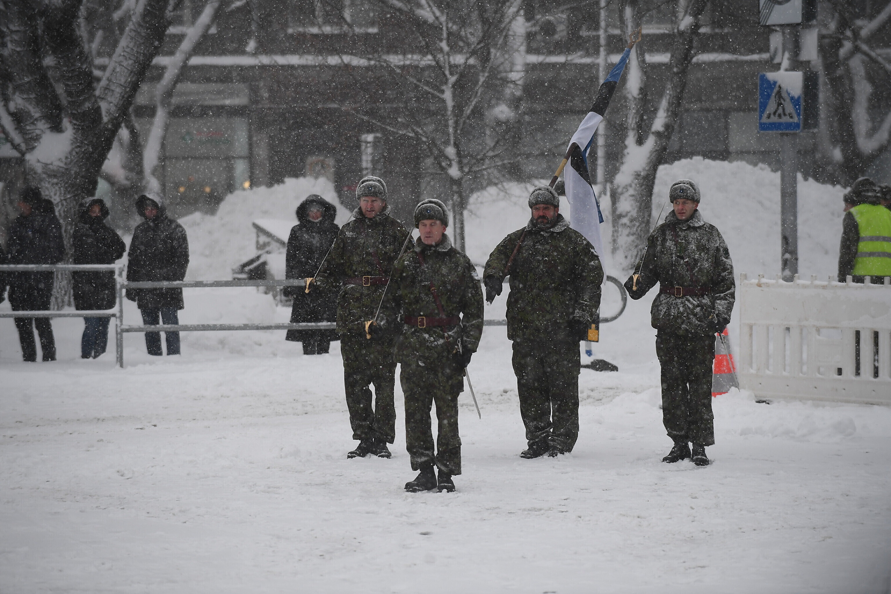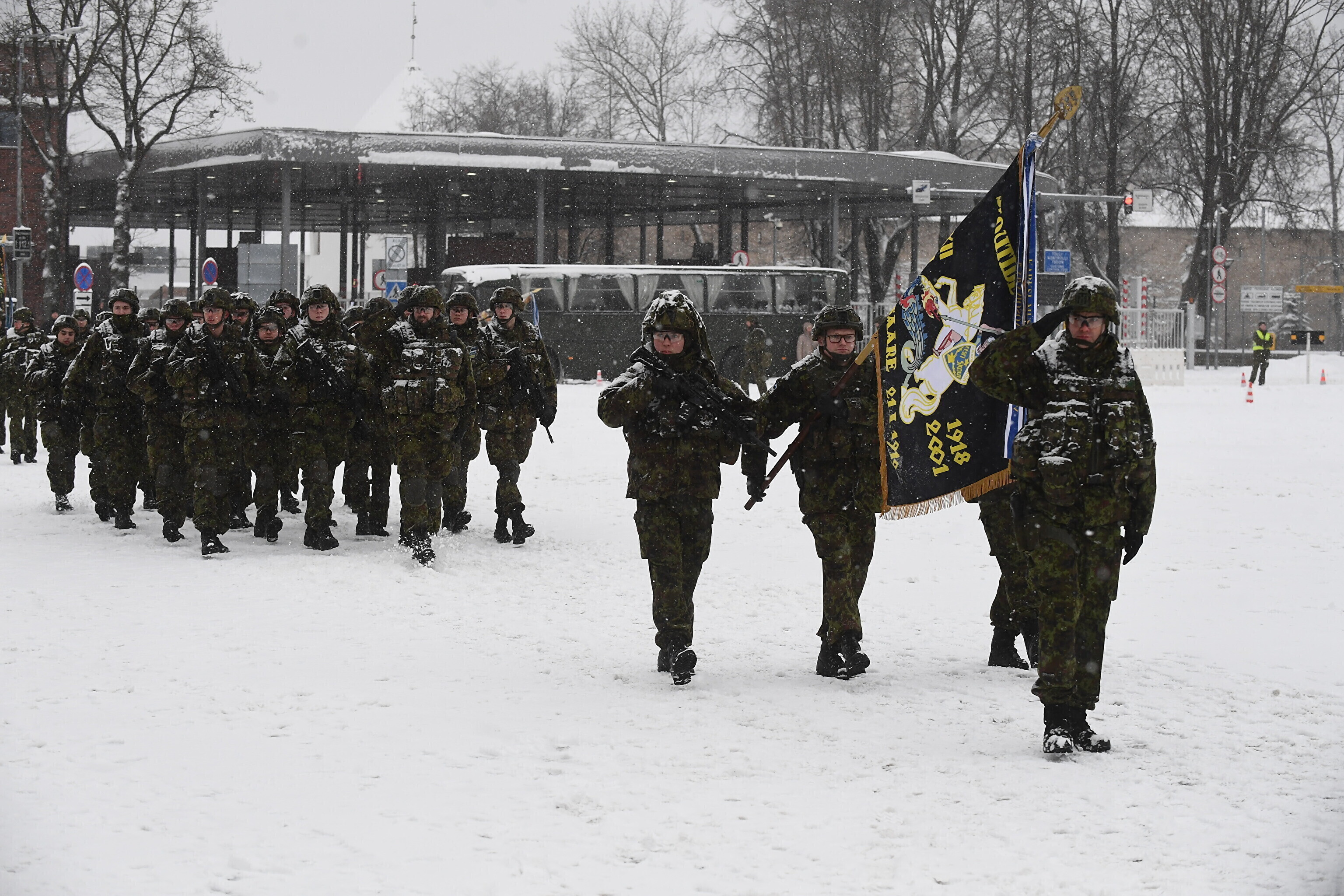 Там отметили 103-ю годовщину перемирия между Эстонской Республикой и Советской Россией торжественным построением военнослужащих и представителей силовых структур.
