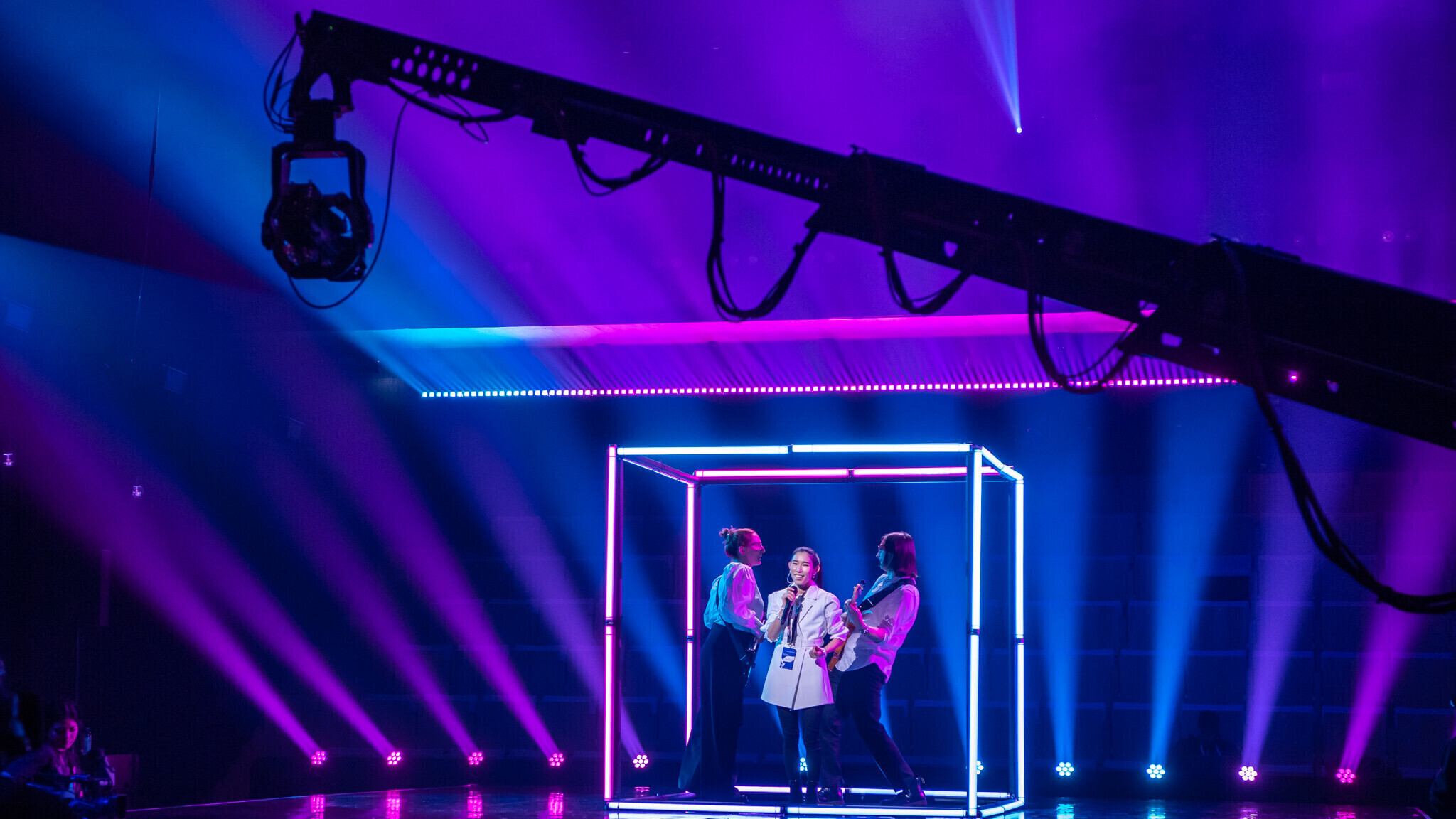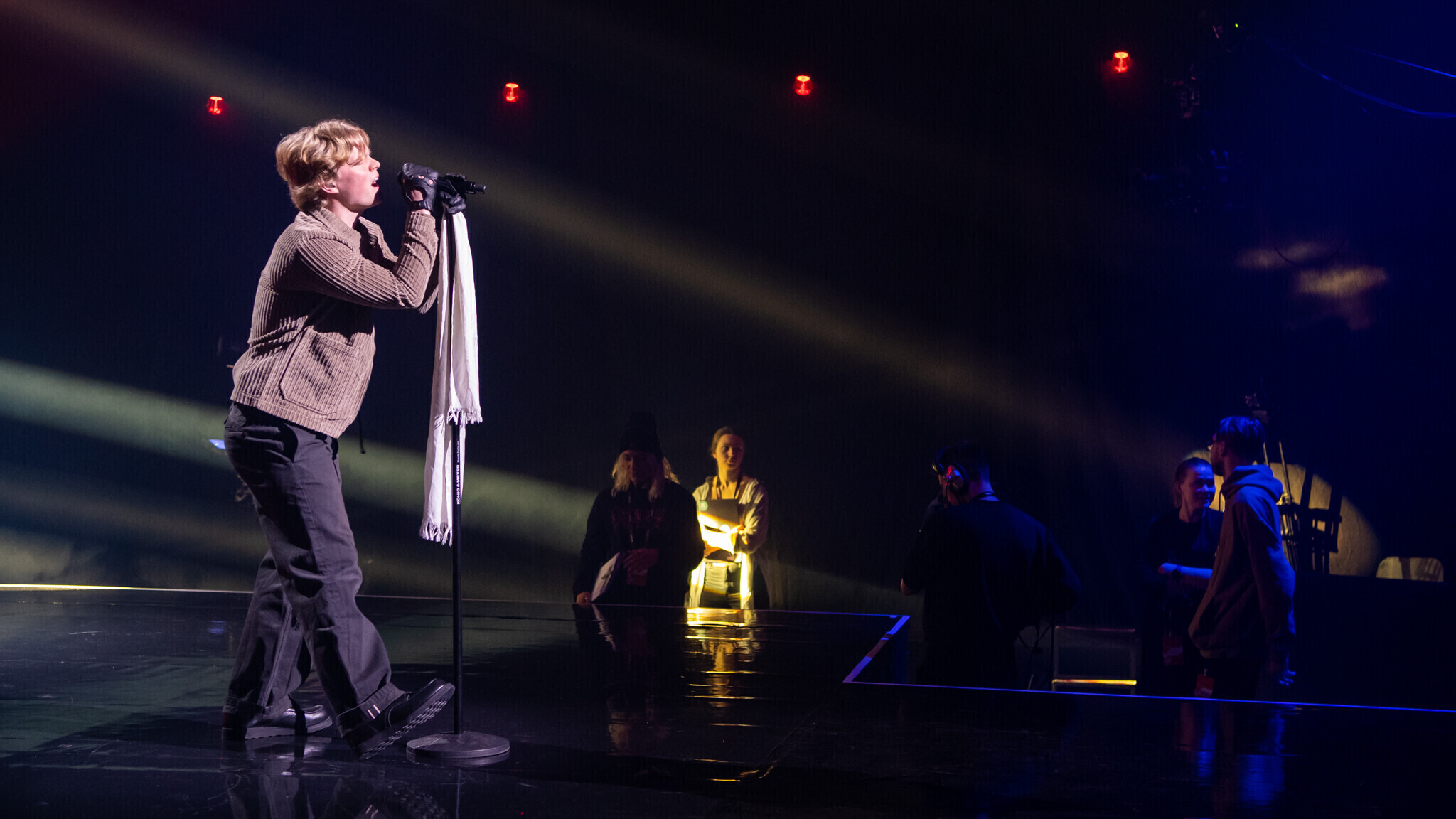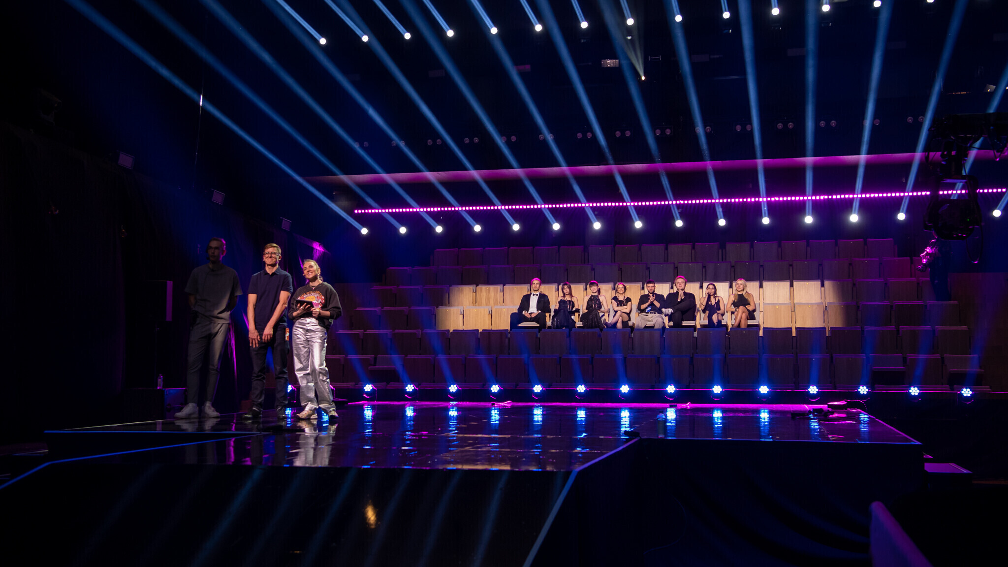 В культурно-образовательном центре Viimsi Artium в Виймси полным ходом идет подготовка к проведению полуфиналов конкурса Eesti Laul-2023. Участники проводят первые репетиции.