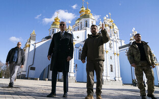 Одни из первых кадров необъявленного визита - местом встречи двух президентов - Байдена и Зеленского - был выбран Михайловский собор. Прибыл американский лидер буквально под звук сирен - через несколько минут после того, как стало известно о визите высокого гостя, в Киеве включился сигнал тревоги. Из соображений безопасности заранее о приезде президента США в Киев не сообщали - его европейское турне должно было ограничится Варшавой, передает "Актуальная камера".