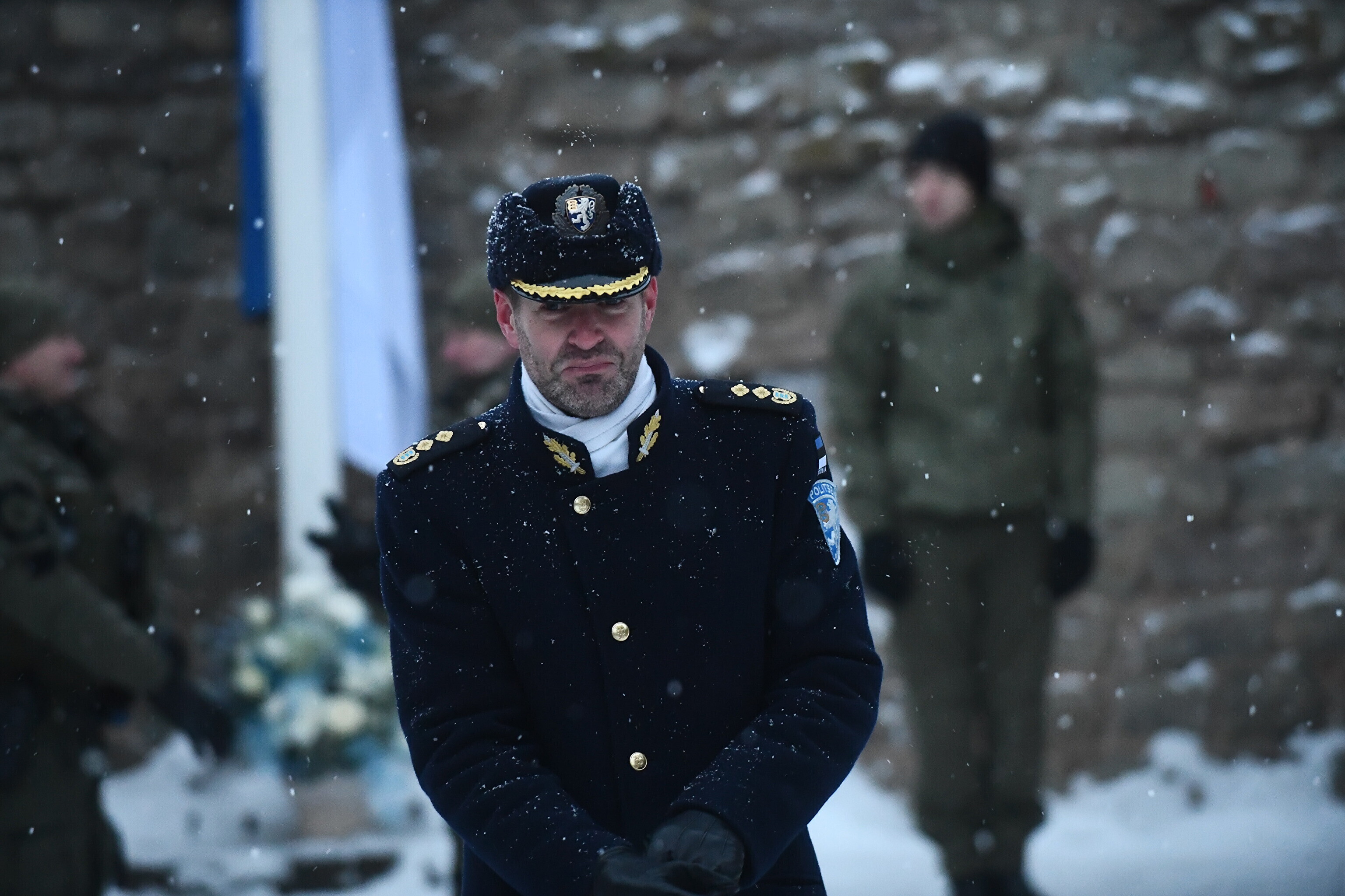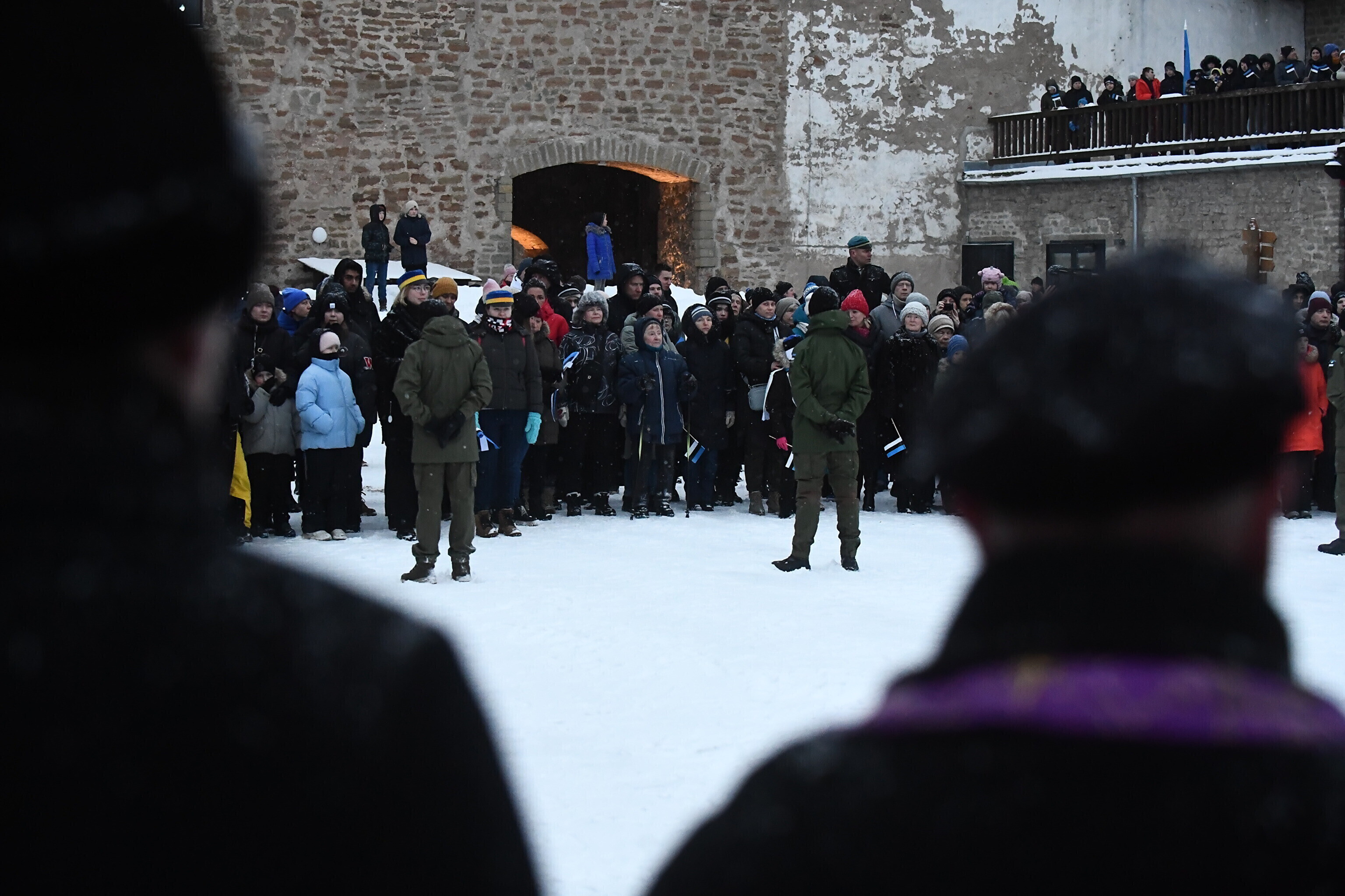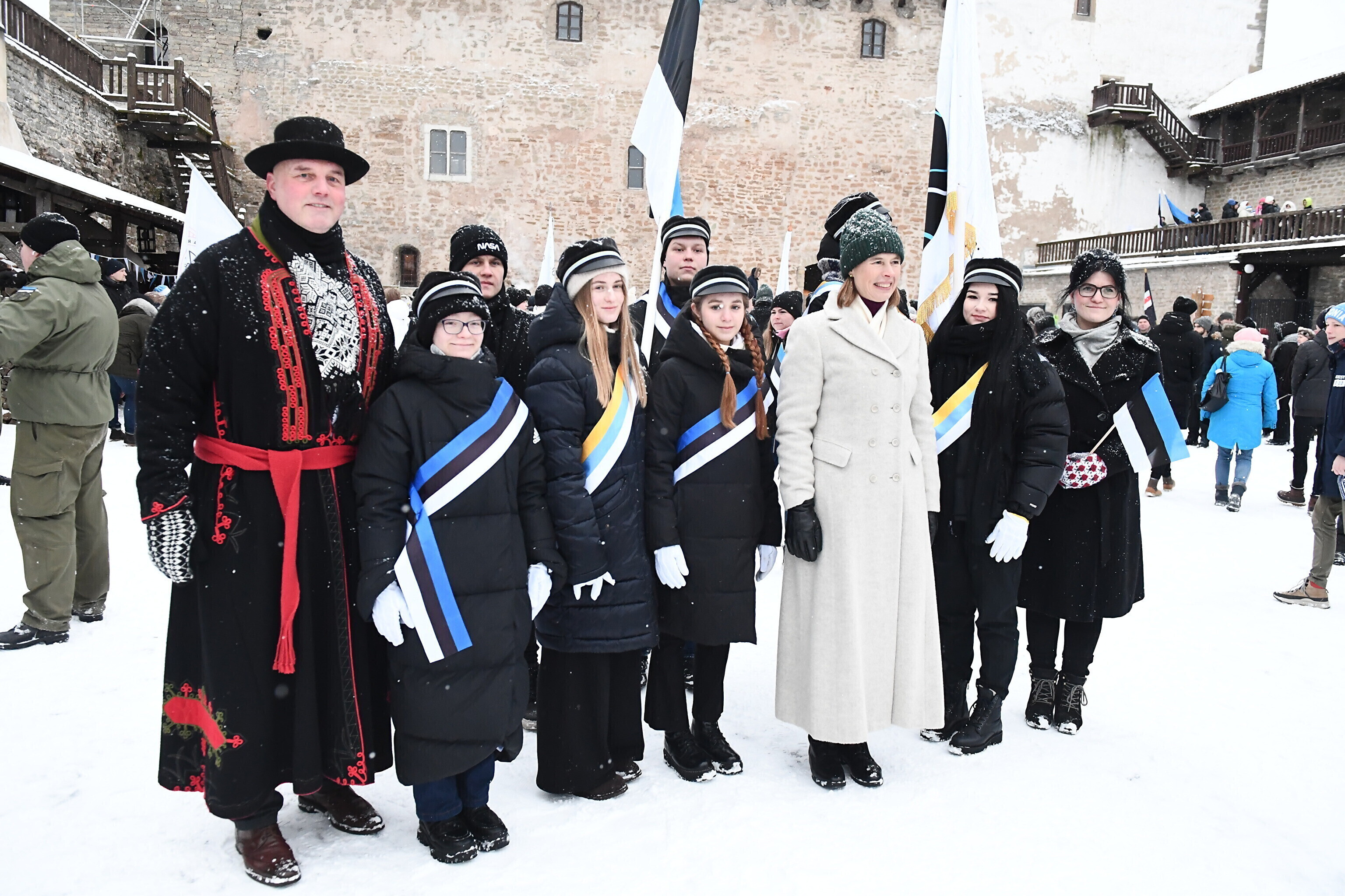 Праздничная церемония поднятия государственного флага прошла на территории Северного двора Нарвского замка, рассказал rus.err.ee корреспондент ERR в Нарве Сергей Степанов.