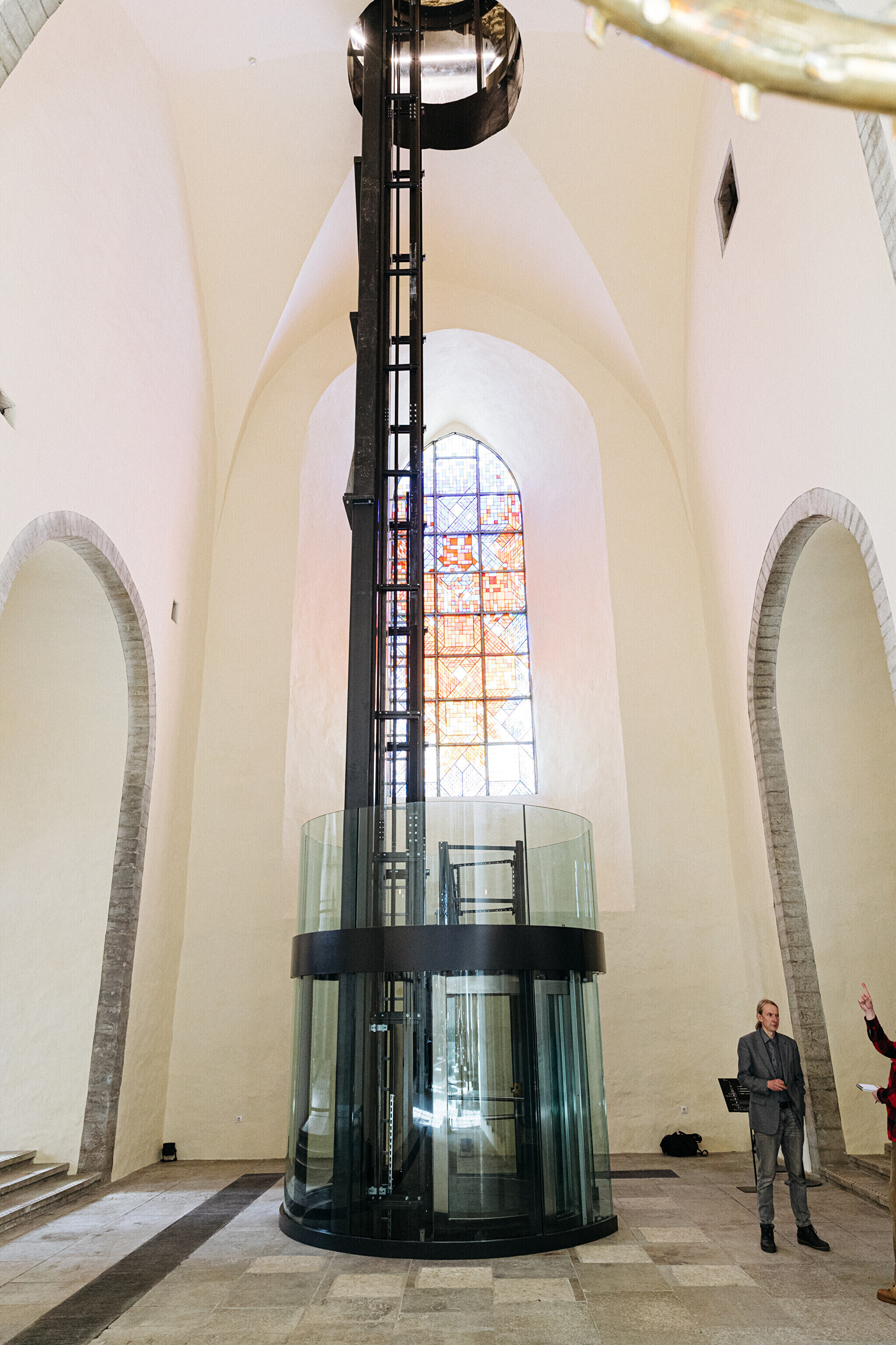 Лифт и "поднебесный" этаж, ставшие результатом объемных строительных работ, уникальны в масштабах Эстонии. На лифте все желающие, в том числе посетители с особыми потребностями, смогут попасть на самый верх башни. Для посетителей будут открыты и старинные переходы, и отреставрированная лестница, поднимаясь по которой, можно изучить архитектуру и детали башни, а также выставку церковных колоколов.