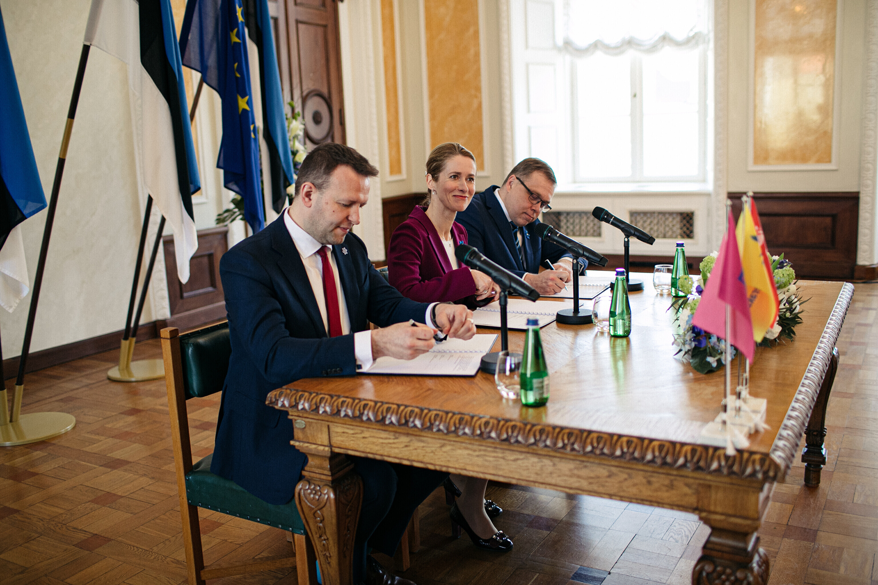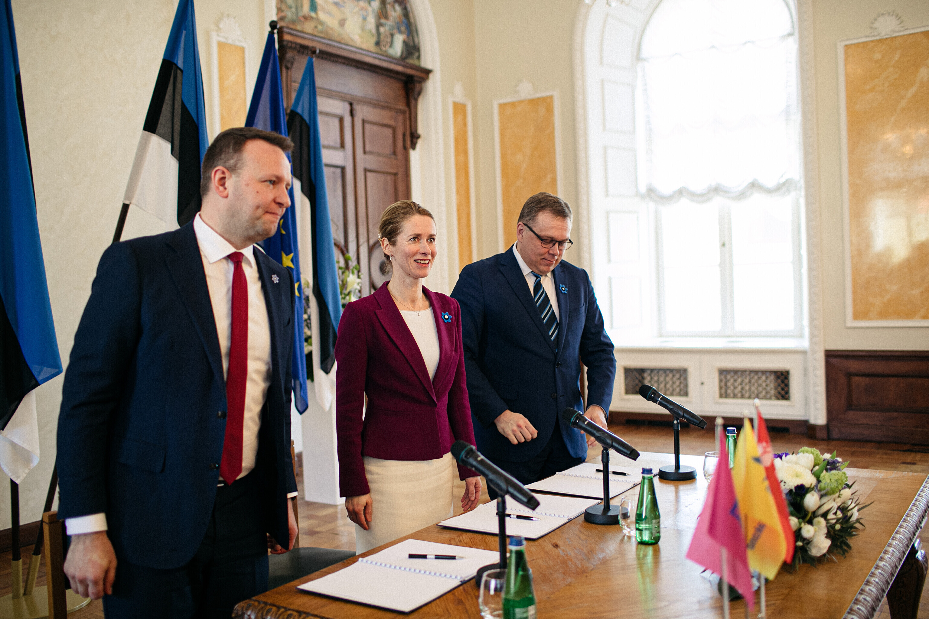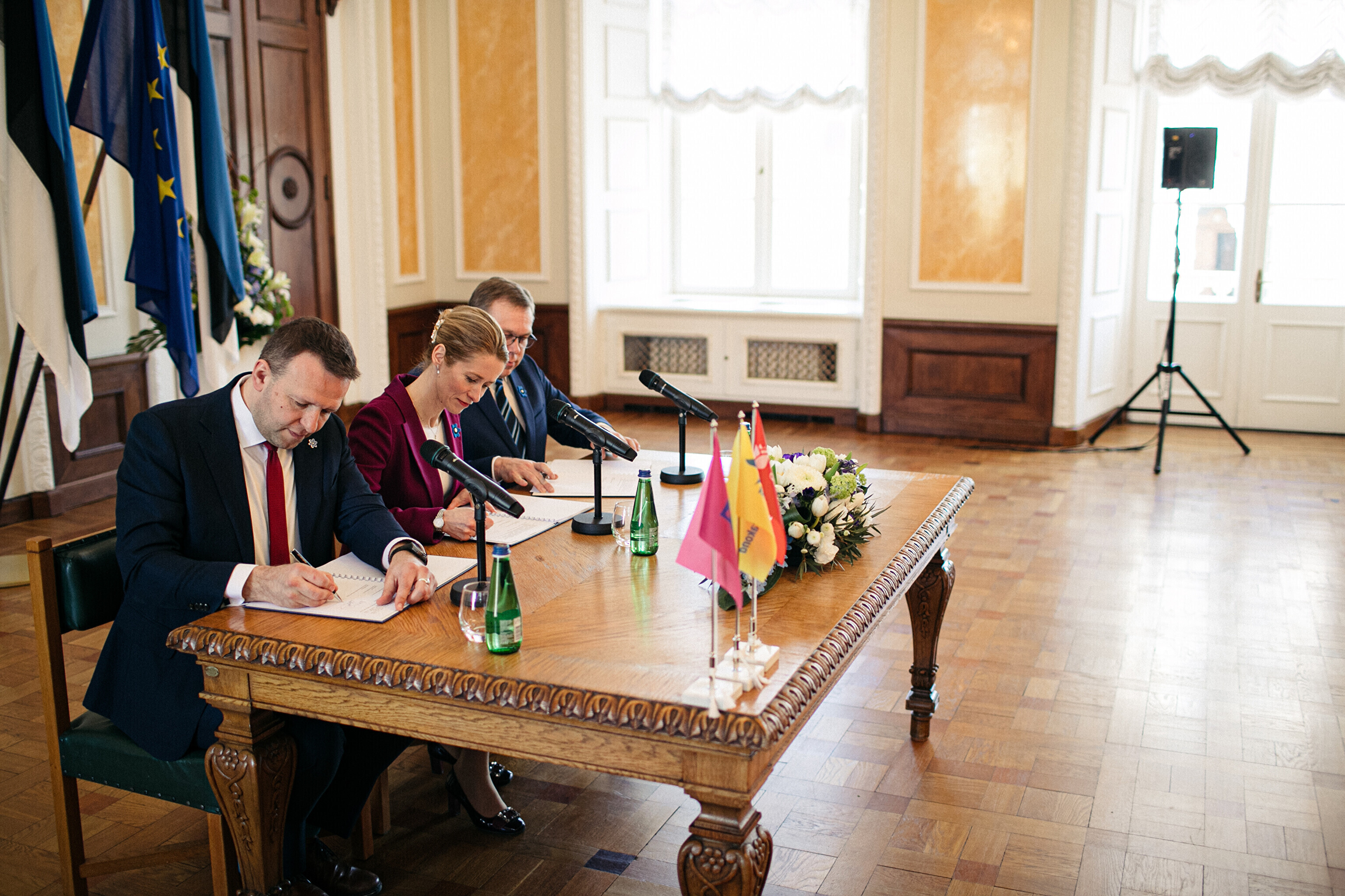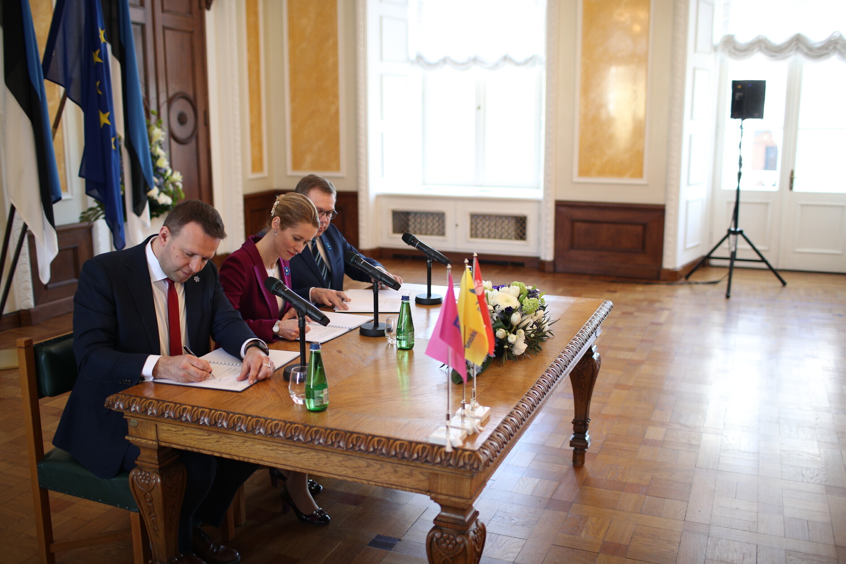 В понедельник, 10 апреля, председатели Партии реформ, Eesti 200 и Социал-демократической партии (СДП), а также члены парламентских фракций подписали коалиционный договор в Белом зале Рийгикогу.