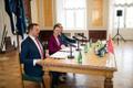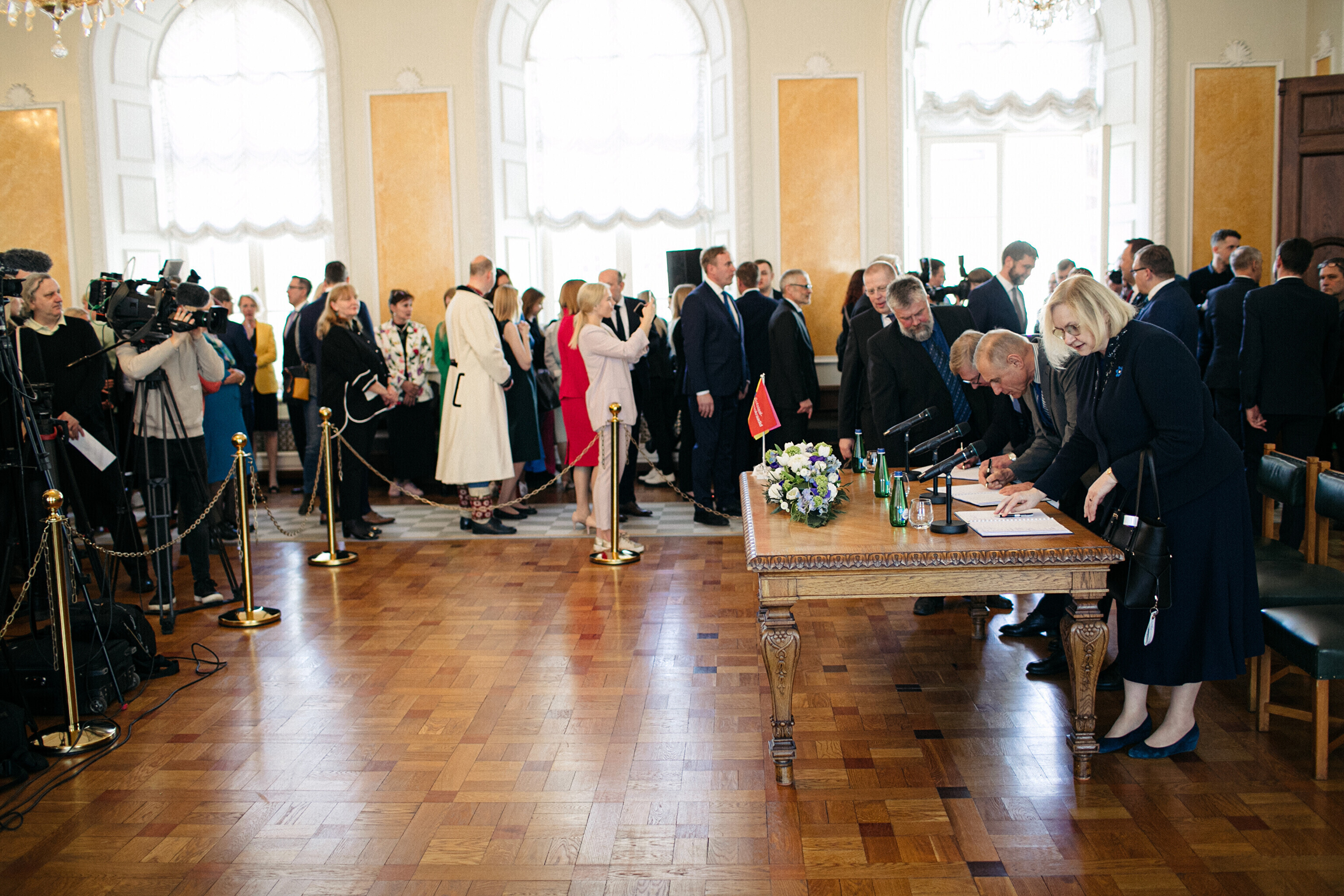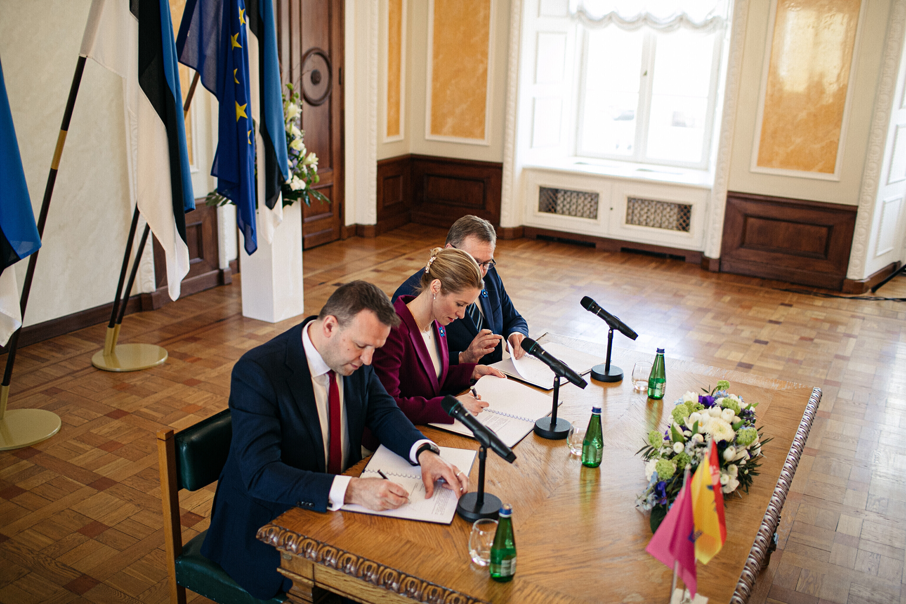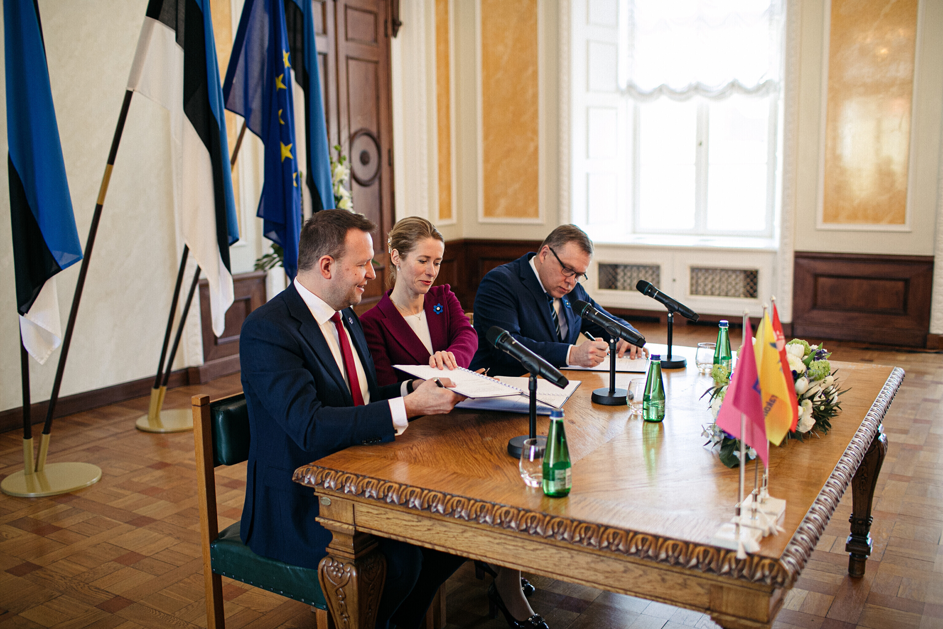 В понедельник, 10 апреля, председатели Партии реформ, Eesti 200 и Социал-демократической партии (СДП), а также члены парламентских фракций подписали коалиционный договор в Белом зале Рийгикогу.