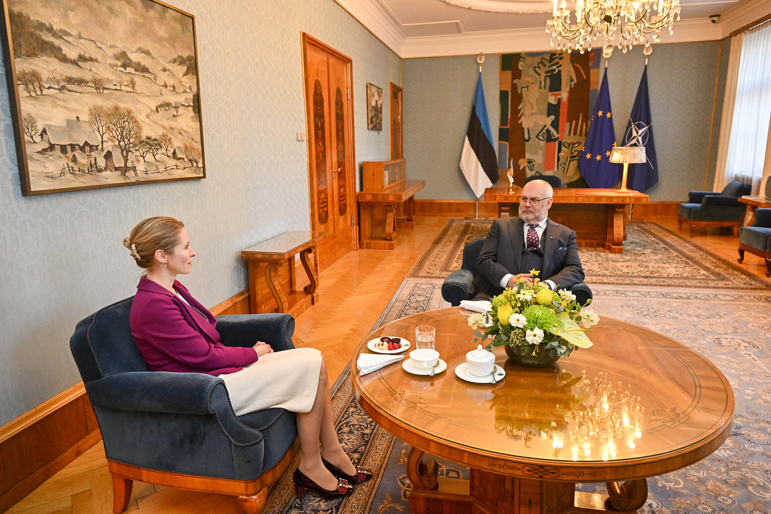 Президент Алар Карис встретился в Кадриорге с премьер-министром Каей Каллас, которая проинформировала главу государства об отставке нынешнего правительства в связи с избранием нового состава Рийгикогу.