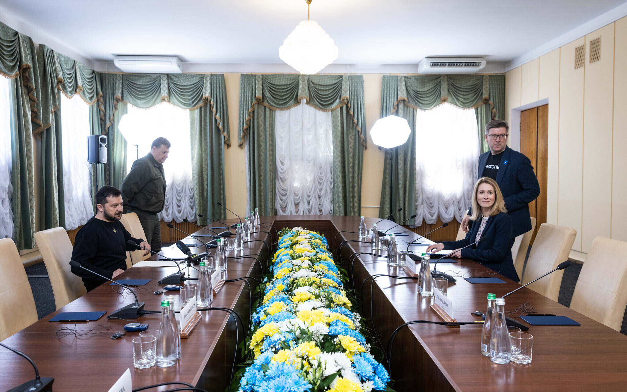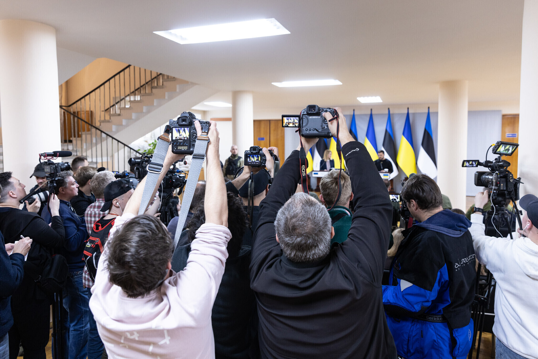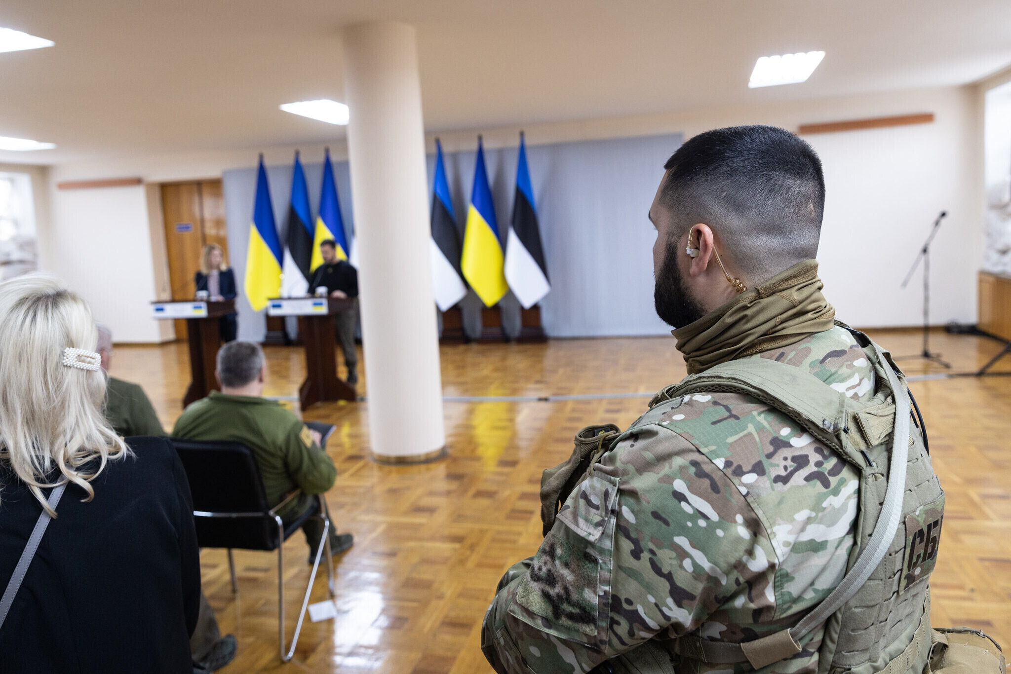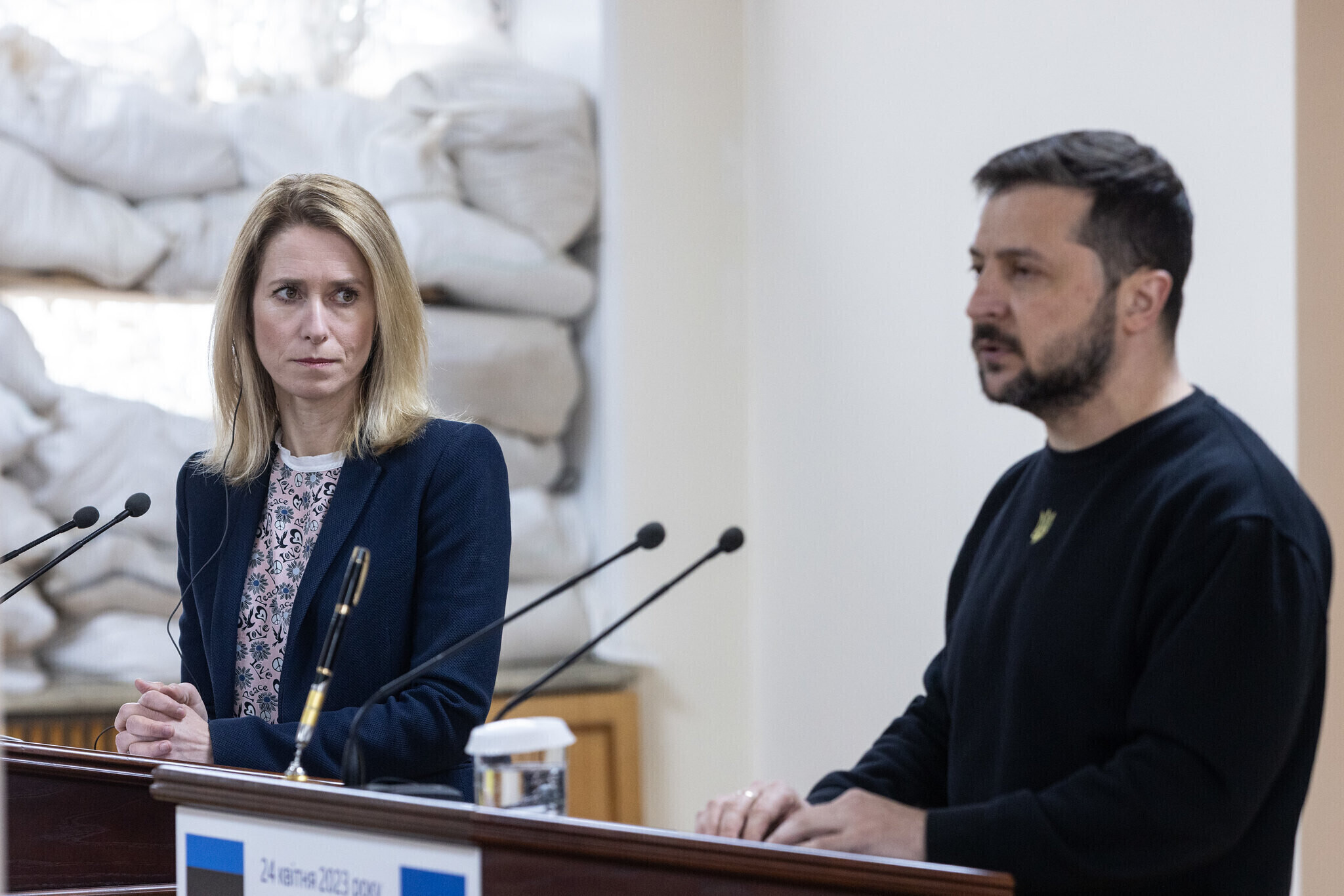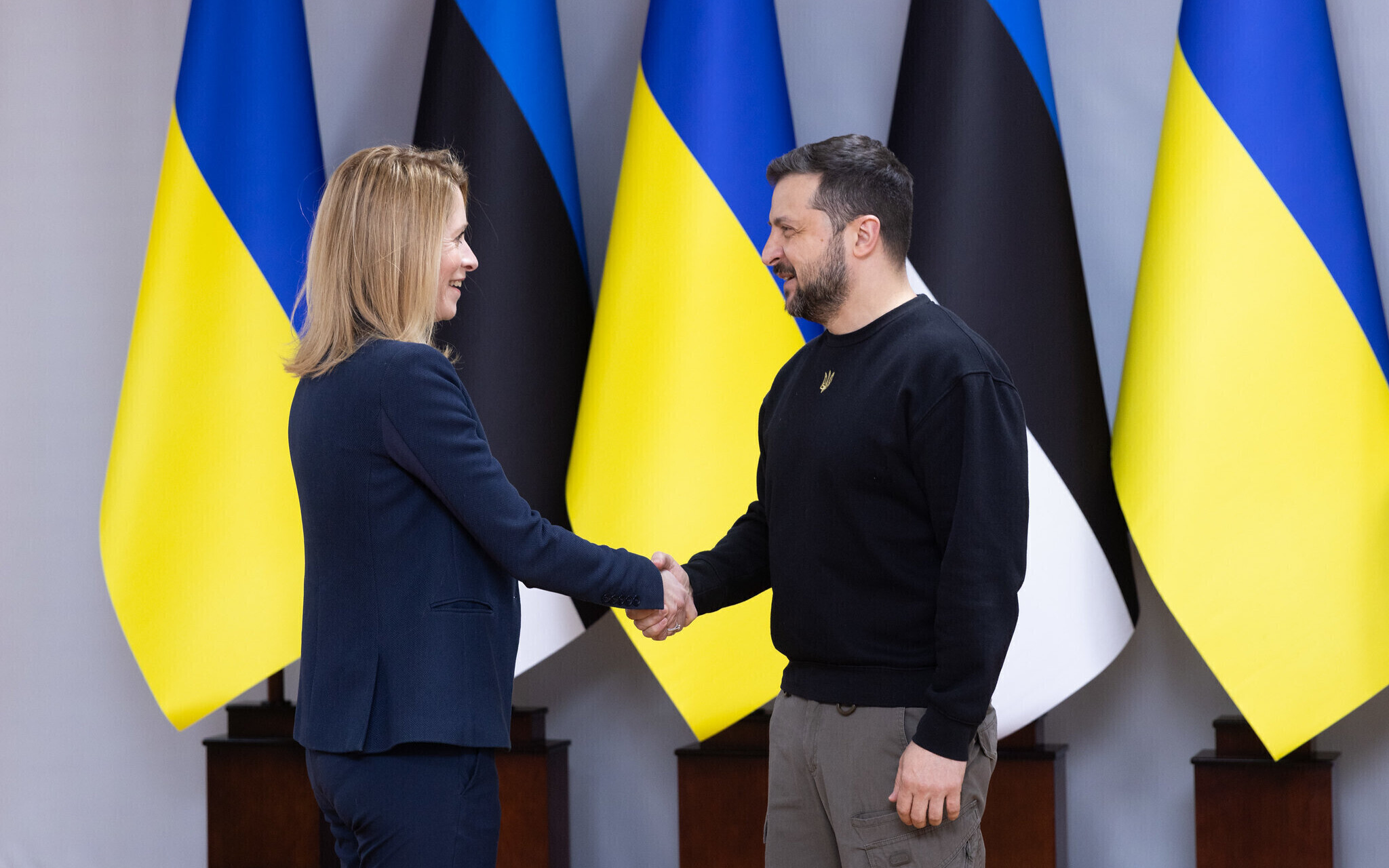 На пресс-конференции президент Зеленский поблагодарил Каллас и всю Эстонию за поддержку и сказал, что Украина ценит каждую поставку оружия из Эстонии, особенно гаубиц калибра 122 и 155 мм. Зеленский также поблагодарил Каллас и Эстонию за инициативу отправить в Украину миллион снарядов и за лечение украинских солдат в Эстонии.