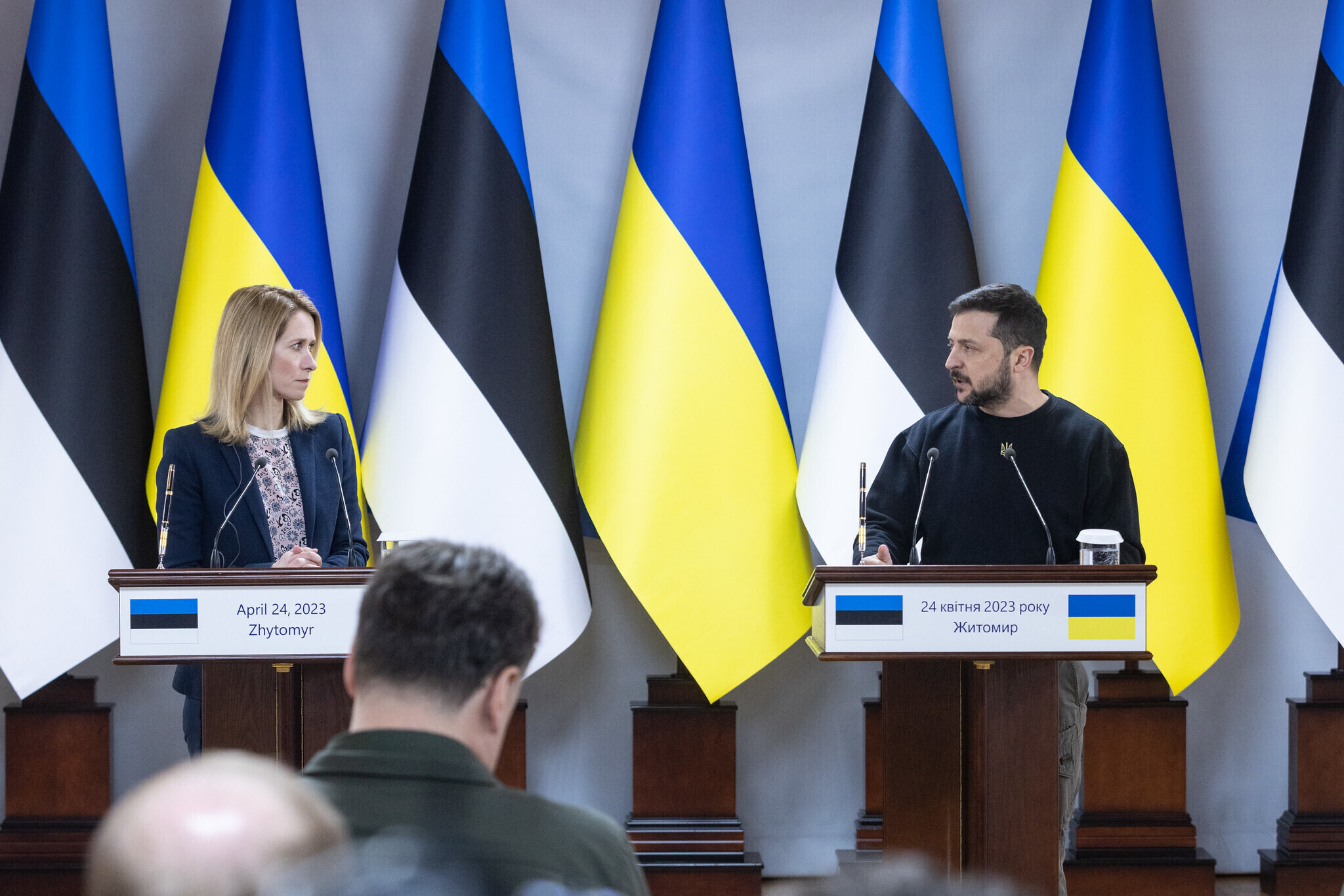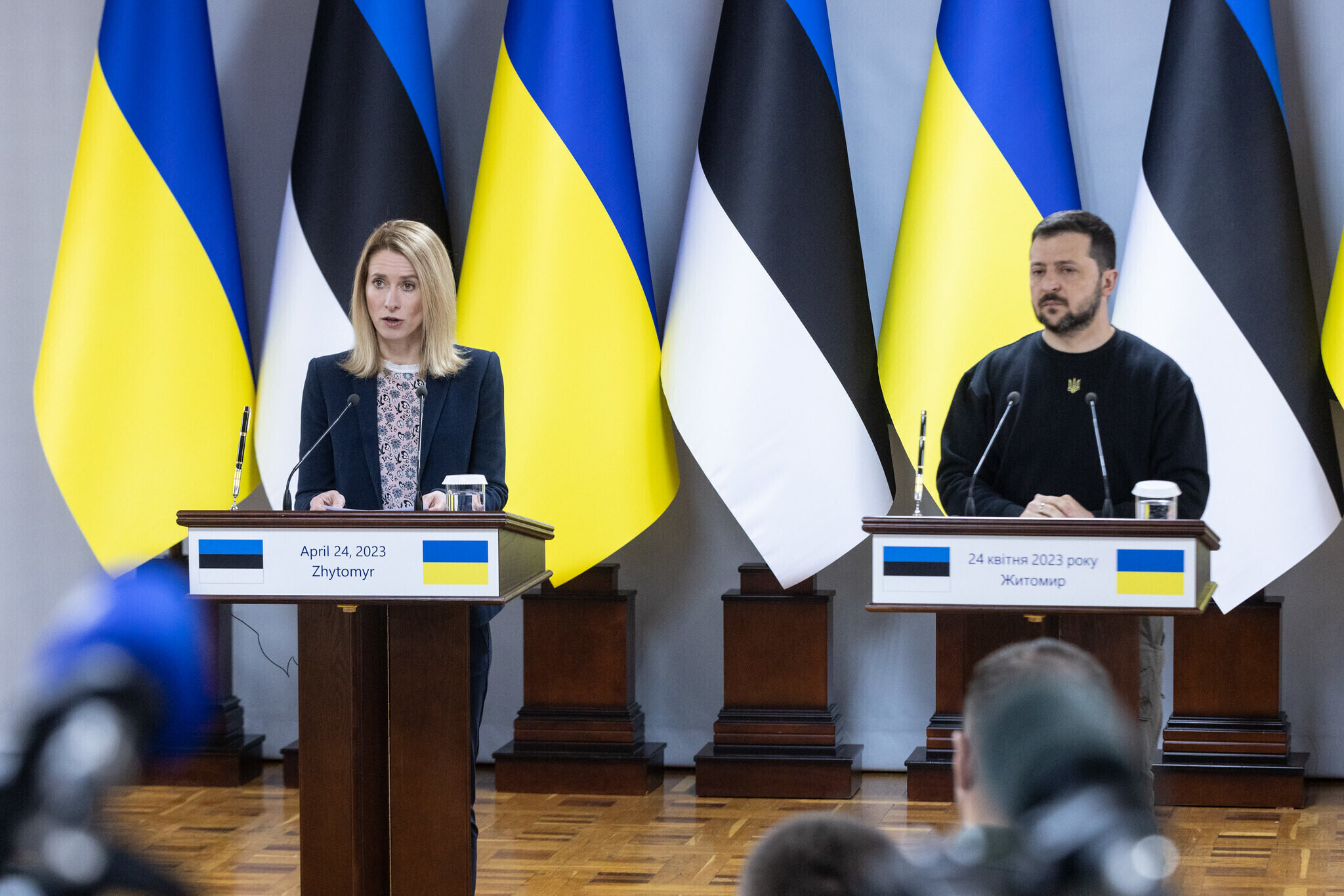 В понедельник, 24 апреля, премьер-министр Эстонии Кая Каллас в Житомирской области встретилась с президентом Украины Владимиром Зеленским.