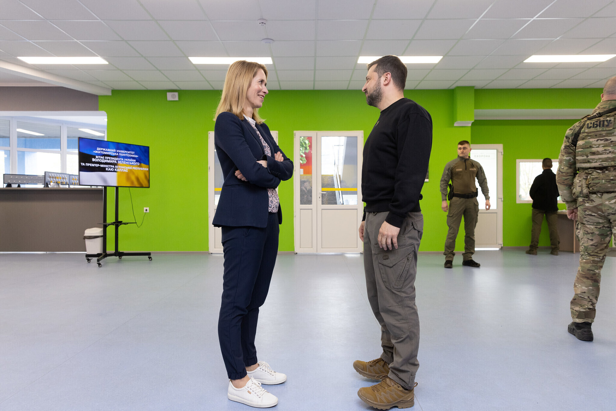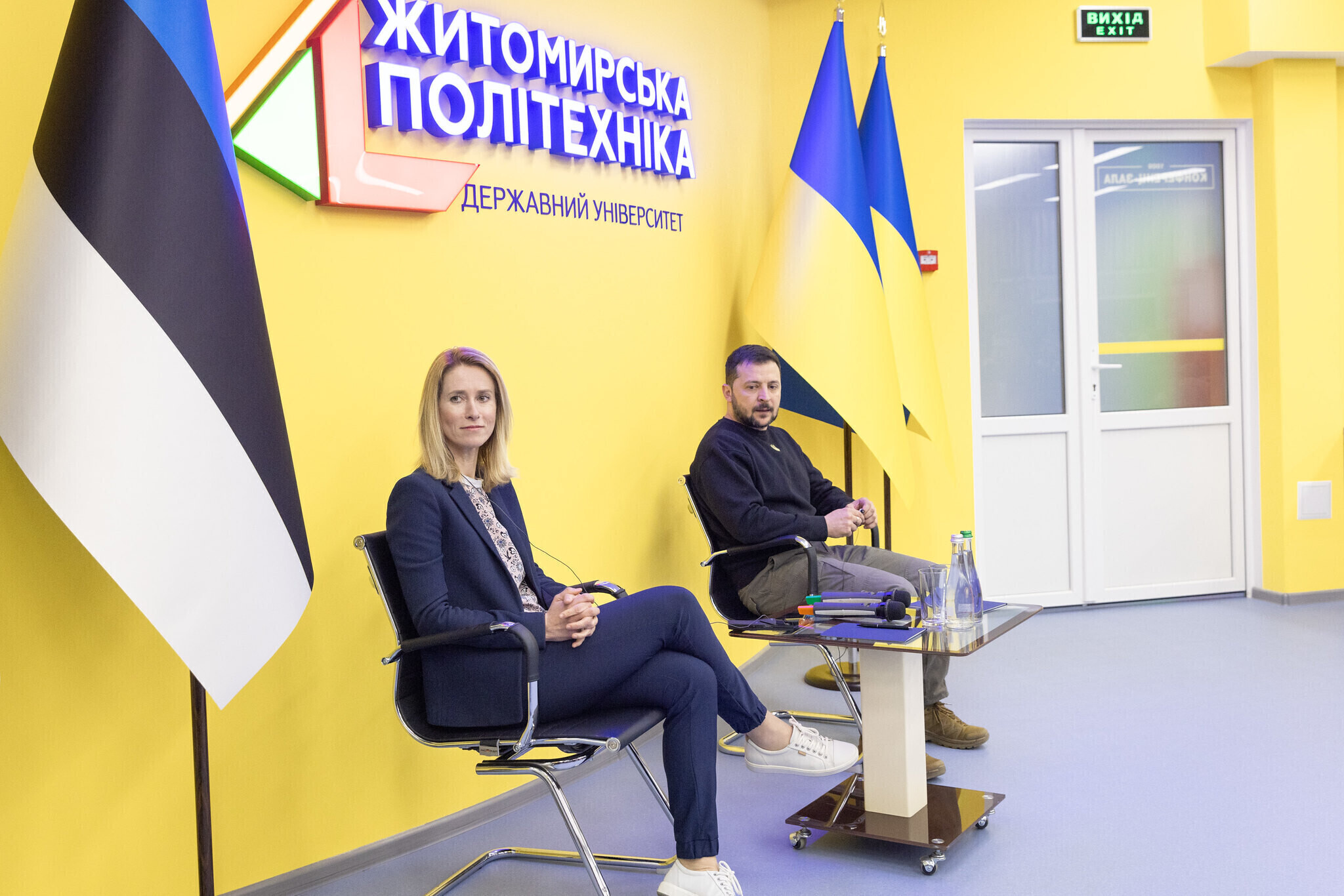Затем Каллас и Зеленский встретились со студентами Государственного университета "Житомирская Политехника", с которыми поговорили о демократии, сопротивлении агрессии и европейской интеграции.